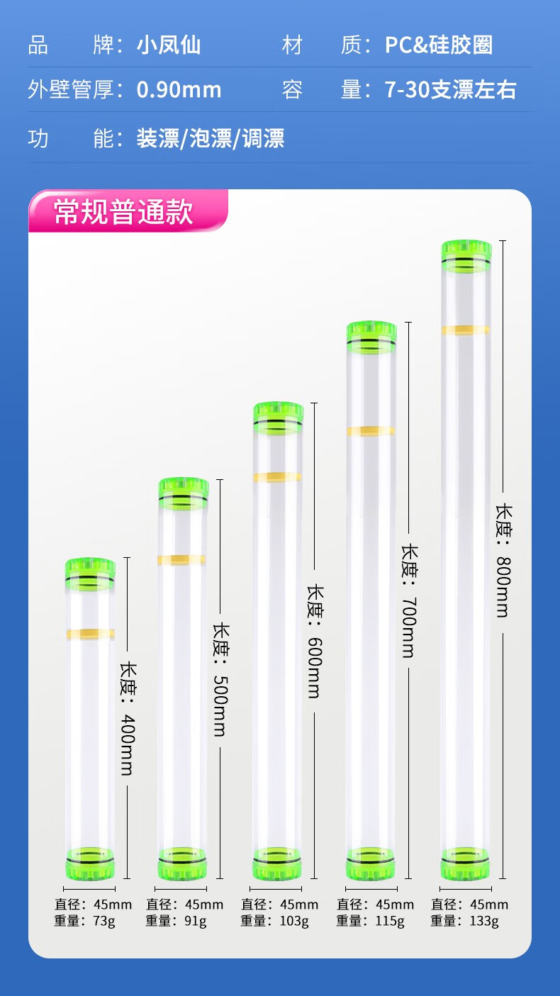 Xiaofengxian float tube lengthened fish float storage and adjustment float barrel thickened transparent tube fish float box large capacity box fishing gear supplies 60cm long ordinary style + sponge card slot