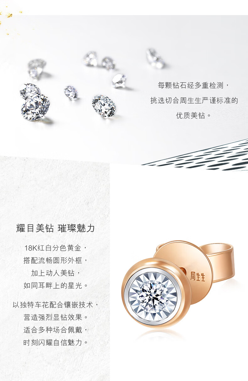 Chow Sang Sang Small Bubble Diamond Stud Earrings 18K Rose Gold Dazzling Single Colored Gold Earrings 92876E