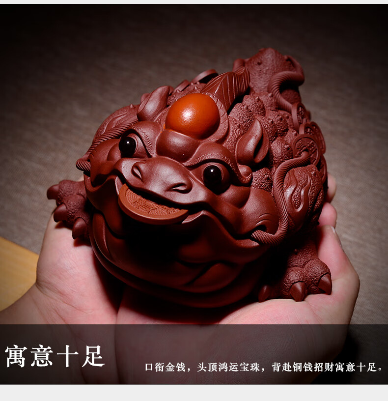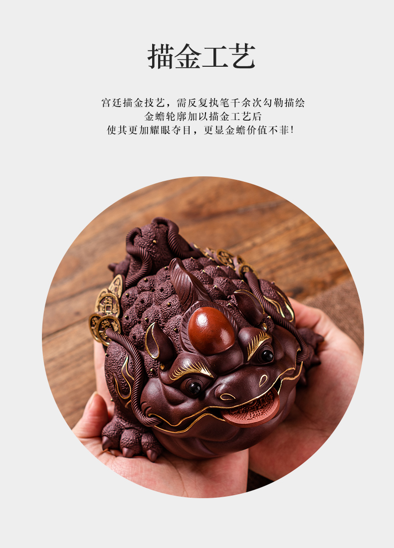 Hongzhong Yixing Purple Clay Tea Pet Three-Legged Golden Toad Boutique Can Keep Tea Tray Ornament Tea Play Office Decor Good Luck Head Lucky Head Golden Toad 24k gold-painted model - large size