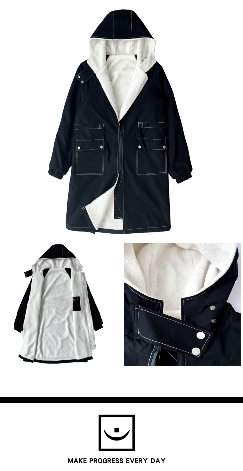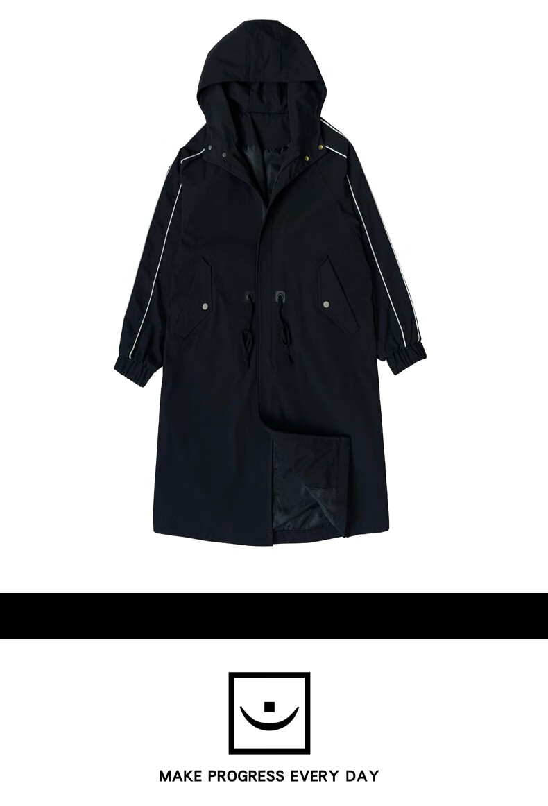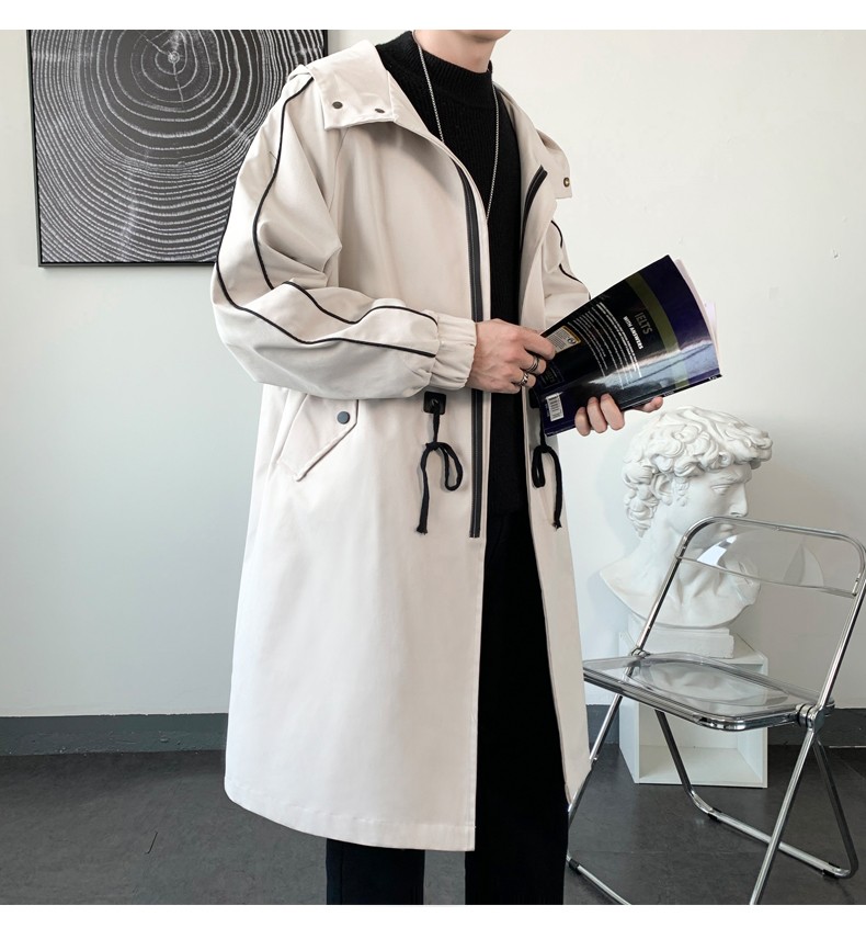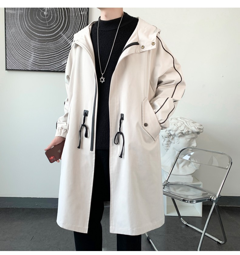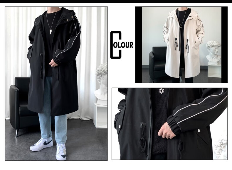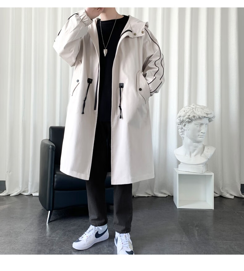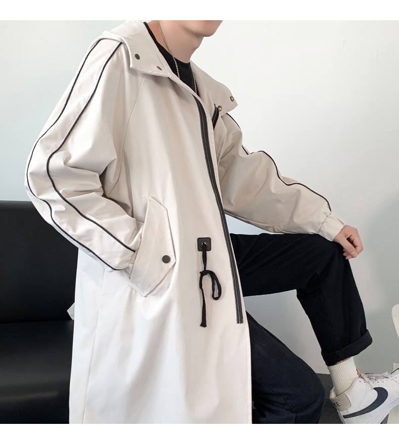 LOFVRANG (Fleet and Thickening Optional) Mid-Length Windbreaker Men's Coat Loose Trendy Brand Large Size Handsome Teenage Jacket Men Black Velvet Thickening 2XL (Suitable for 160-175 Jin Jin is equal to 0.5 kg)