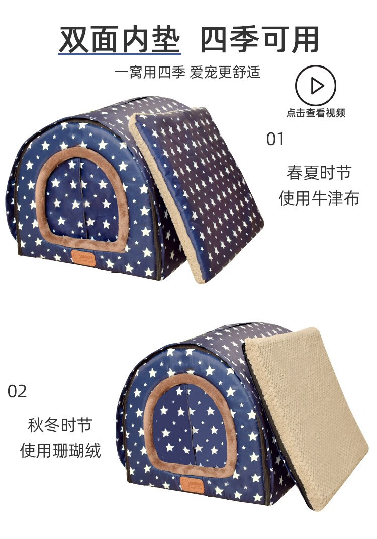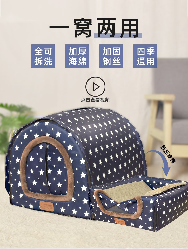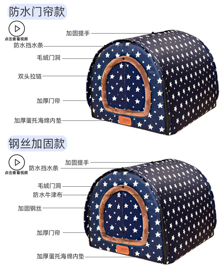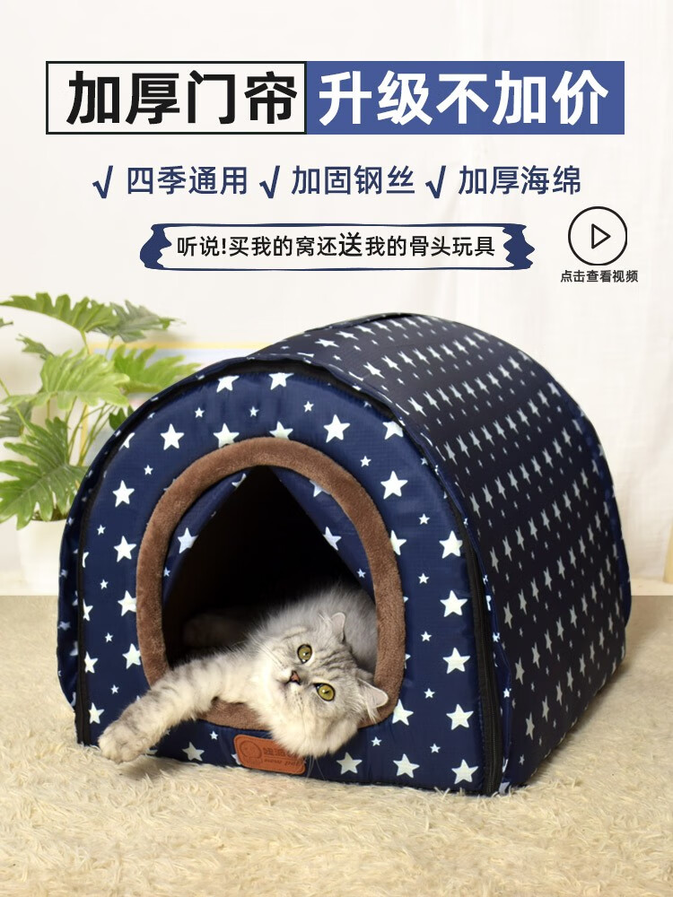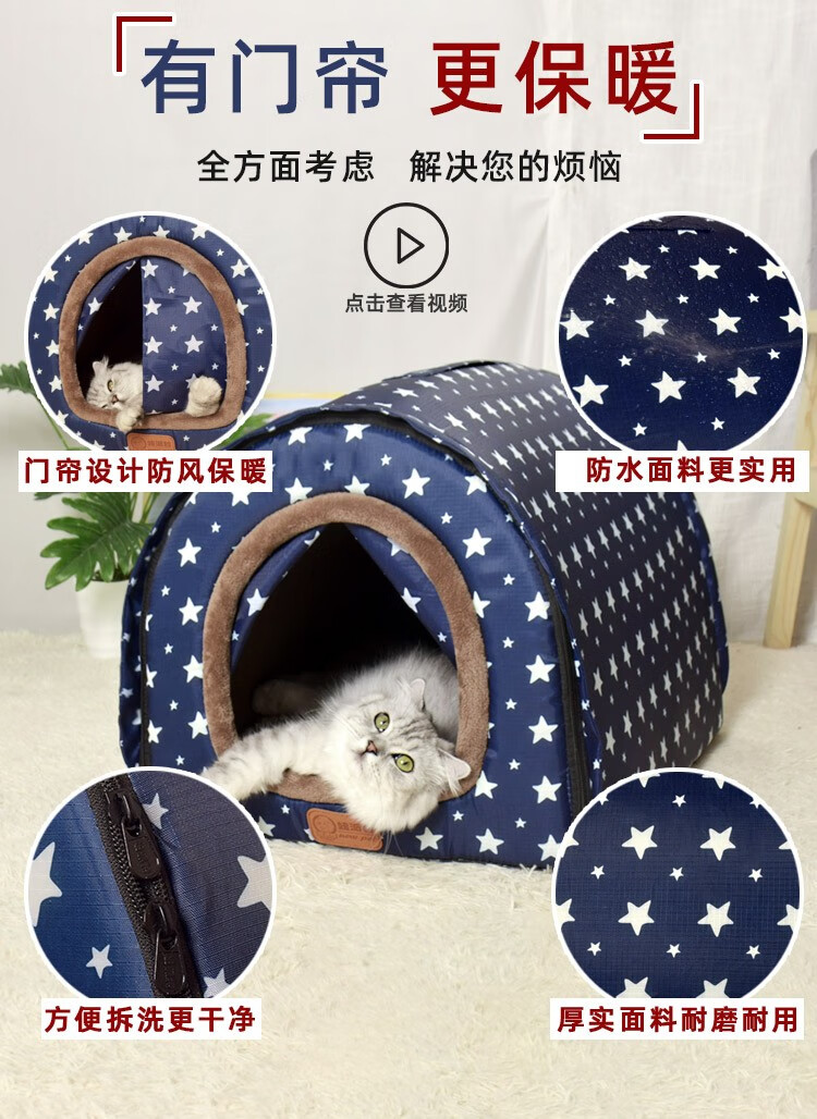 Niupate (new pet) cat house and dog house, small dog outdoor house, removable and washable four-season pet dog sleeping pad, winter warm and waterproof cat nest, removable and washable ordinary model_Waterproof Blue Star L57*44*39cm (recommended 20Jin Jin is equal to 0.5kg)
