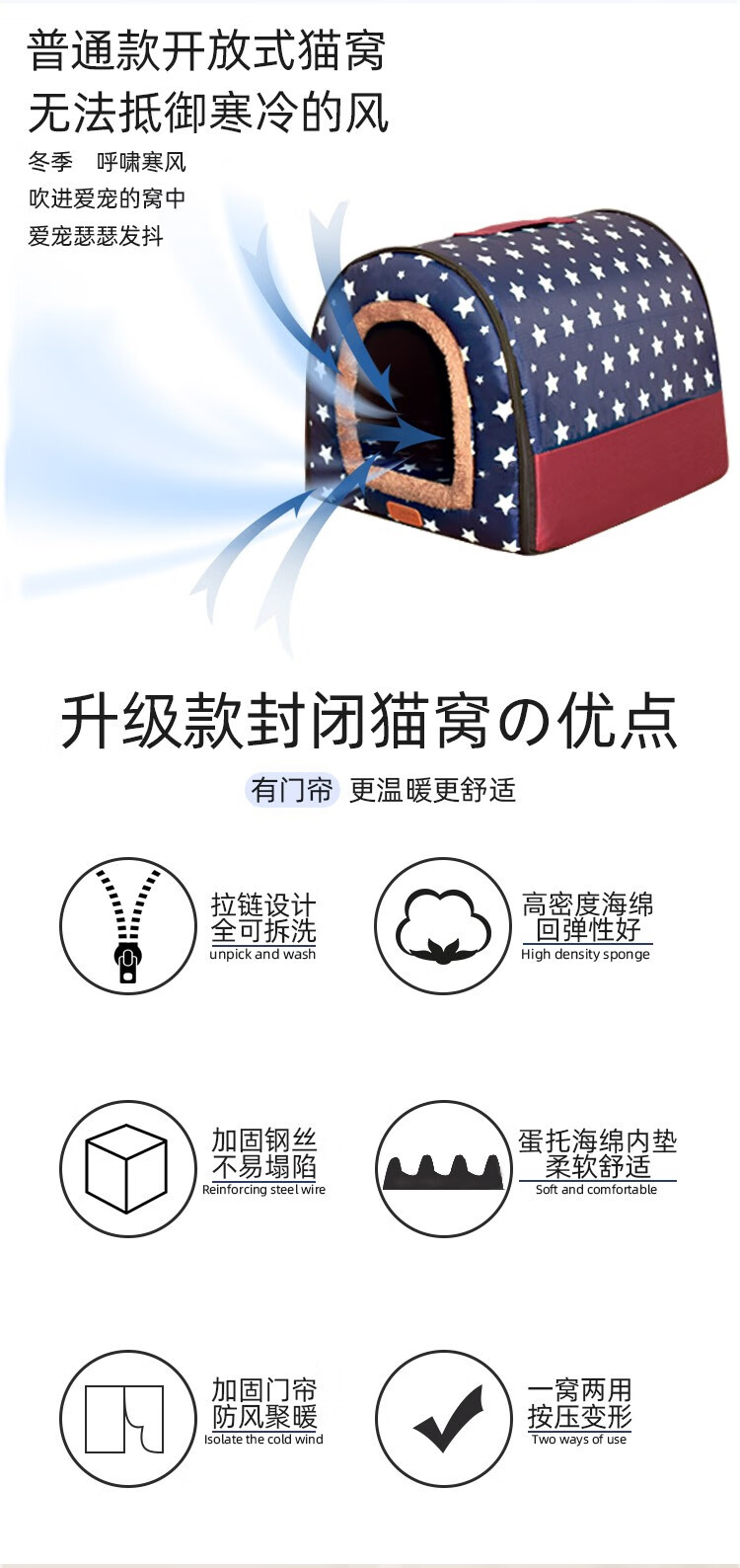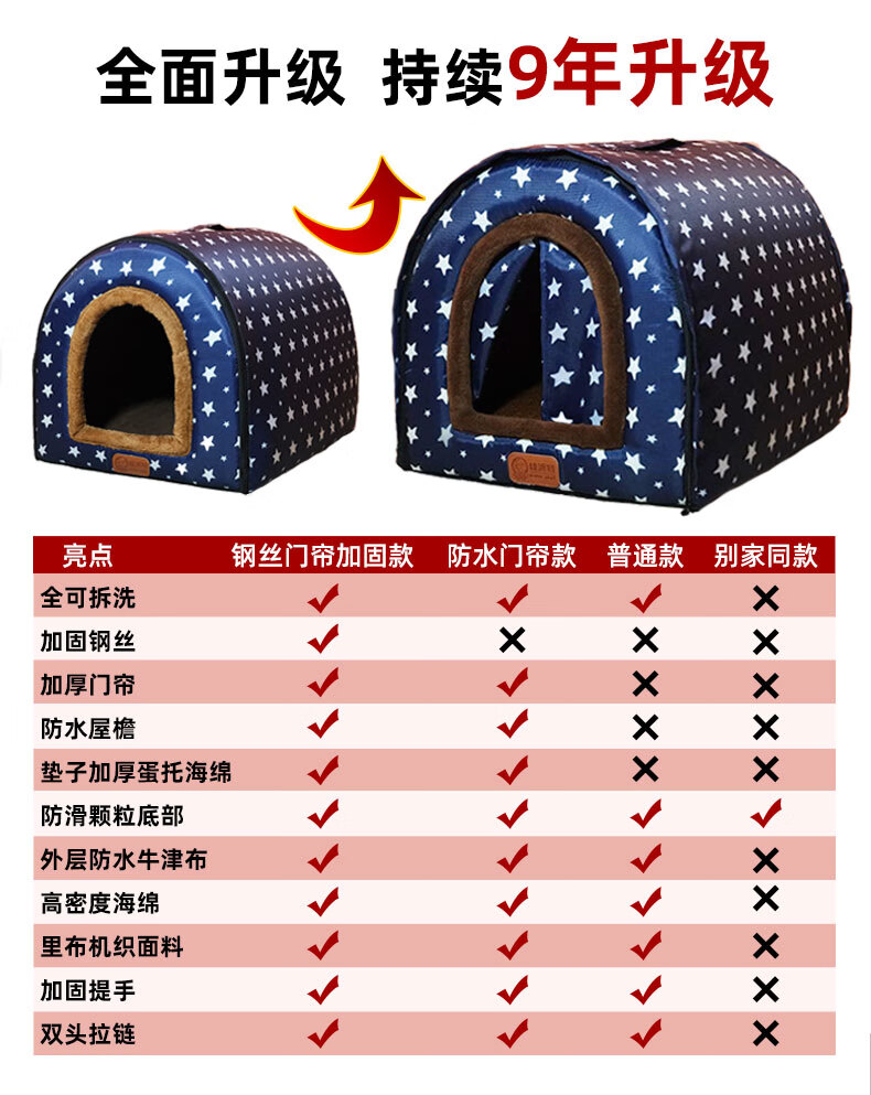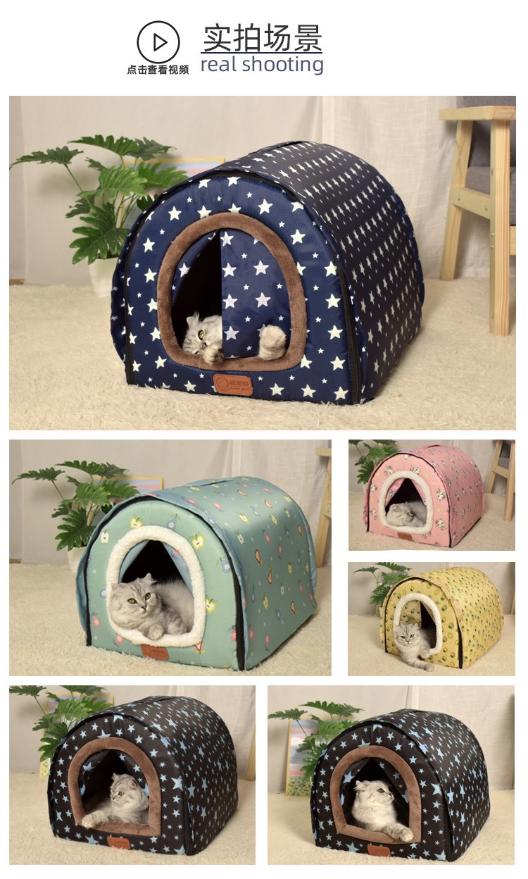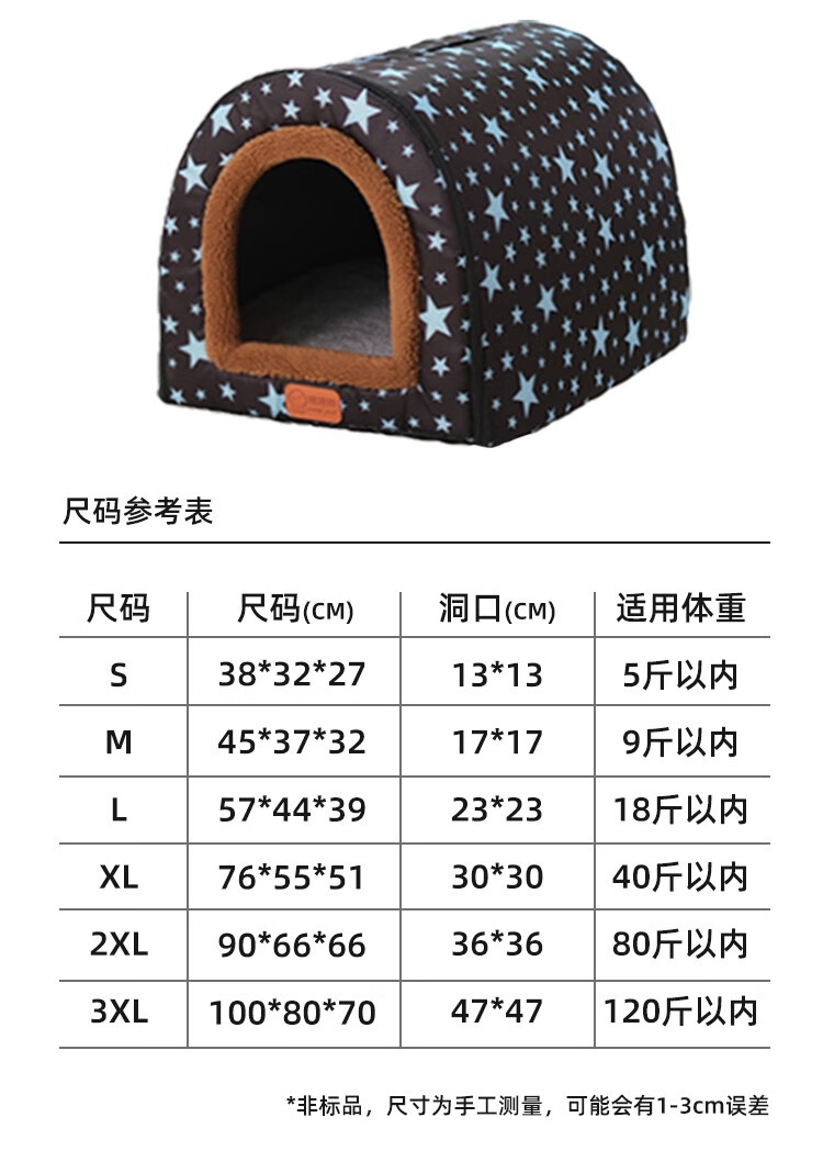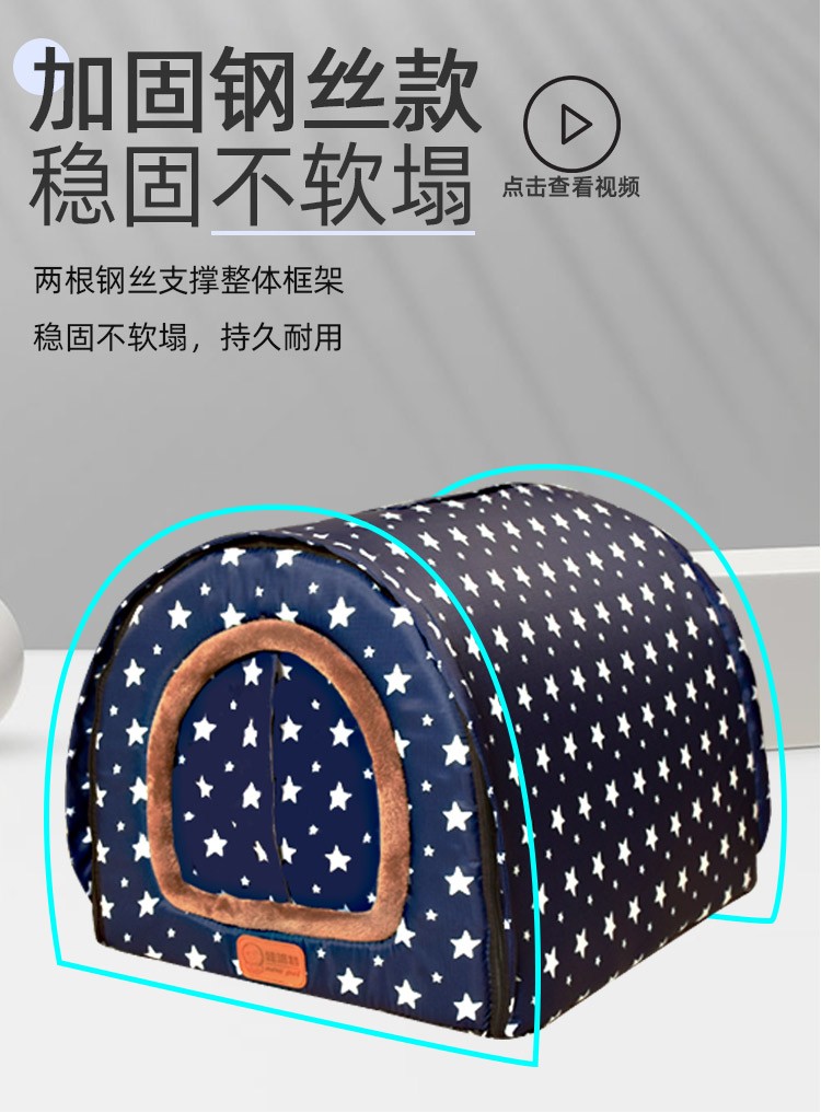 Niupate (new pet) cat house and dog house, small dog outdoor house, removable and washable four-season pet dog sleeping pad, winter warm and waterproof cat nest, removable and washable ordinary model_Waterproof Blue Star L57*44*39cm (recommended 20Jin Jin is equal to 0.5kg)