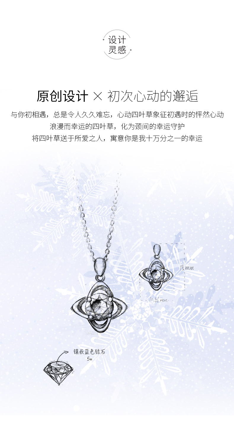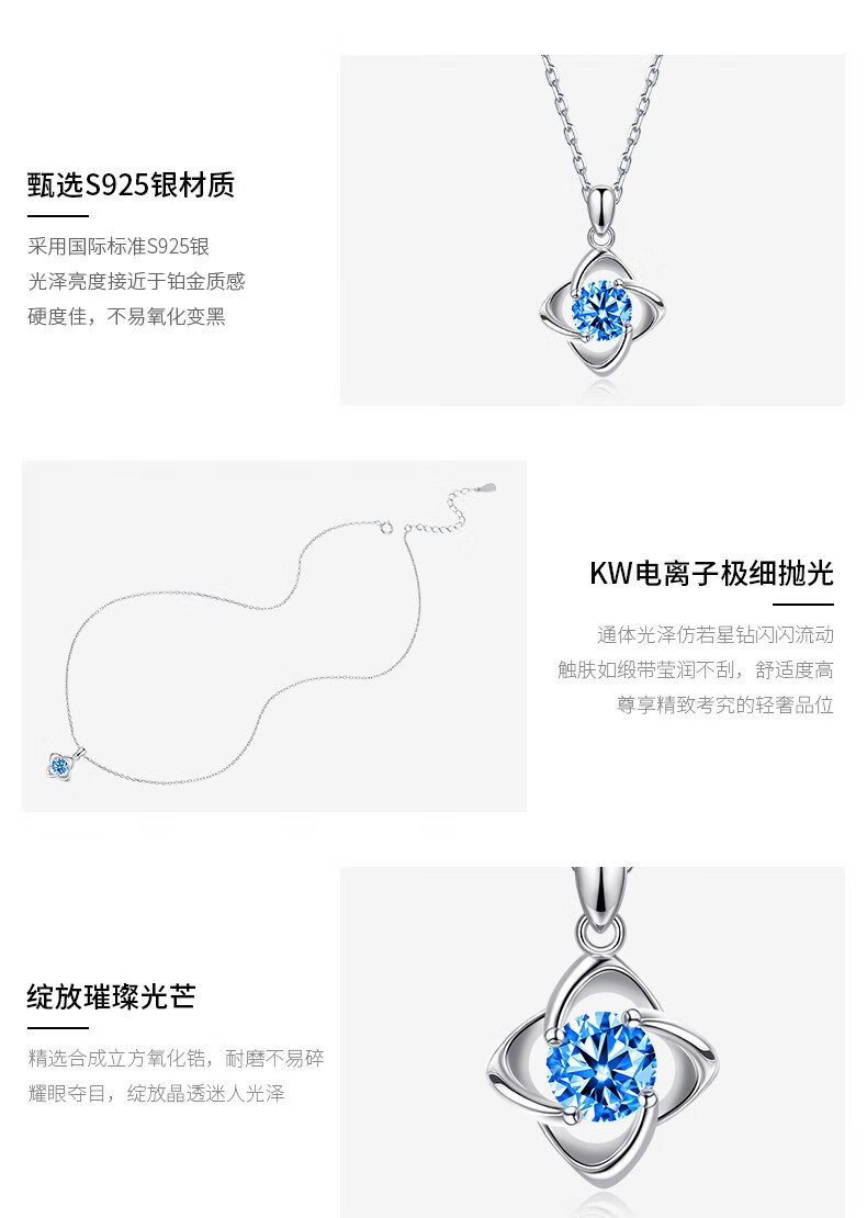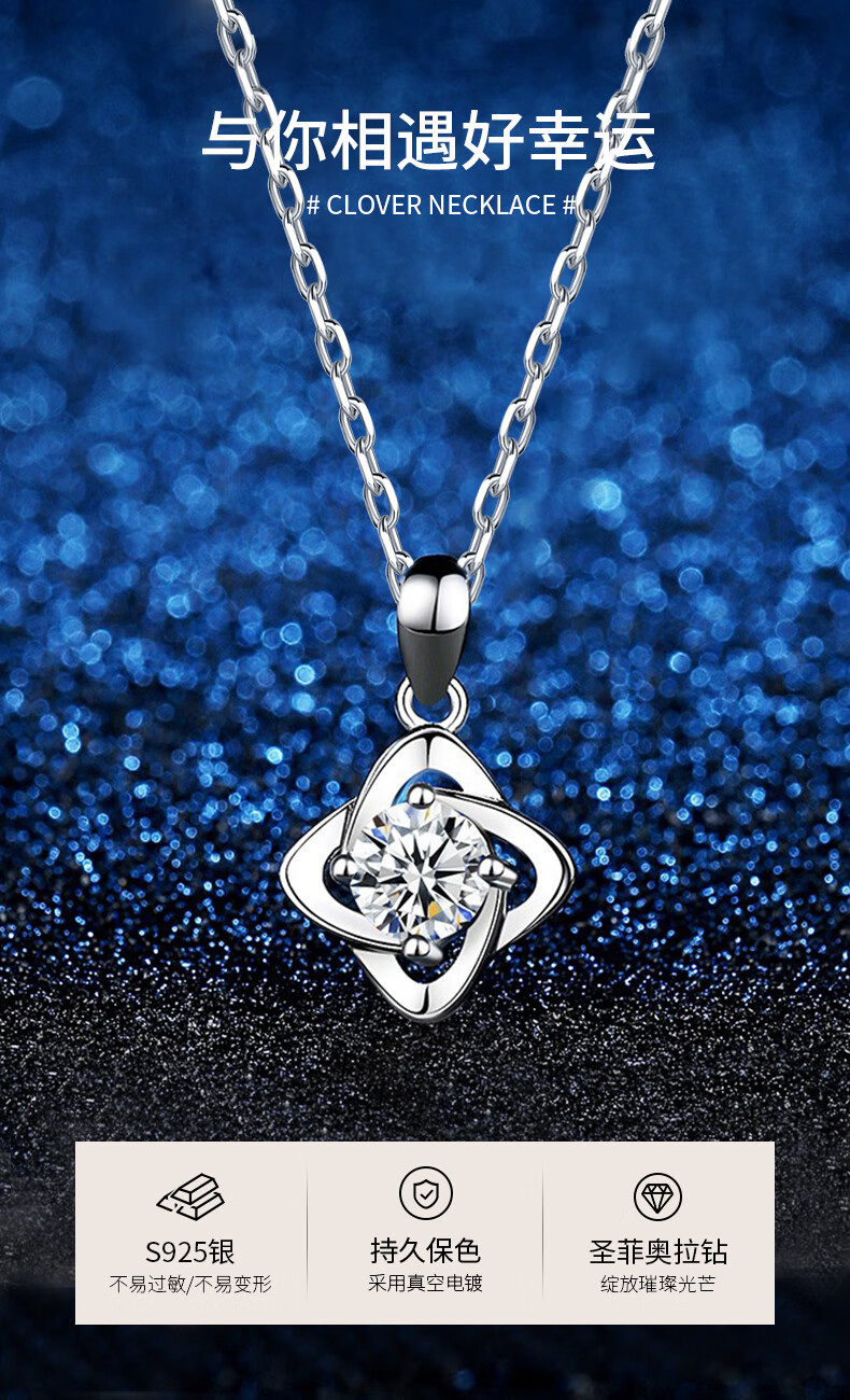 VIGG four-leaf clover silver necklace women's clavicle chain birthday Chinese Valentine's Day gift for girlfriend and wife wedding anniversary four-leaf clover necklace (sea blue) eternal flower gift box