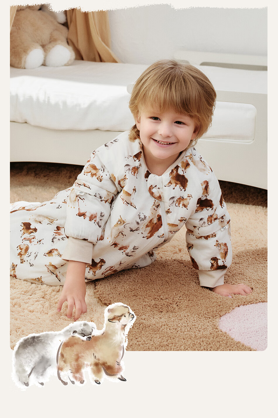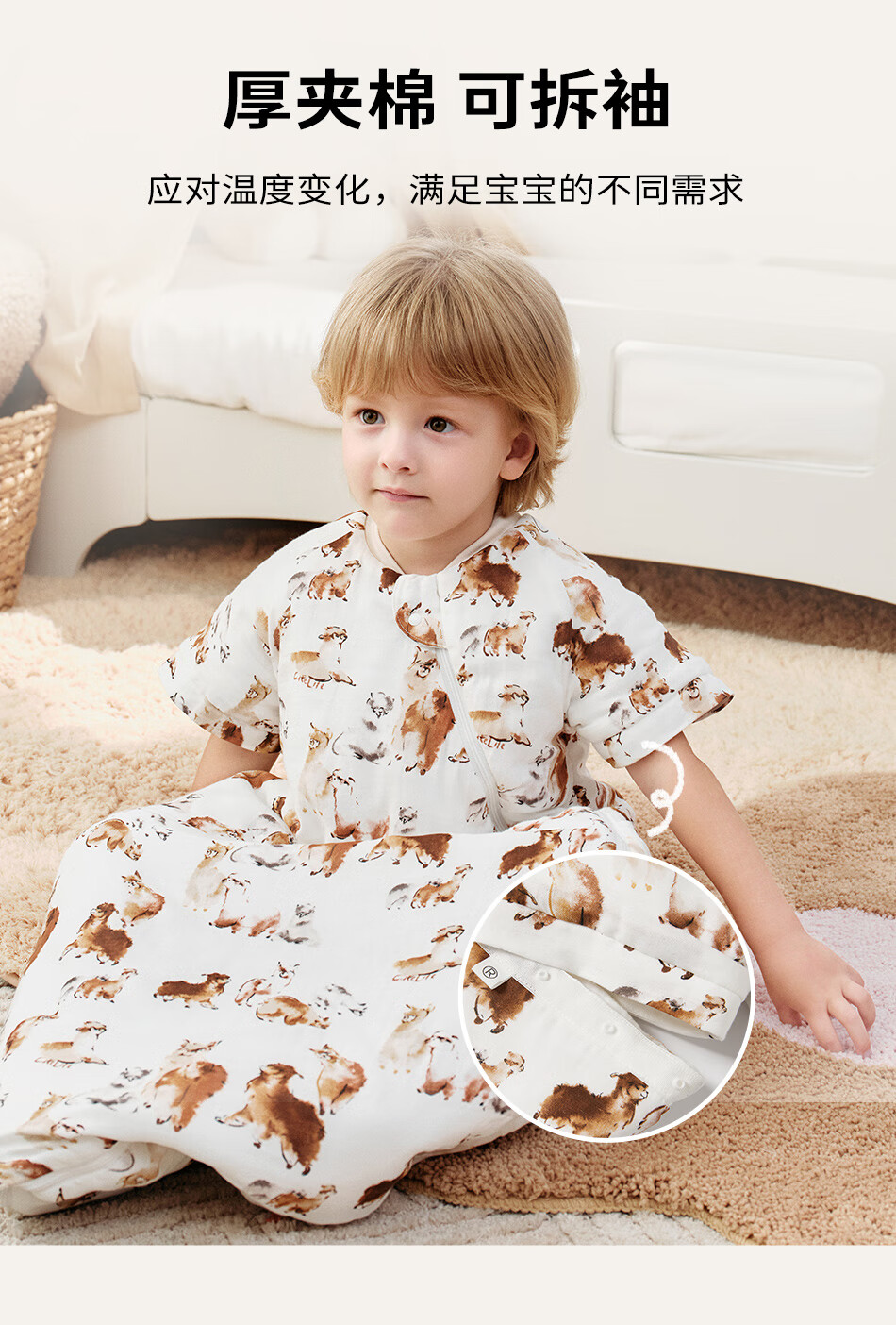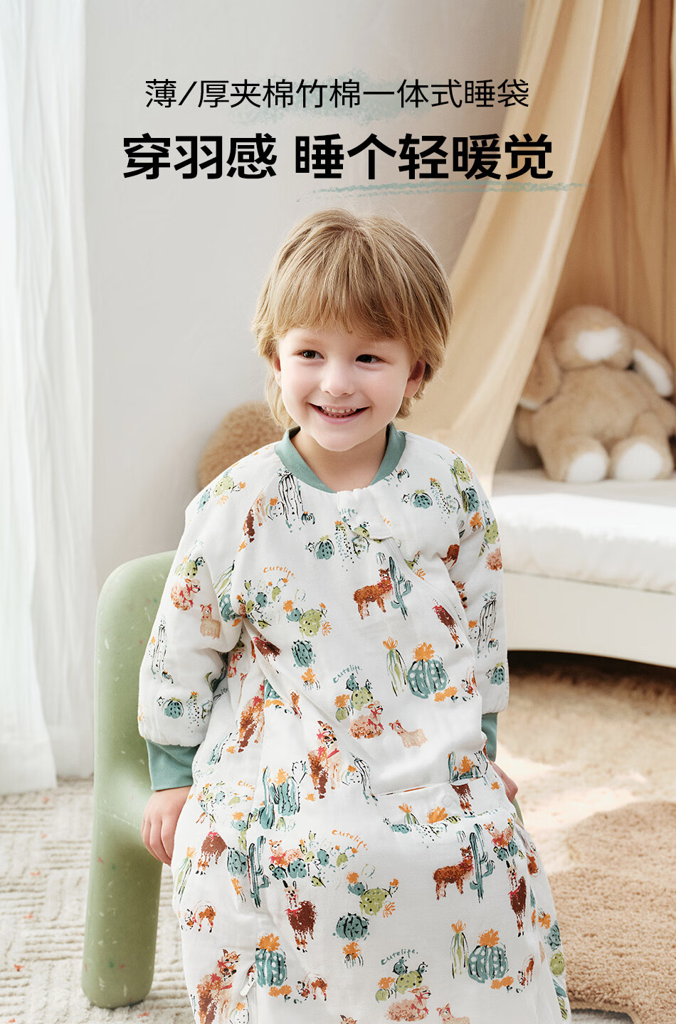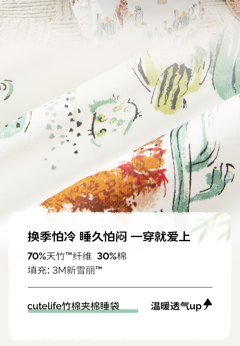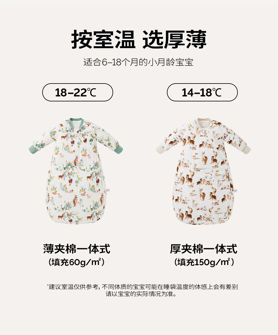 Cutelife Light Feather Bamboo Cotton Baby Sleeping Bag Autumn and Winter Small Month-old Baby All-in-one Leg Wraps to Prevent Cold Category A New Product Camel Adventures Thin Quilting 18-22 Degrees S Size (Recommended Height 65-80cm)