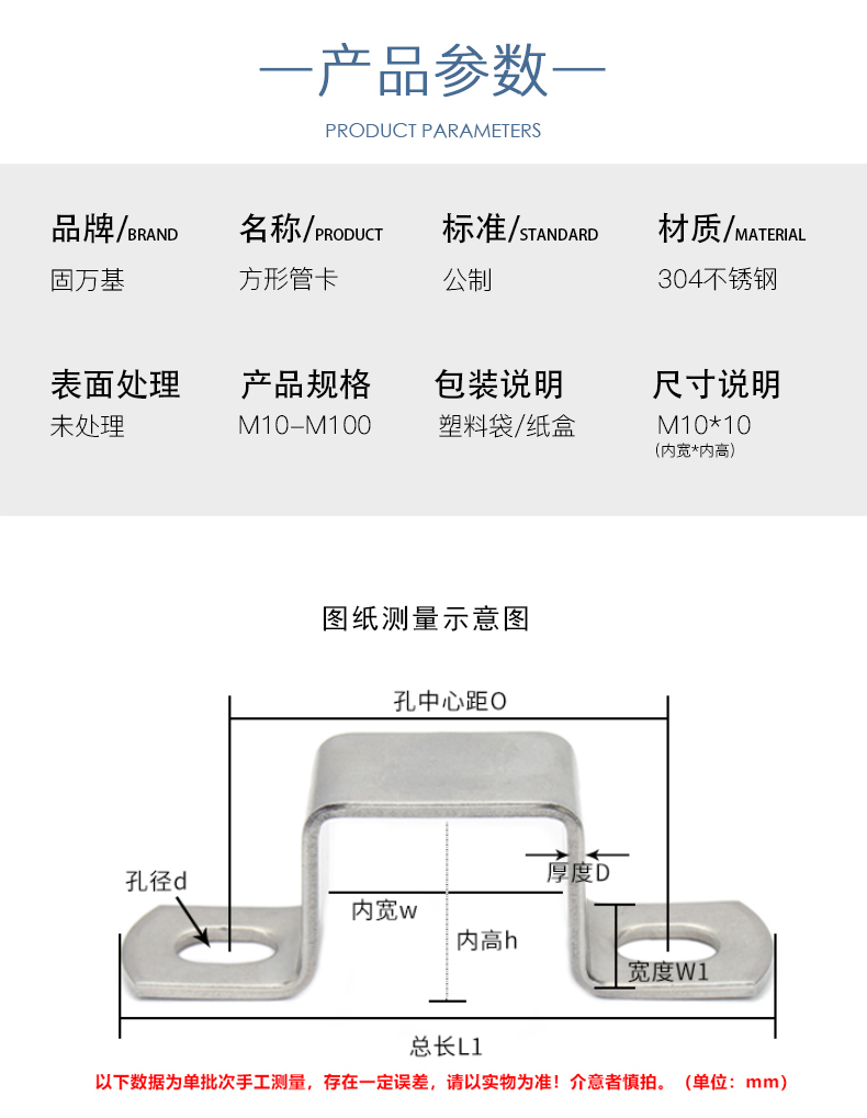 Guwanji 304 stainless steel clamp square card square tube buckle riding card square type hoop several words right angle bracket U-shaped pipe clamp M25x25 2 pieces 304 material