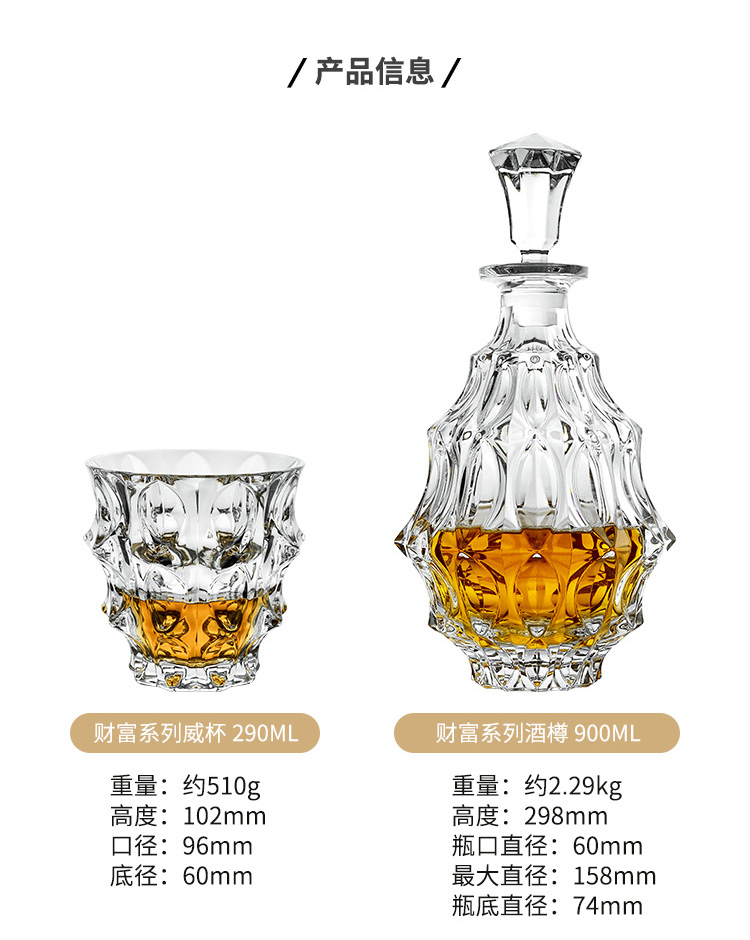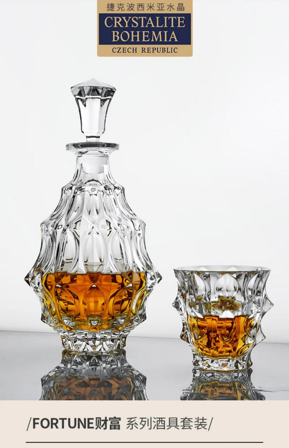 BOHEMIA Czech imported crystal glass whiskey glass bottle wine set creative personalized wine glass Fortune | Wine bottle 900ml + 2 pieces of Fortune