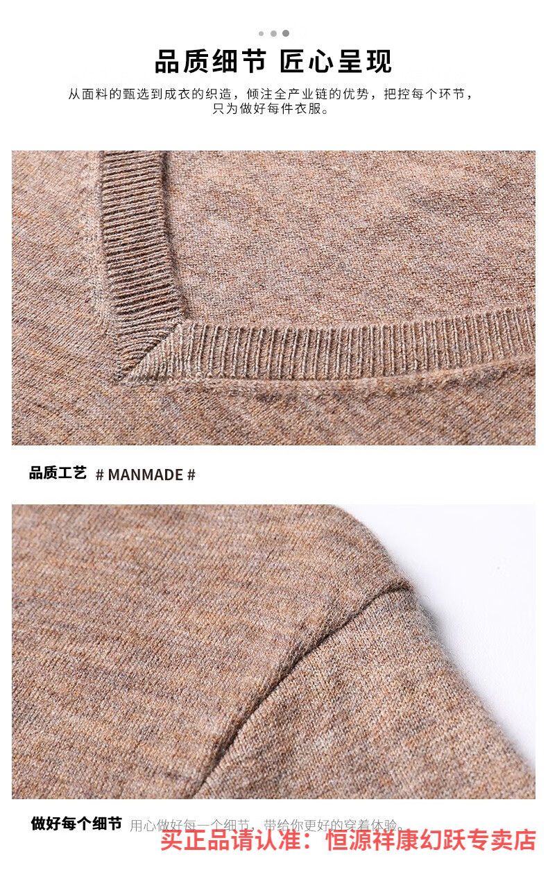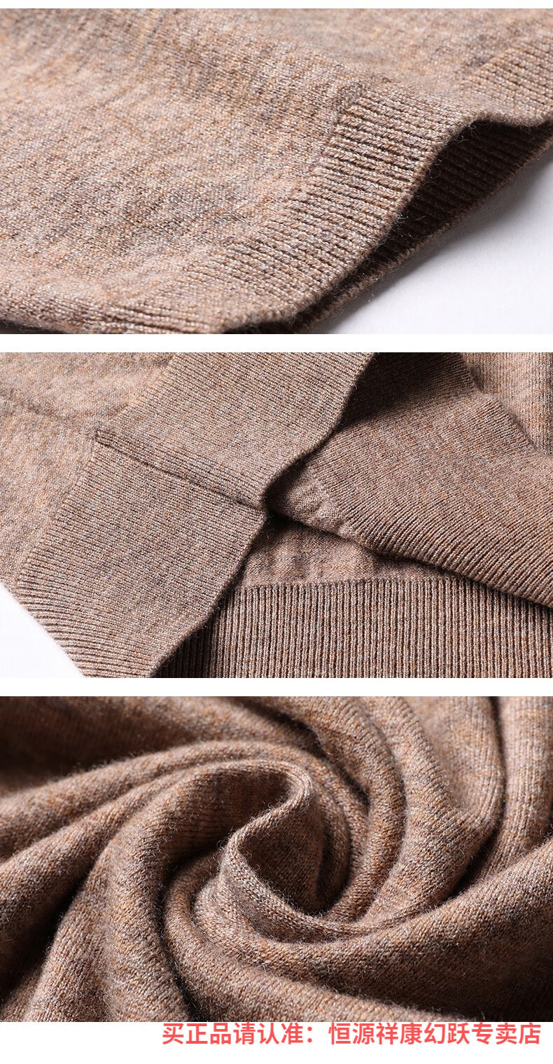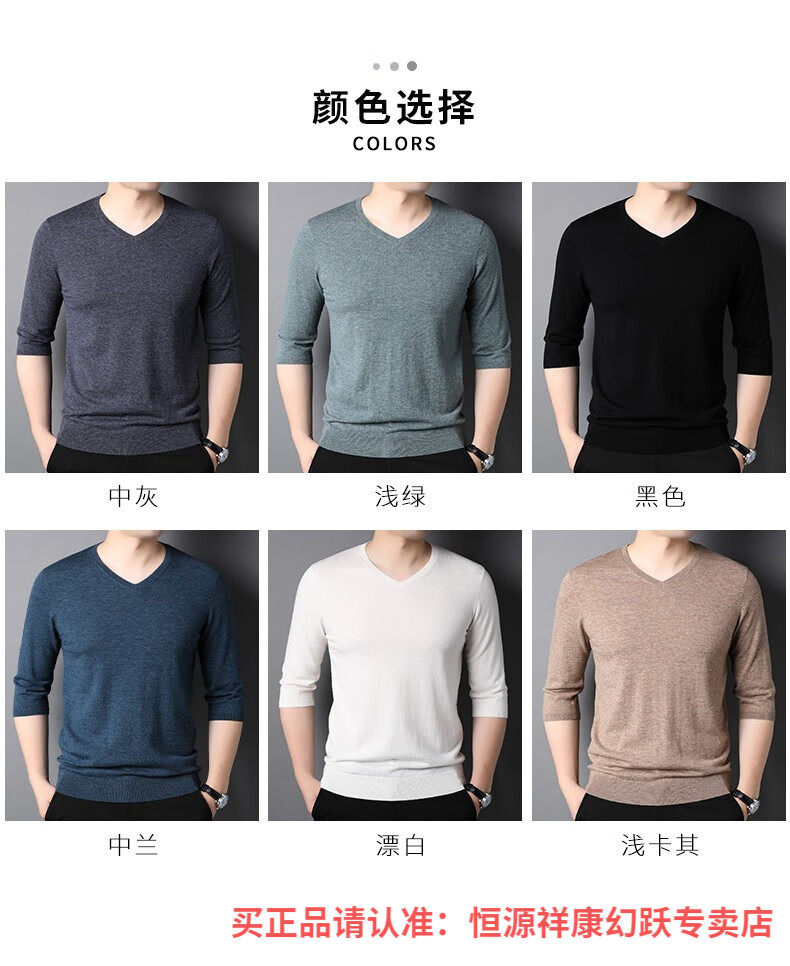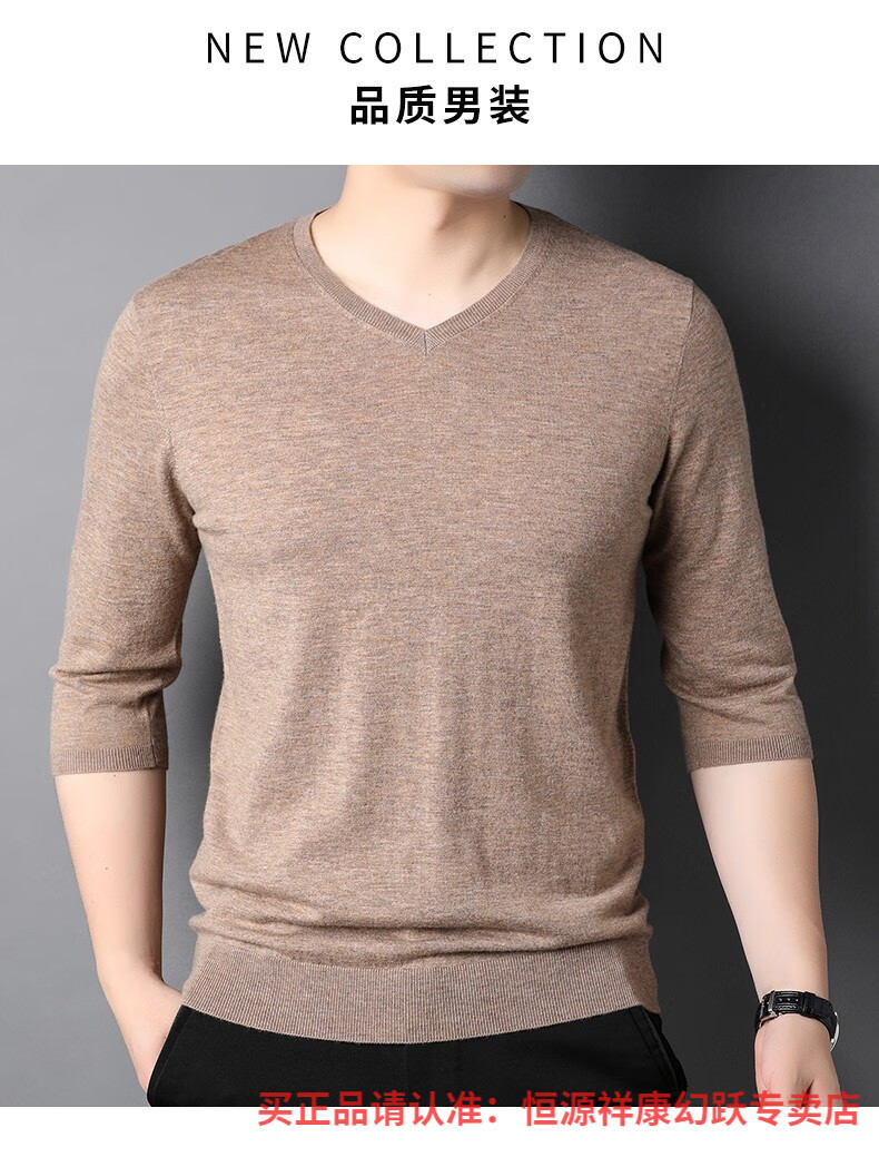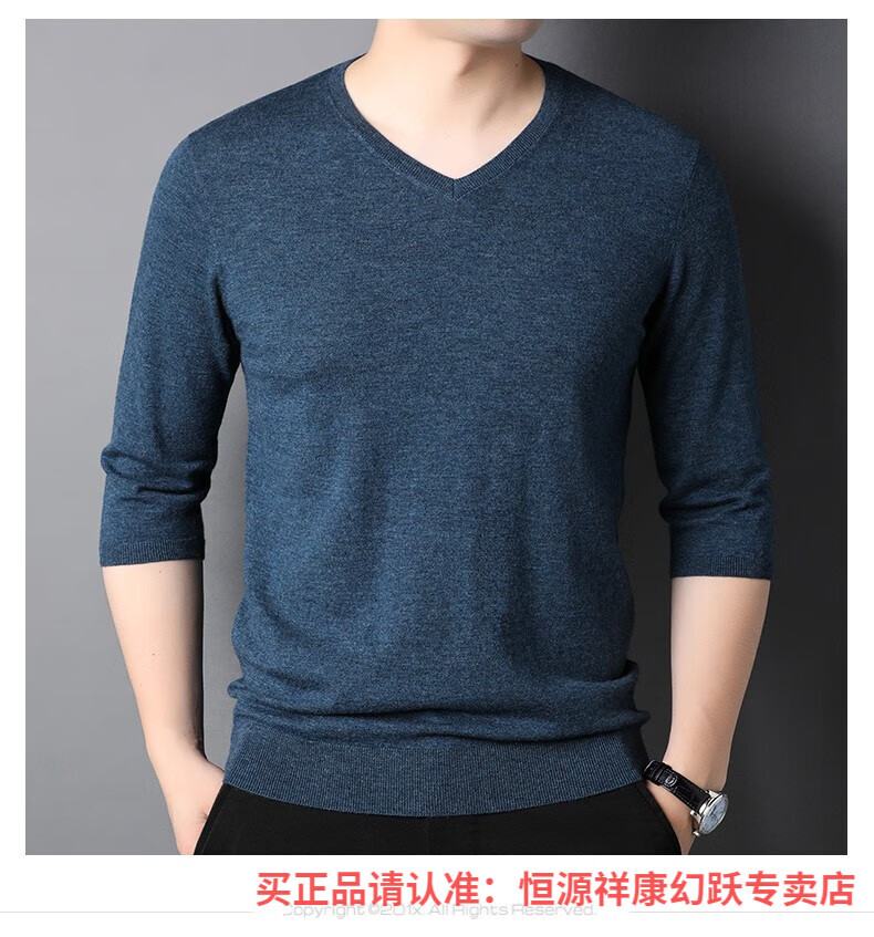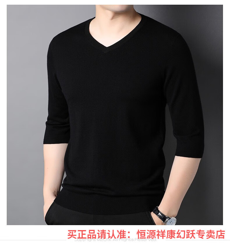 Hengyuanxiang pure wool sweater men's autumn v-neck solid color three-quarter sleeve sweater spring and autumn 100% wool thin knitted sweater medium gray L (175)