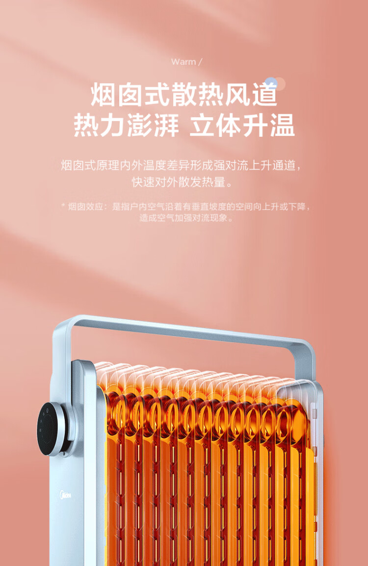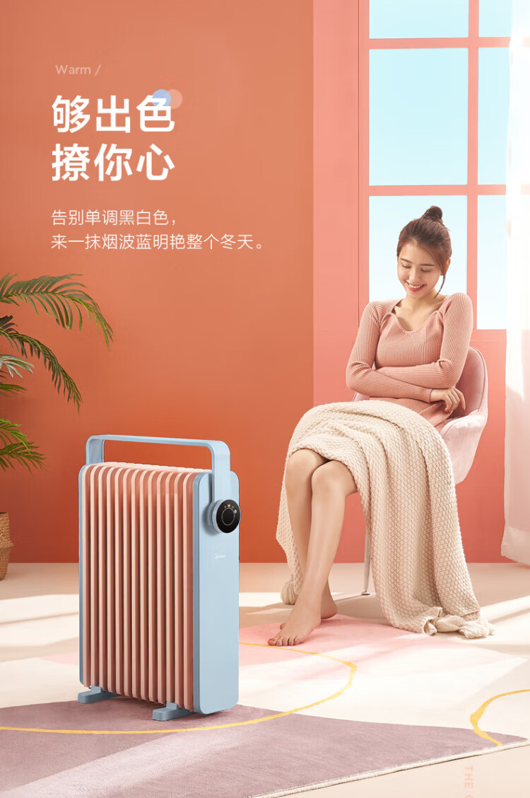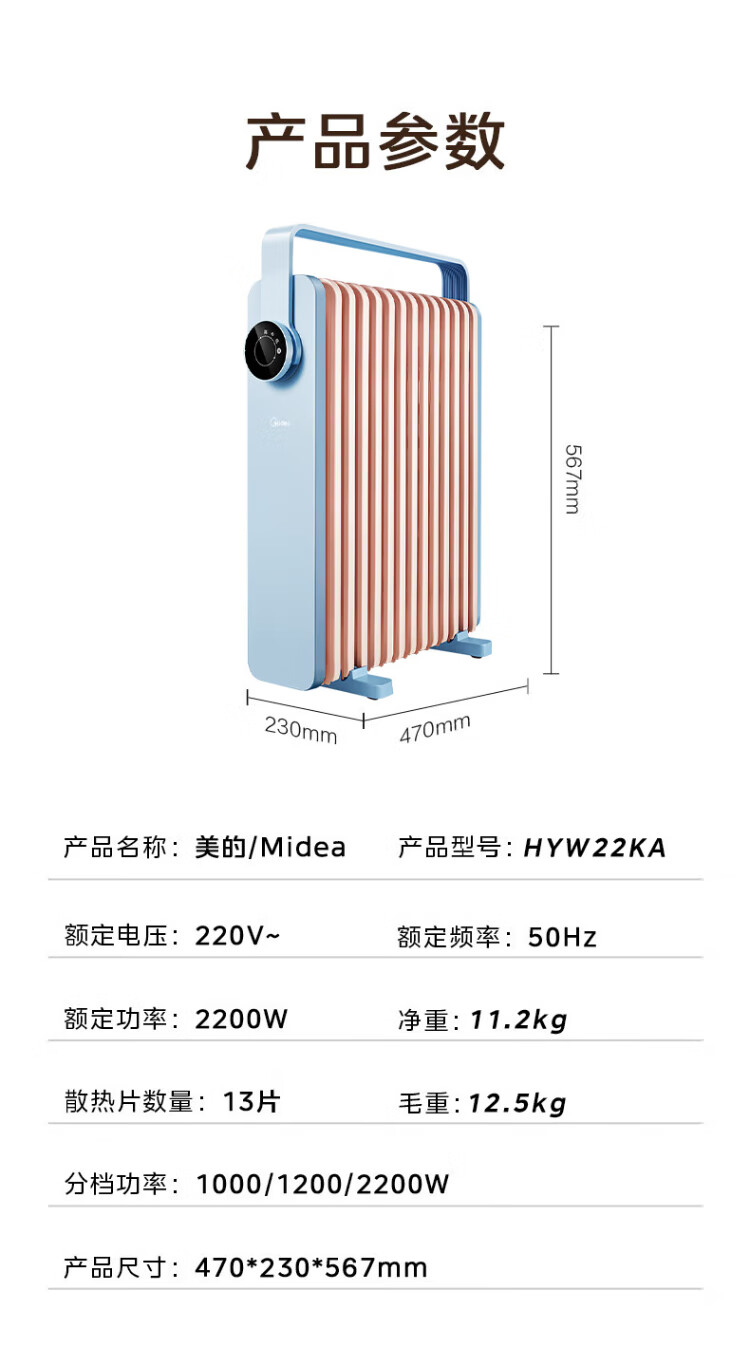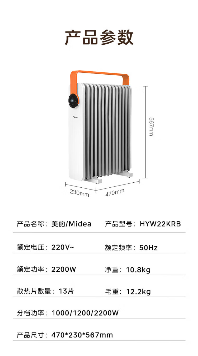 Midea Oil Heater Oil Electric Heater Household Electric Radiator Electric Heater Heating Heater Bedroom Living Room Large Area Quick Heat Safety Anti-Iron Drying Whole House Heating Preferred Heating HYW22KA