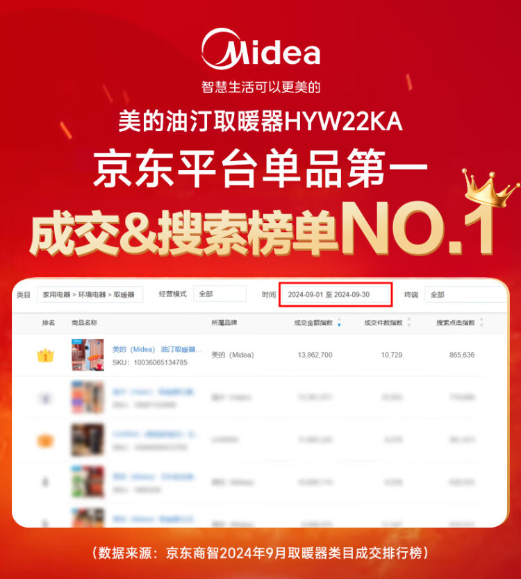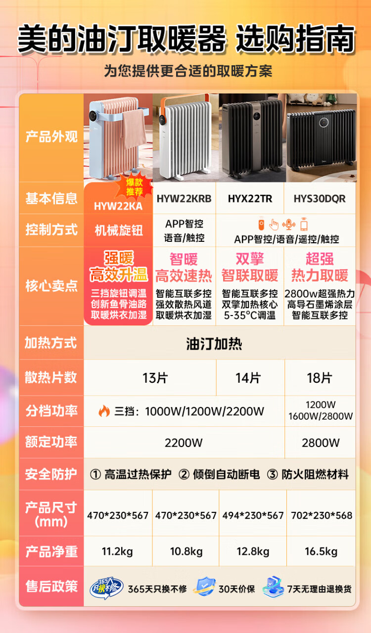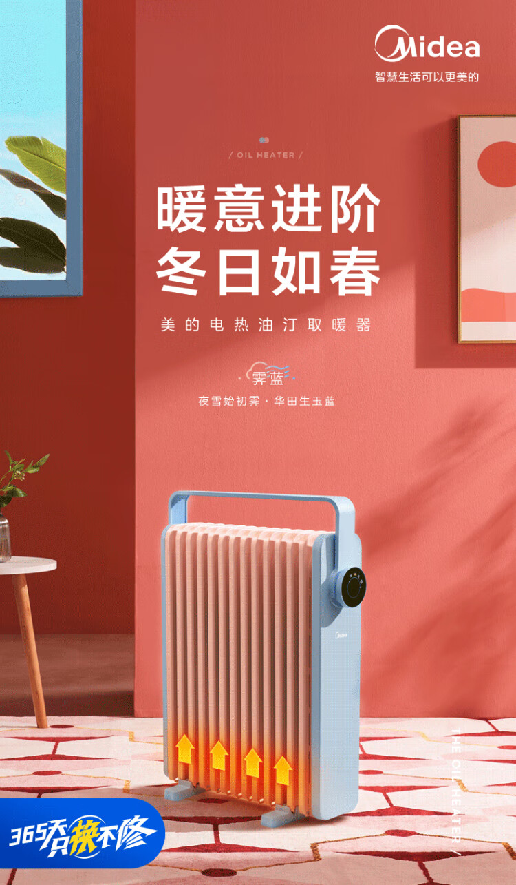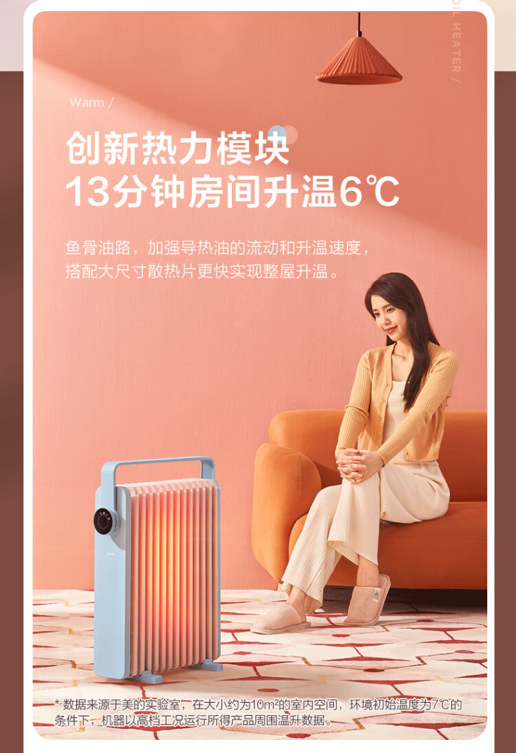 Midea Oil Heater Oil Electric Heater Household Electric Radiator Electric Heater Heating Heater Bedroom Living Room Large Area Quick Heat Safety Anti-Iron Drying Whole House Heating Preferred Heating HYW22KA