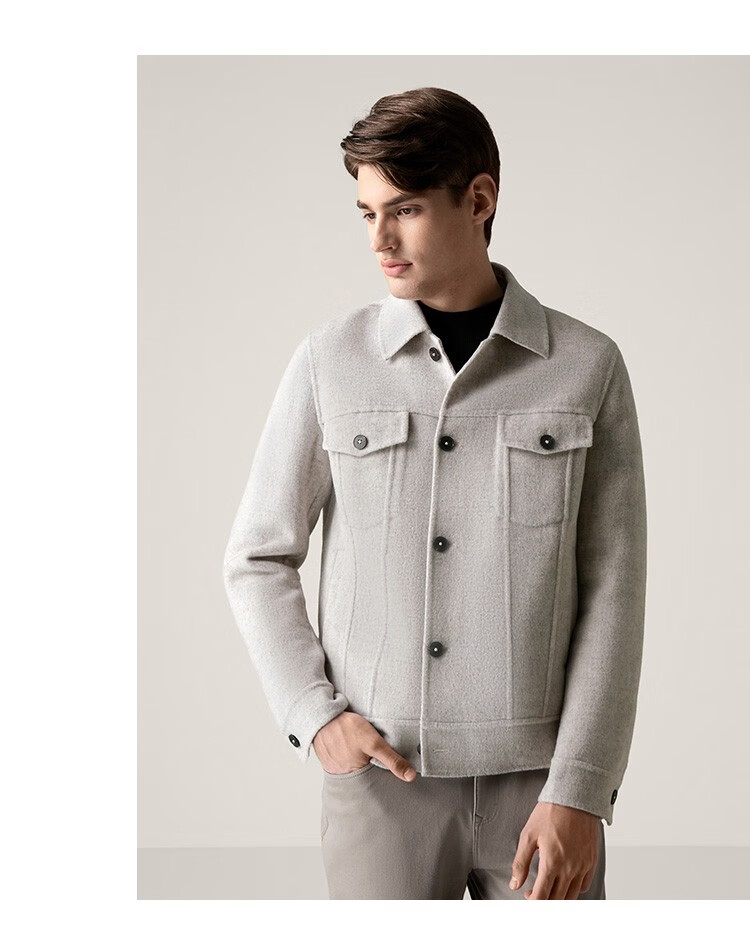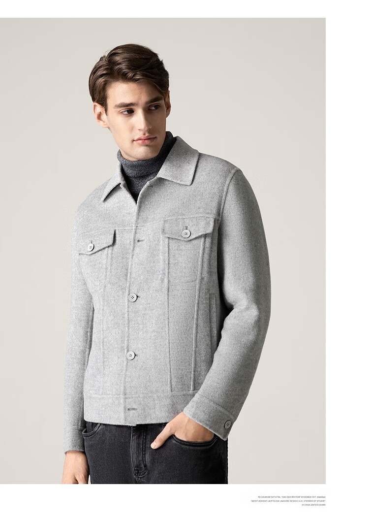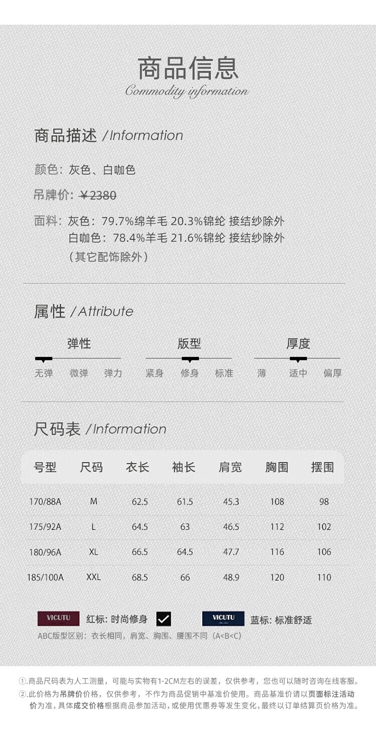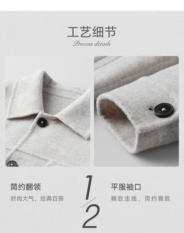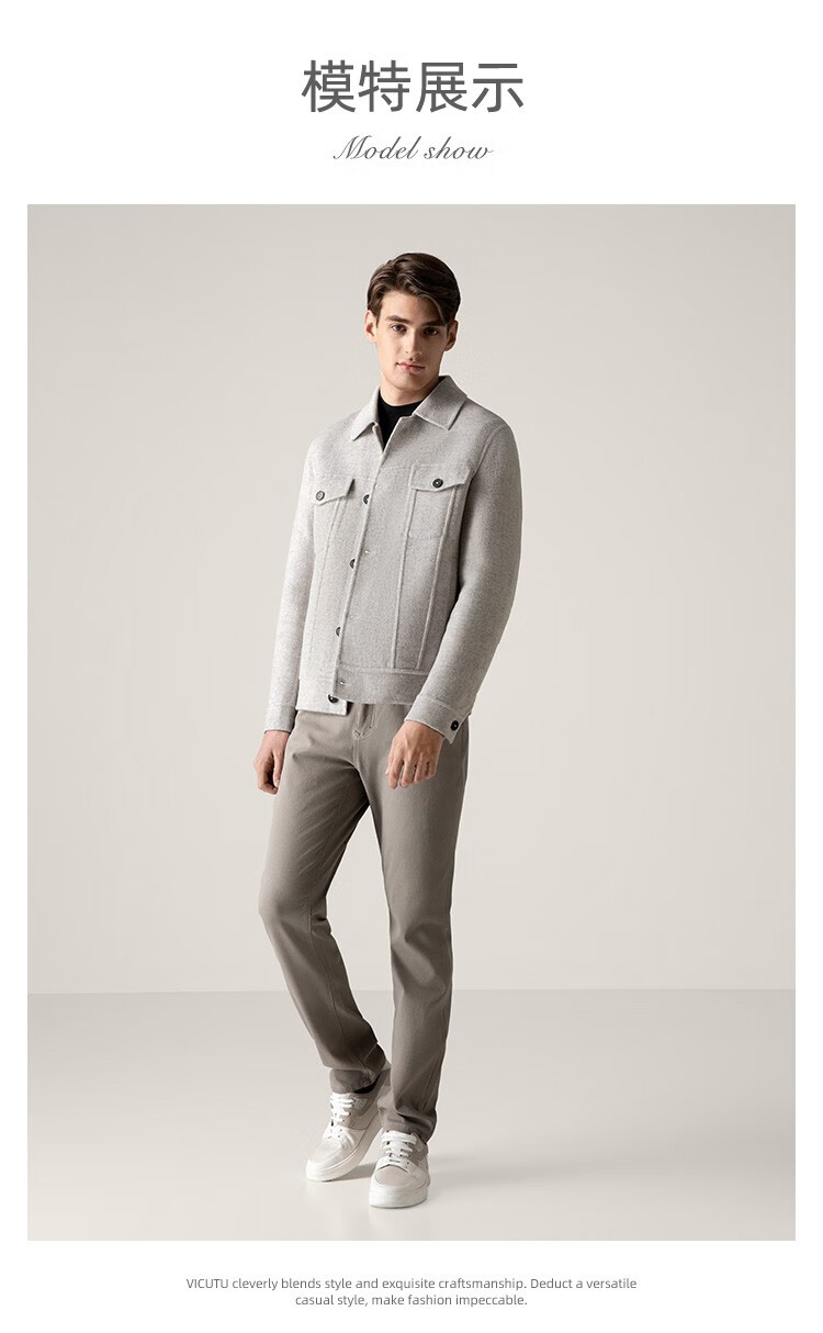 VICUTU men's coat double-sided woolen short business versatile autumn and winter coat white coffee M