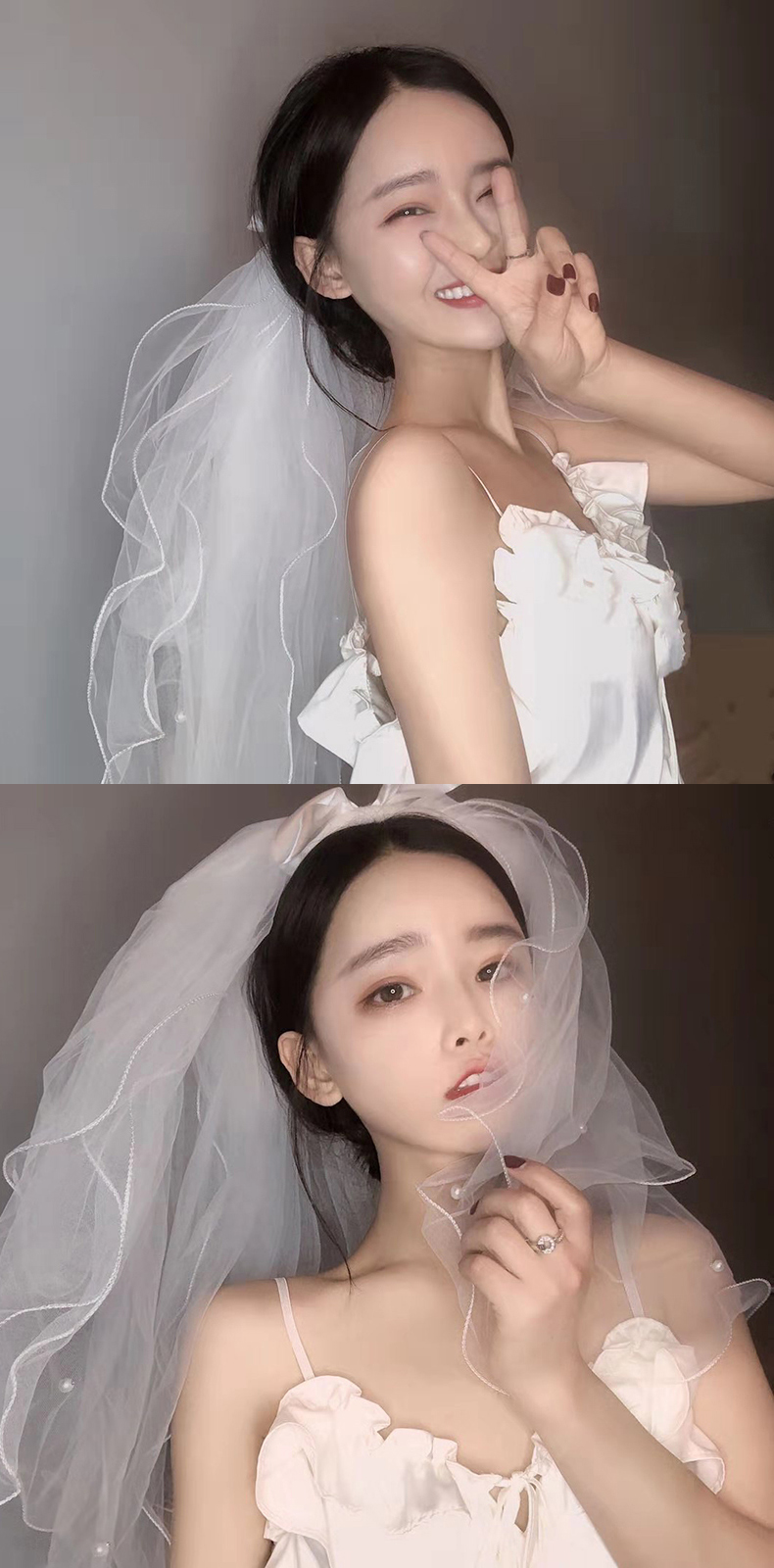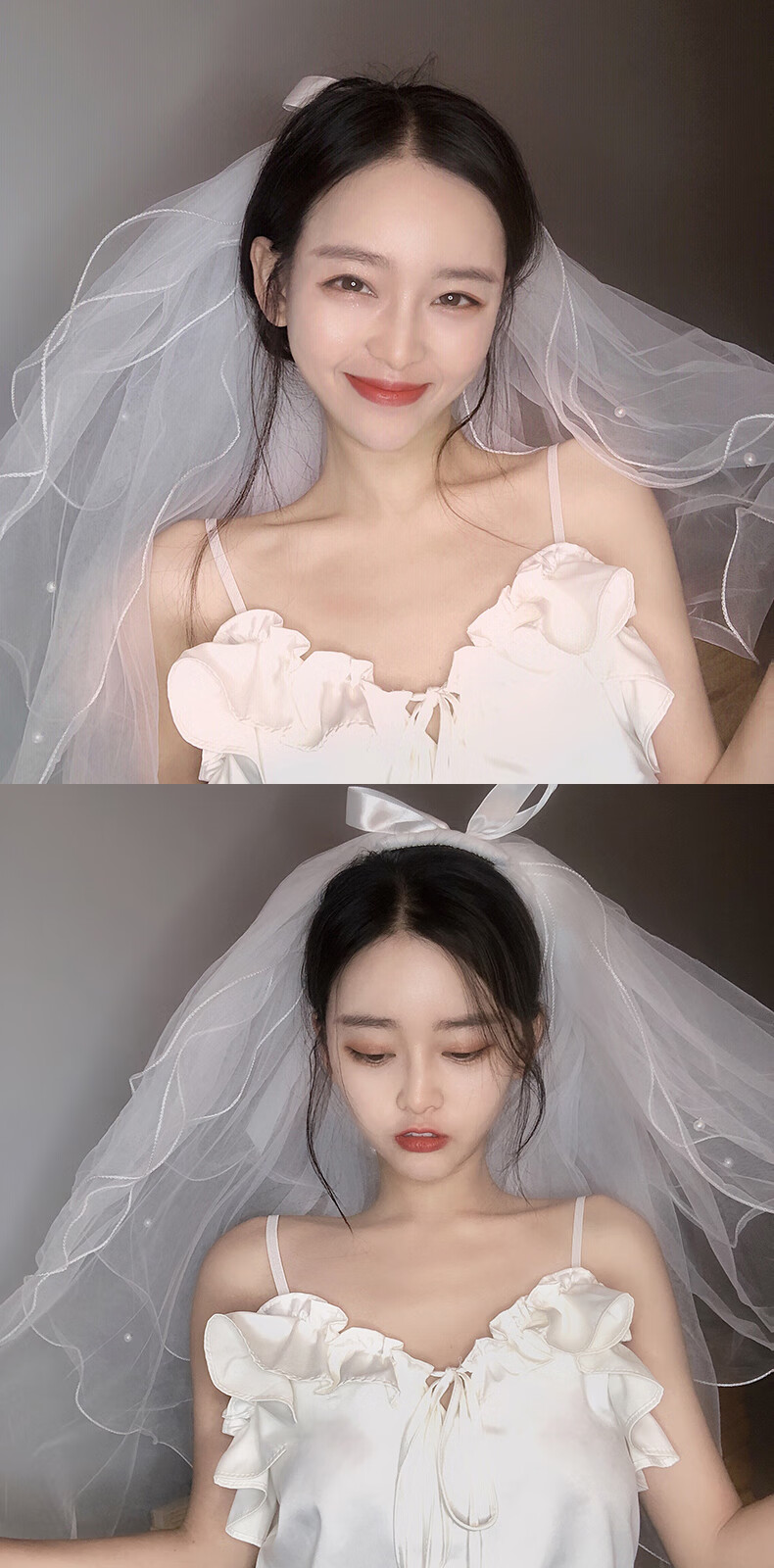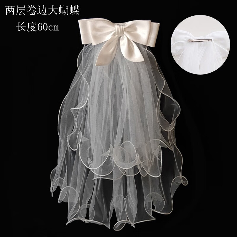 SHANGGE Veil Bow Beaded Wedding Dress Tiara Chinese Valentine's Day Confession Proposal High-end Props Photography Decorative Veil Double Curved Beaded Bow (Metal Hair Comb) 60cm