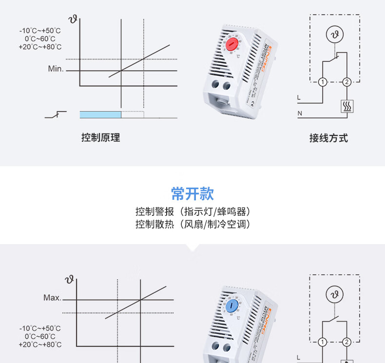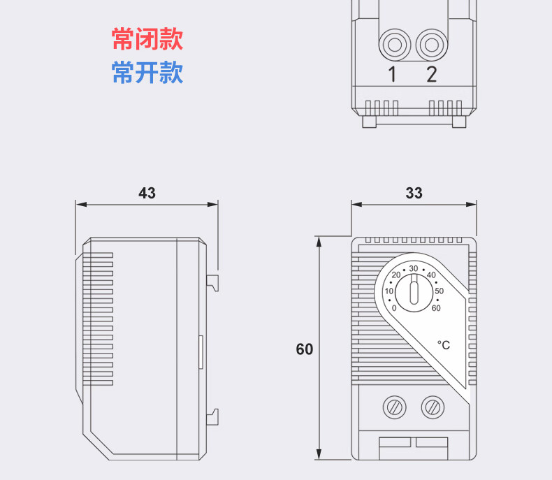 ENMG fully automatic cabinet thermostat MTC01-60 mechanical temperature control switch adjustable normally closed normally open temperature controller 10A pressure temperature controller MTC01-60 normally closed 0~+60