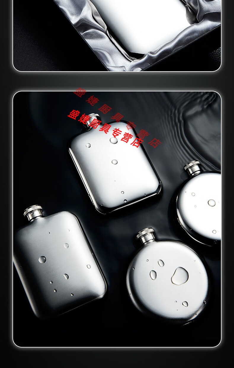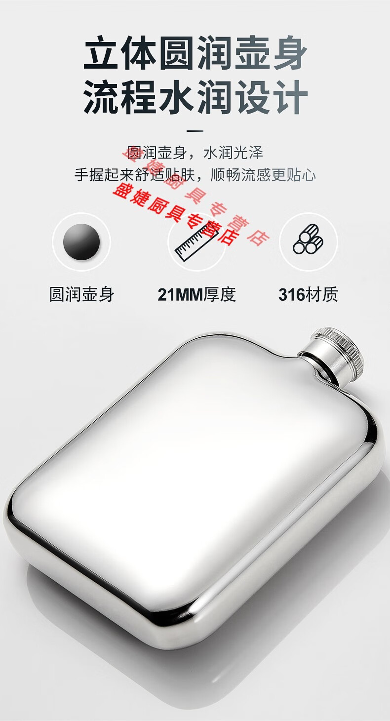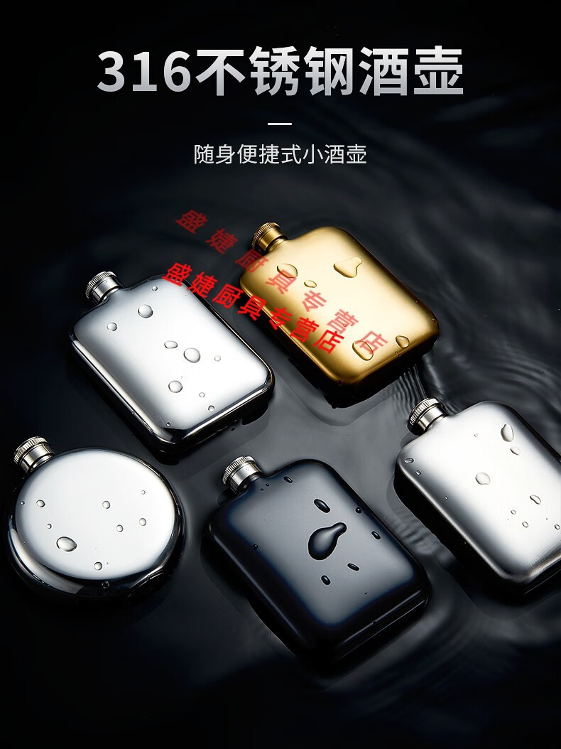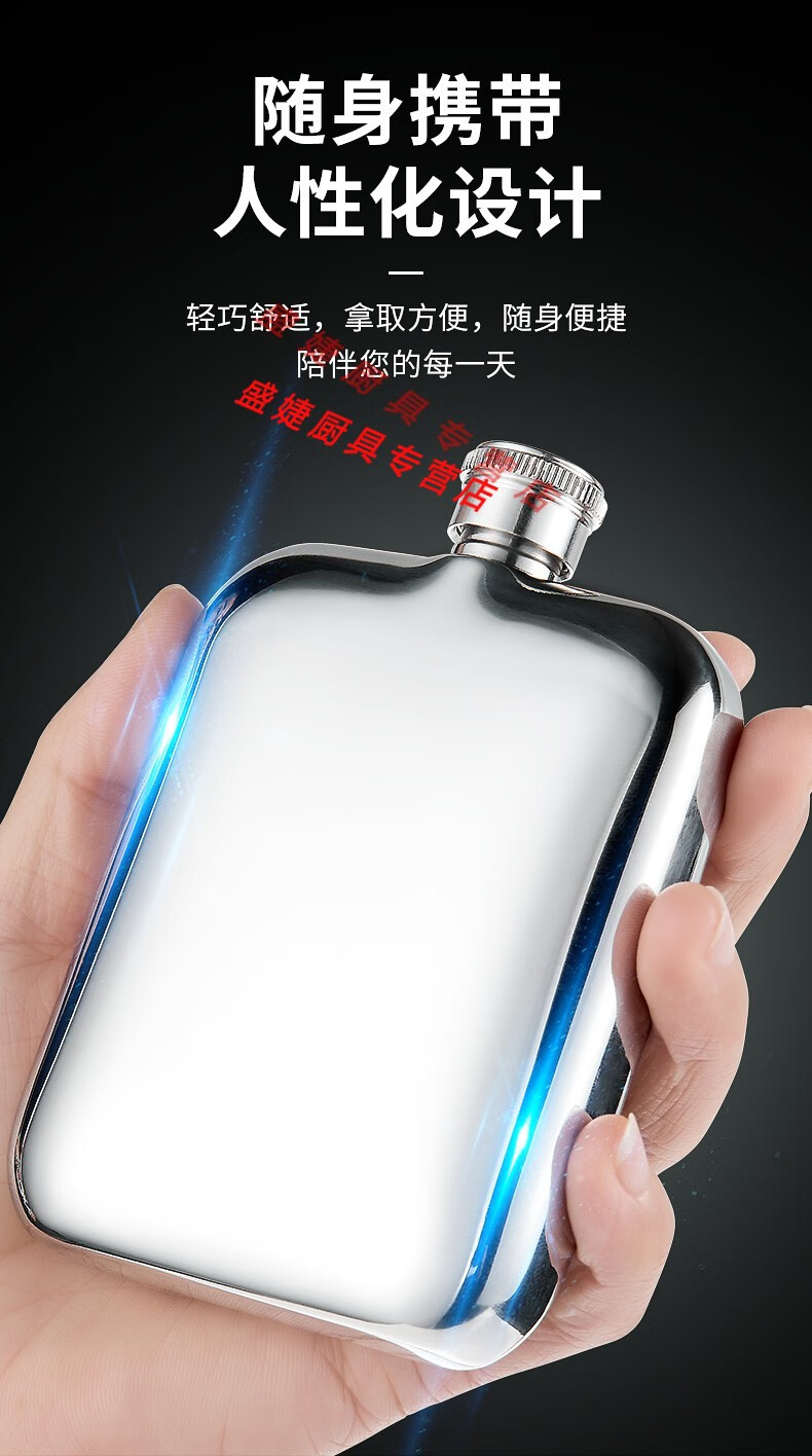 Zhewei thickened high-grade 316 stainless steel portable outdoor portable 304 small wine flask and flat wine bottle 1 to 3 and a half 5 Jin Jin equals 0.5 kg, packed with 2 taels of leather, 316 stainless steel gift box 100ml