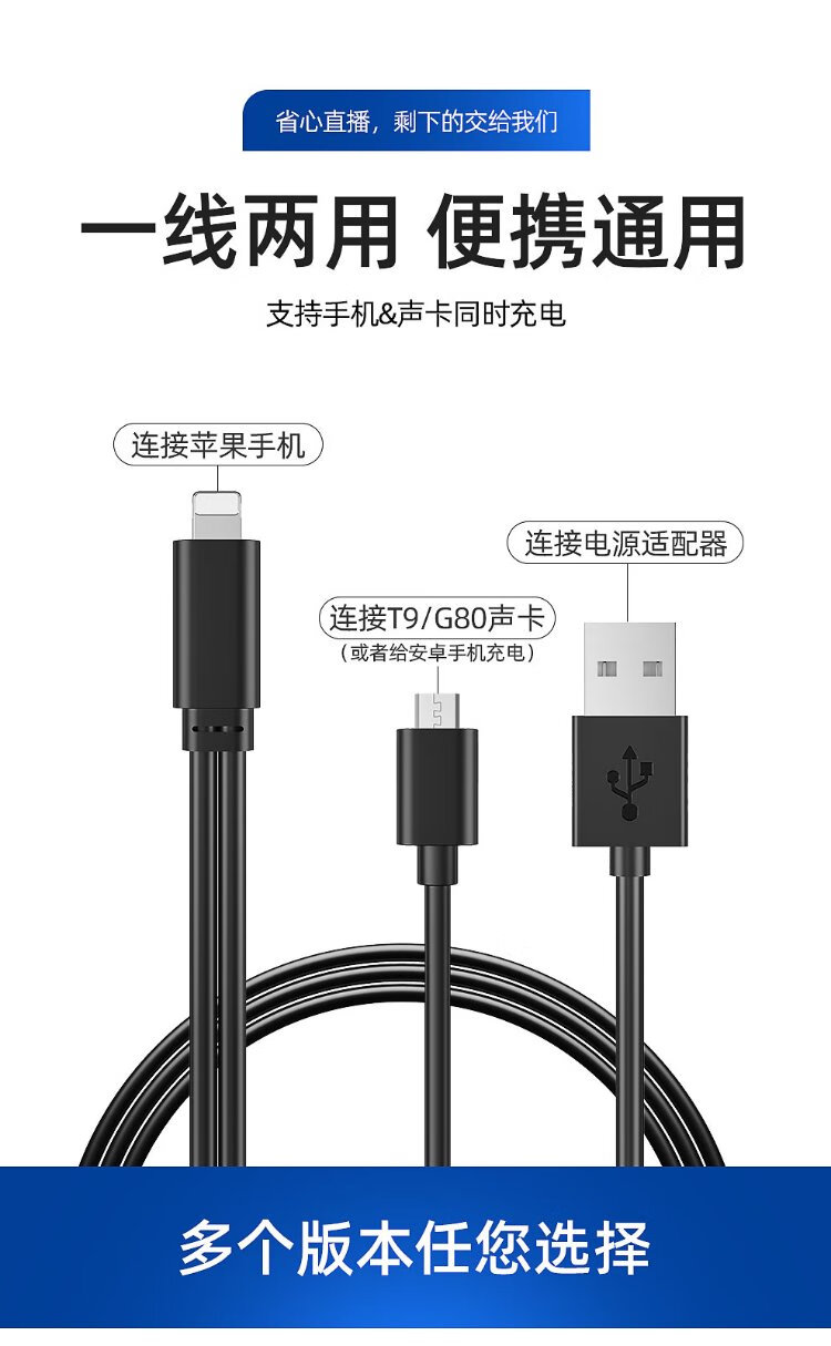 Charging cable for Meisheng T6\/T8\/T9\/G80 sound card while using (special reminder: buy the corresponding cable according to the model) T9S/Blue G6 (Android version) charging cable for while using