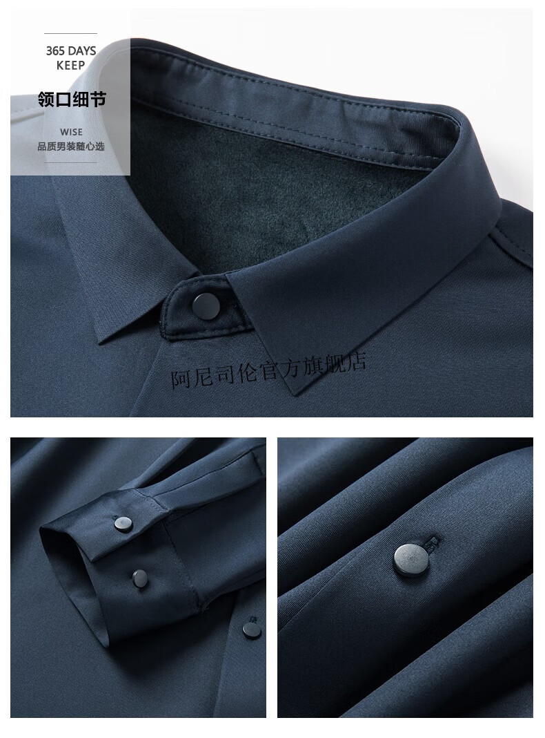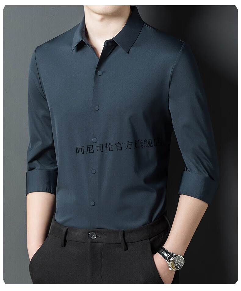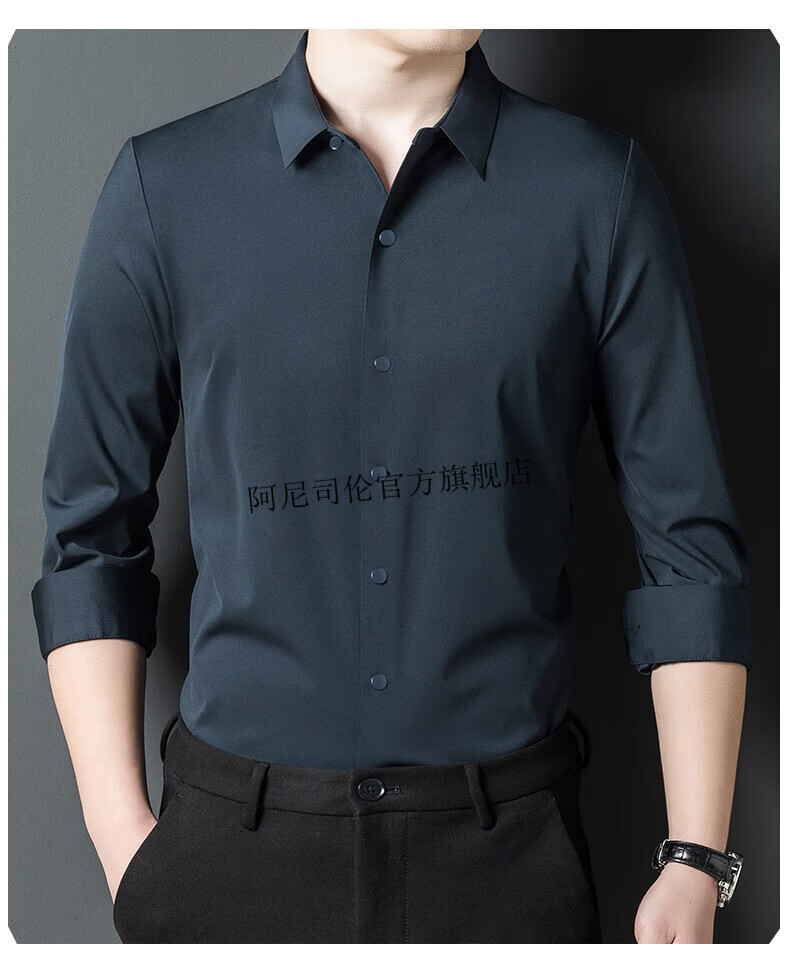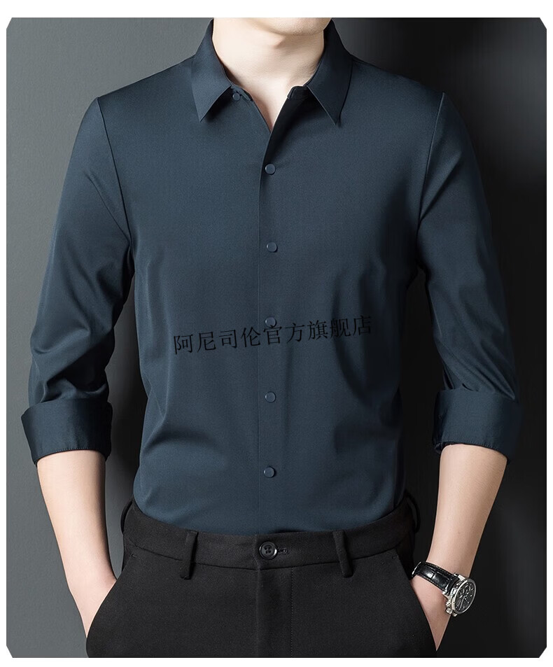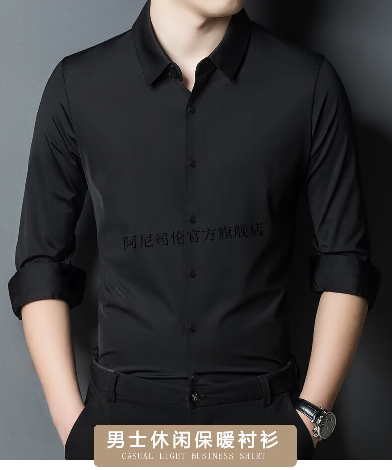 Anislen noble velvet long-sleeved shirt for men in winter thickened and warm solid color no ironing all-match business casual slim shirt for men 3021 upper cyan plus velvet warm style 2XL 180 size recommended 150-165 Jin Jin equals 0.5 kg