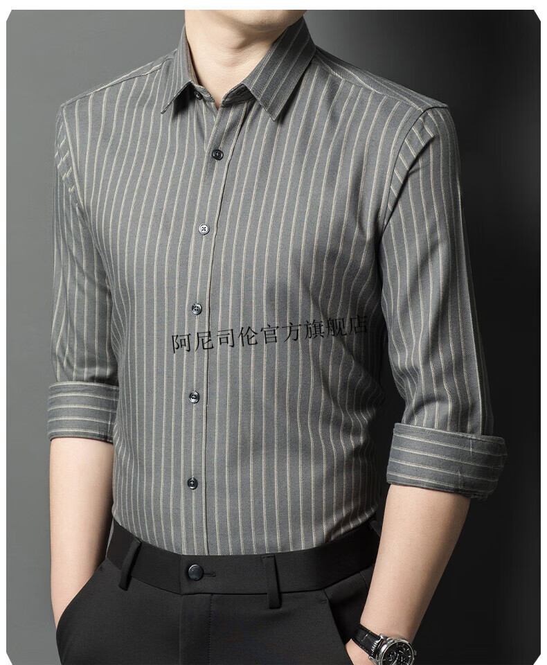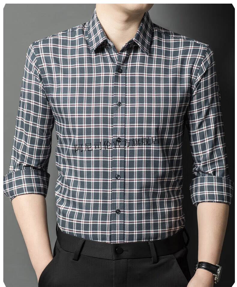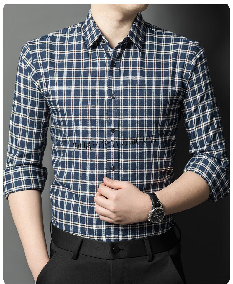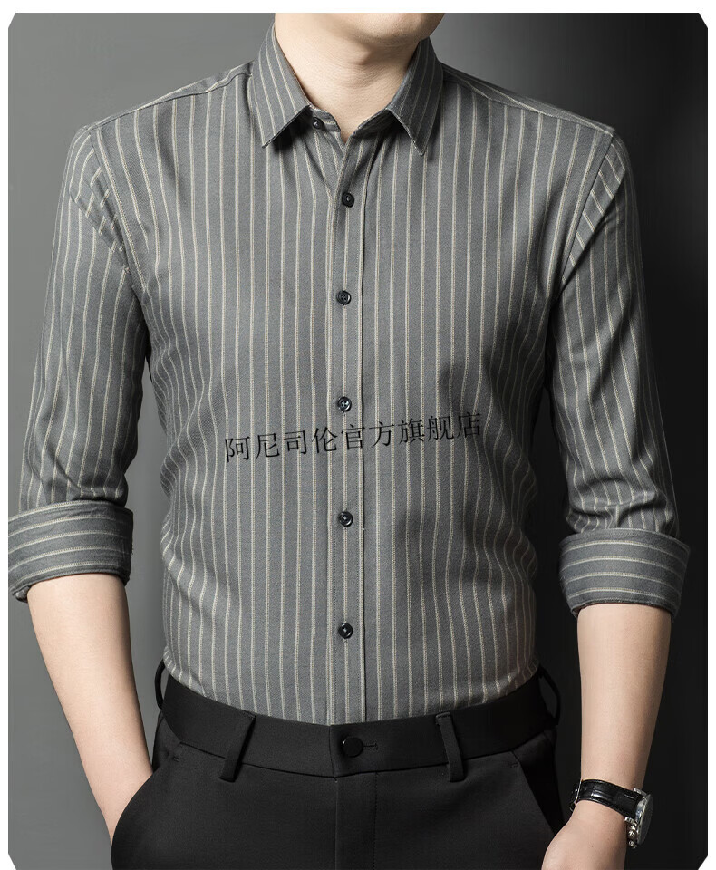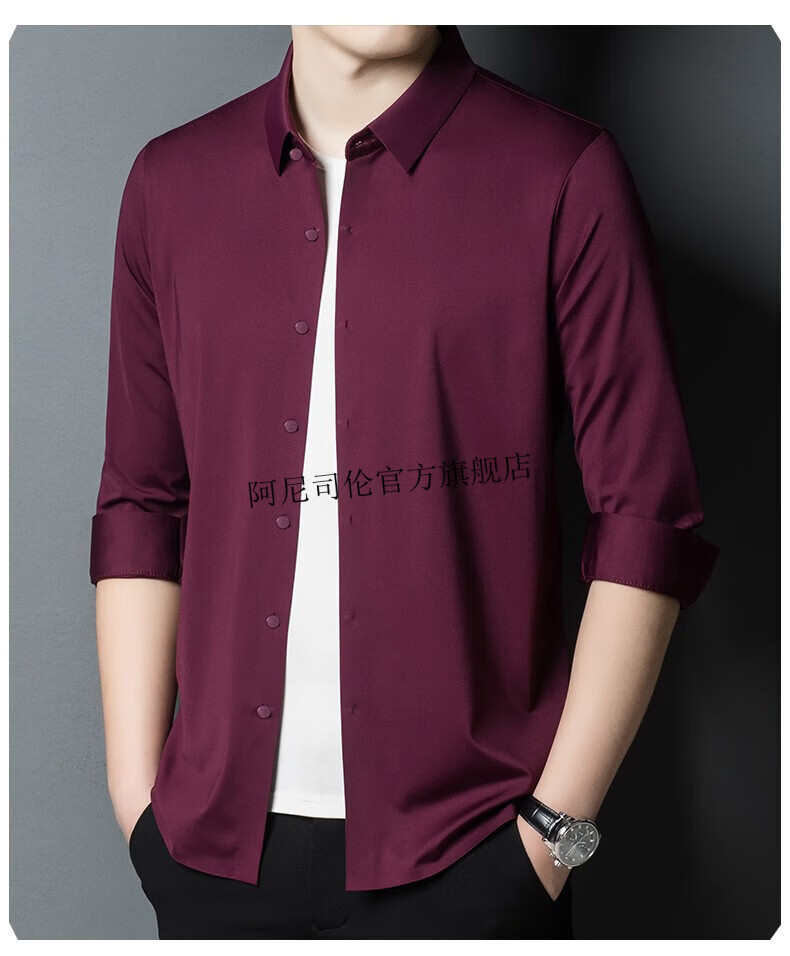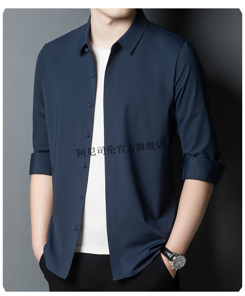 Anislen noble velvet long-sleeved shirt for men in winter thickened and warm solid color no ironing all-match business casual slim shirt for men 3021 upper cyan plus velvet warm style 2XL 180 size recommended 150-165 Jin Jin equals 0.5 kg