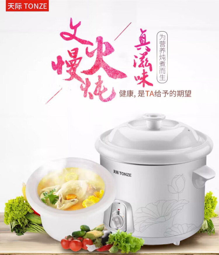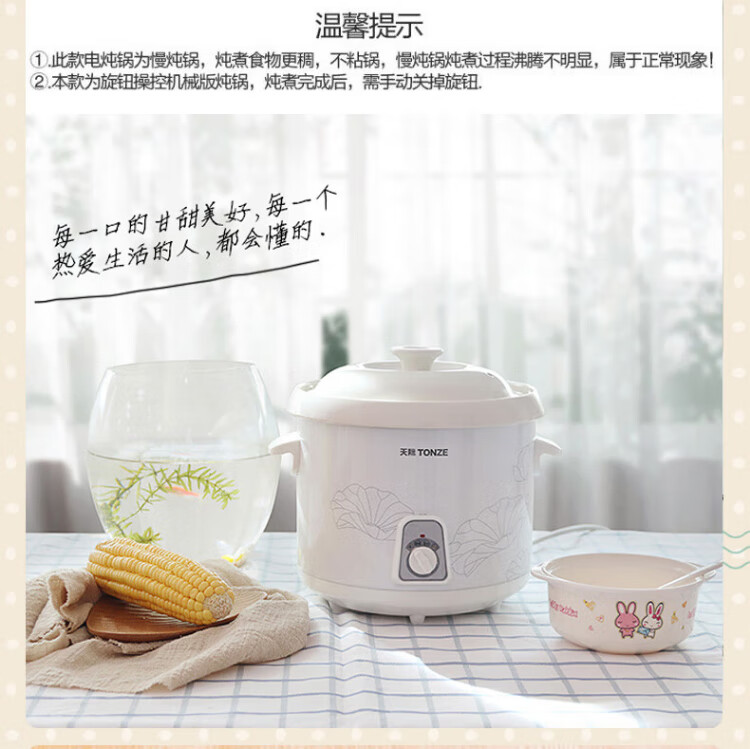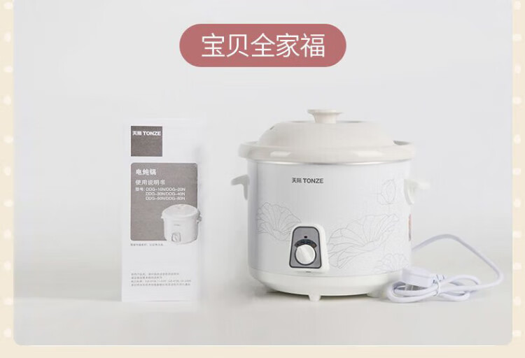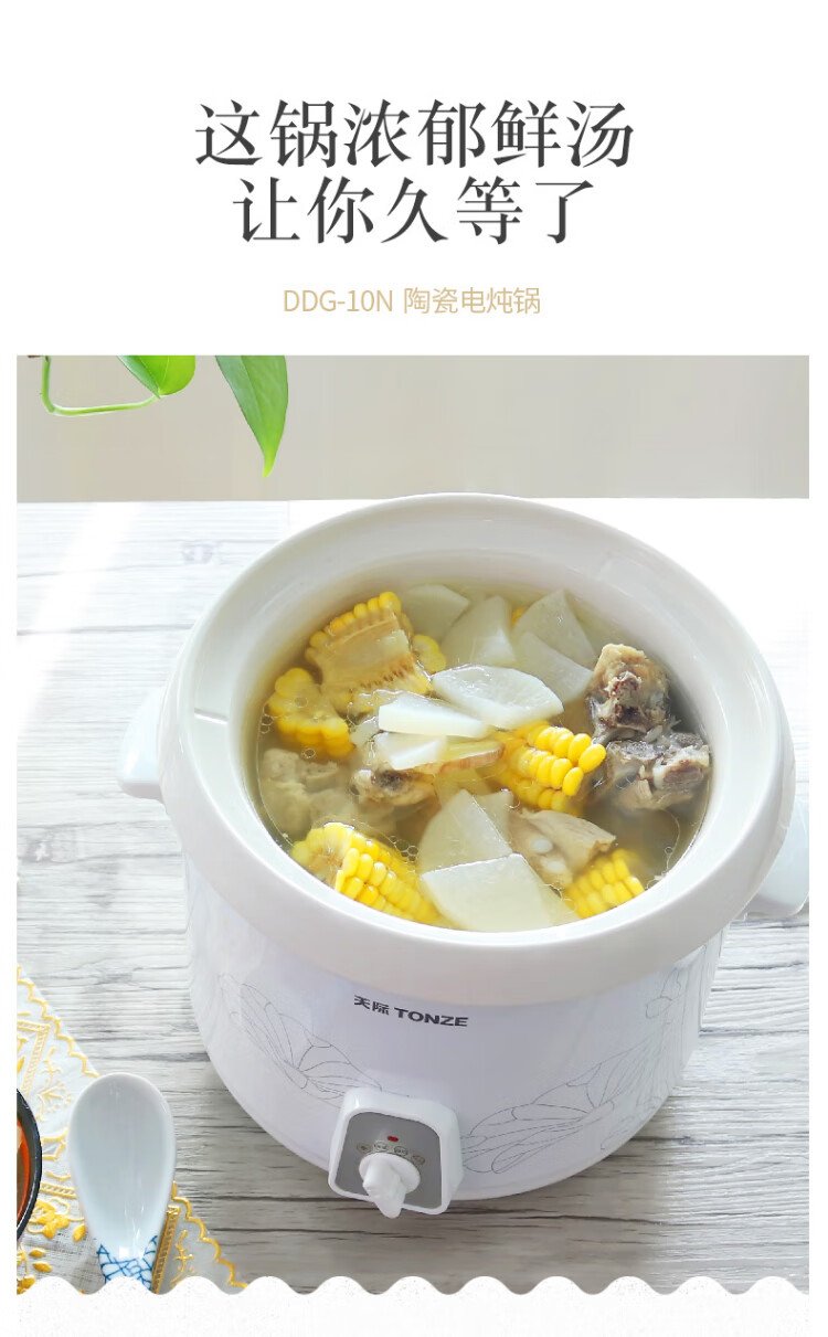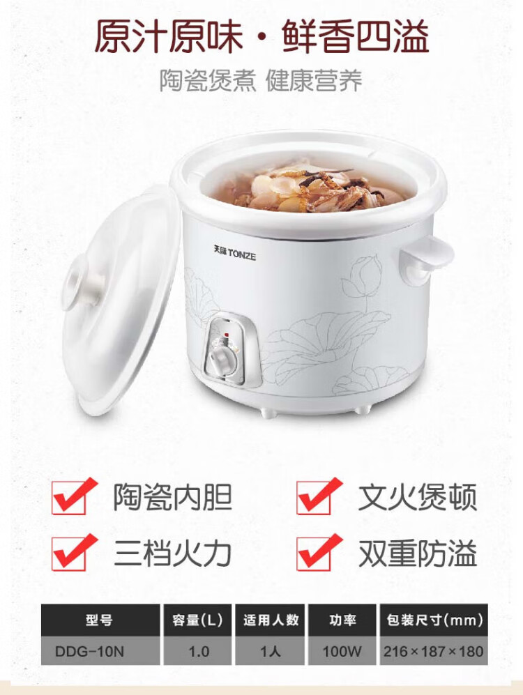 Tianji (TONZE) Tianji electric stew pot with ceramic inner pot, electric stew pot, porridge pot, soup pot, electric casserole 1-2-3-4-5, household smart 10N, suitable for 1 person 1L