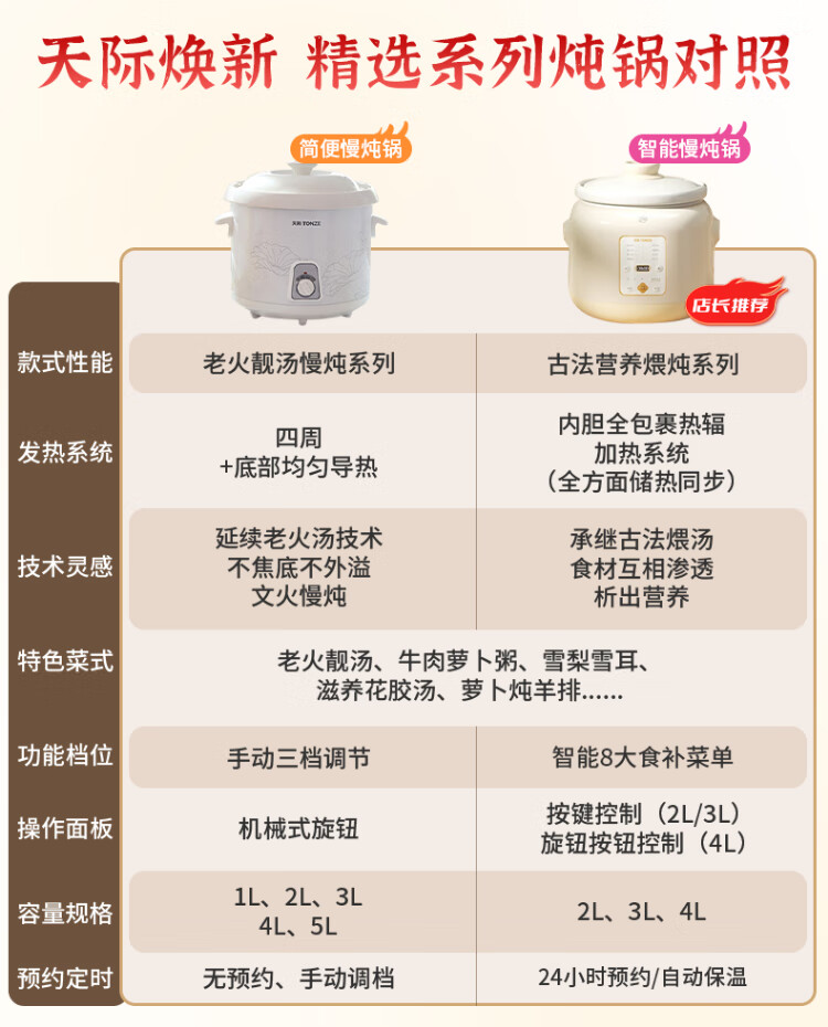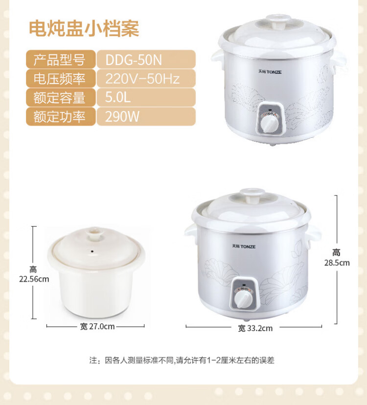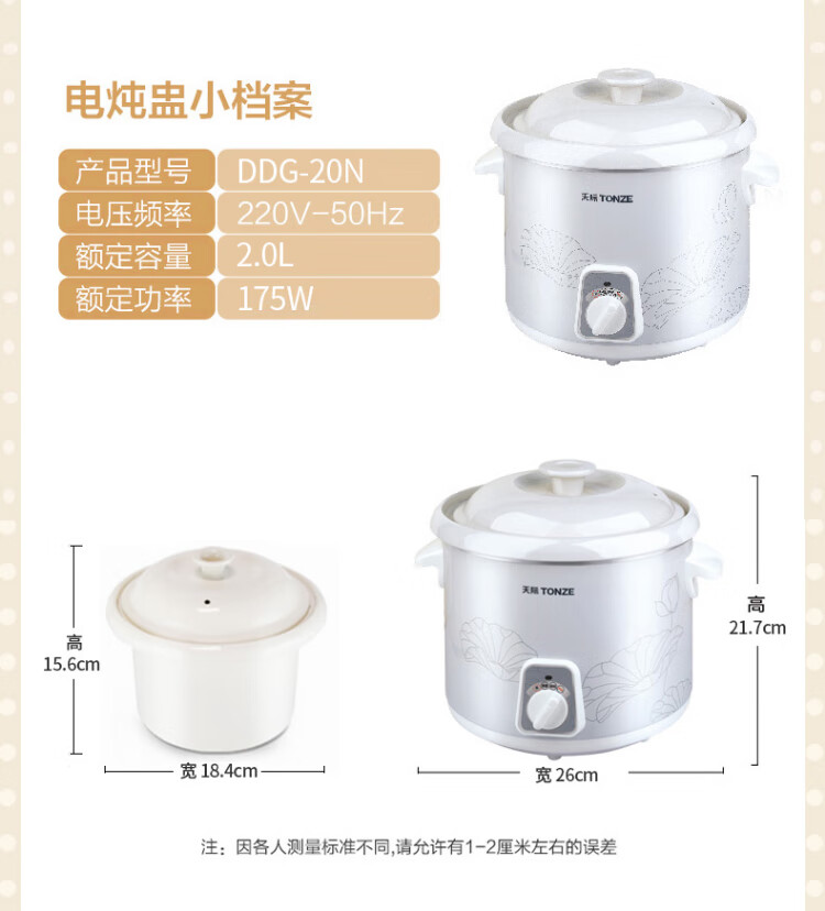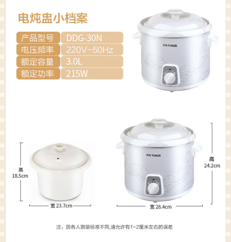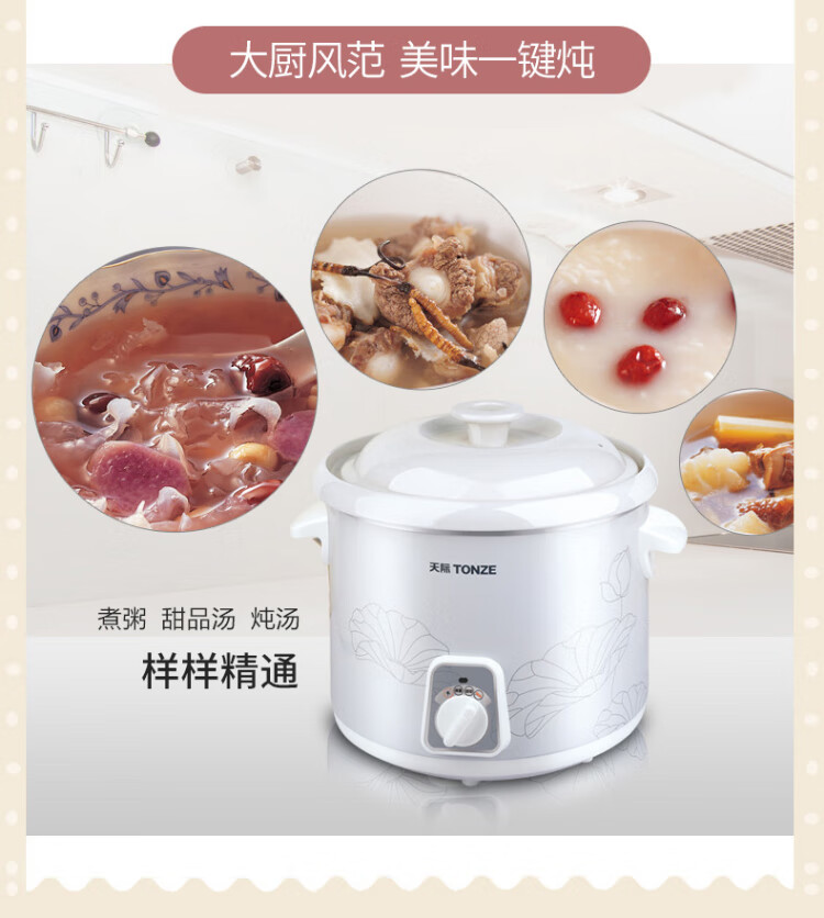 Tianji (TONZE) Tianji electric stew pot with ceramic inner pot, electric stew pot, porridge pot, soup pot, electric casserole 1-2-3-4-5, household smart 10N, suitable for 1 person 1L