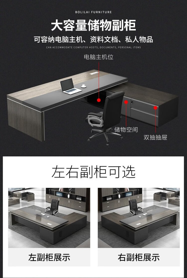 Gongxingtang Office Furniture Boss Desk Office Desk and Chair Combination Modern Simple Supervisor Desk Manager Desk President Desk Computer Desk 2.0 Meter Luxury Boss Desk + Chair + 6-Door Bookcase