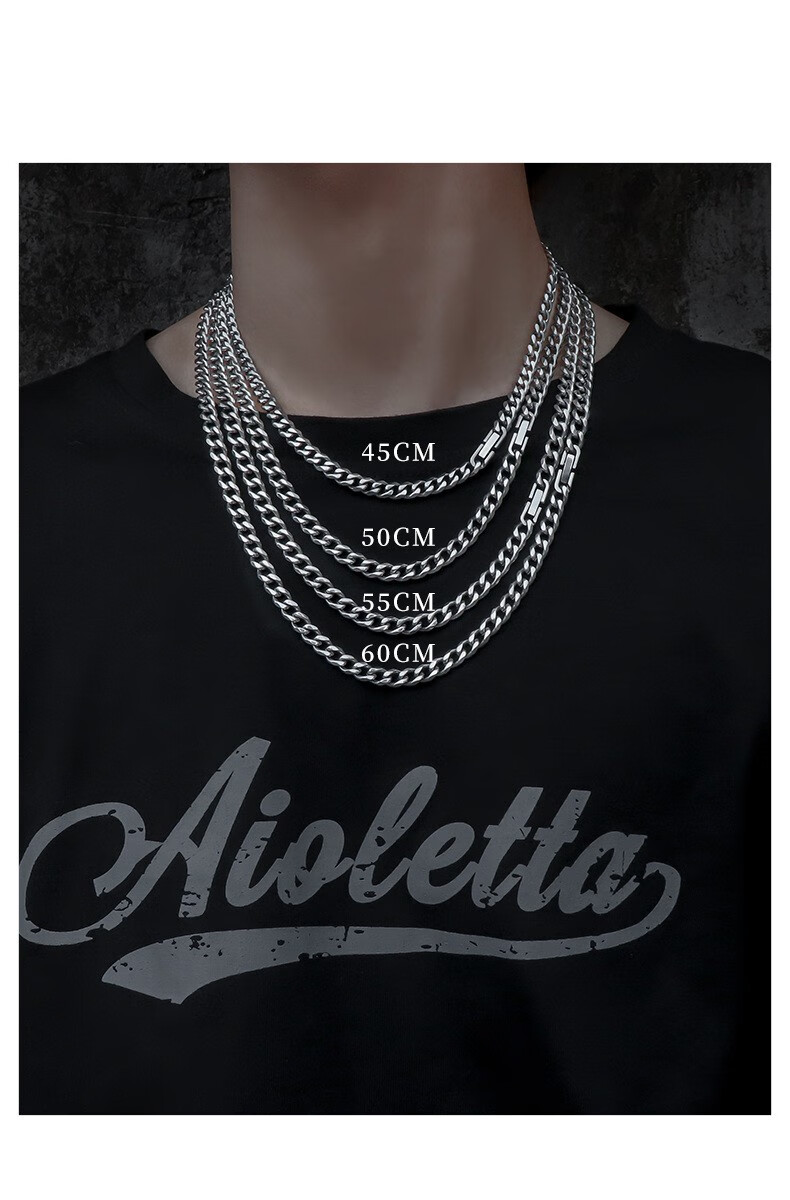 Ostantin Cuban necklace for men, high-end, handsome, trendy titanium steel clavicle chain, birthday and Valentine's Day gift for boyfriend and husband. Cuban necklace - about 6MM thick and 60CM long (approximately below the collarbone)