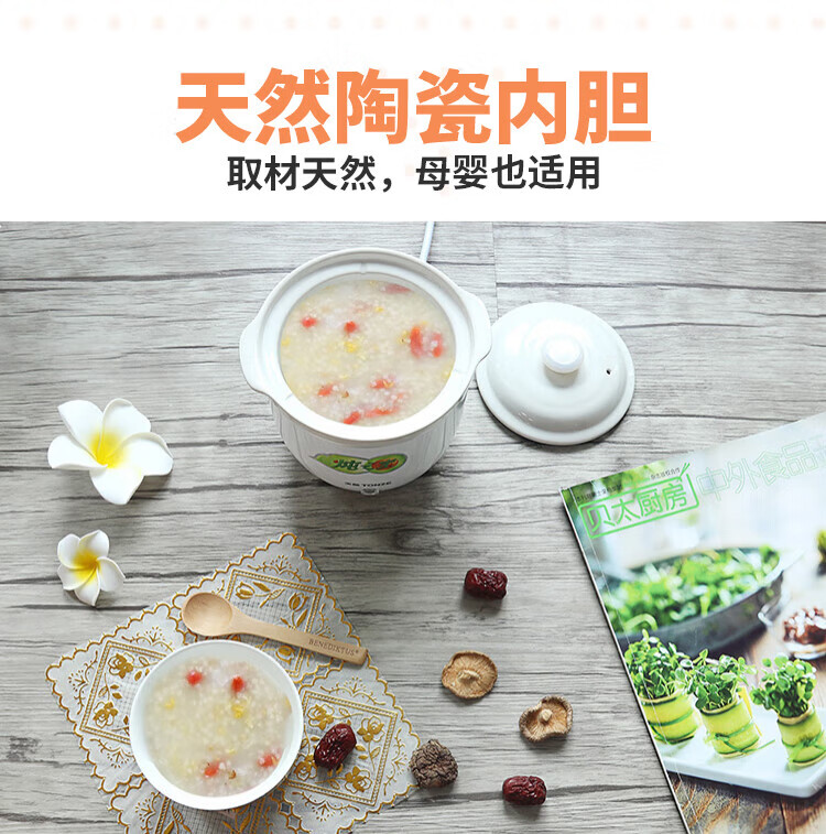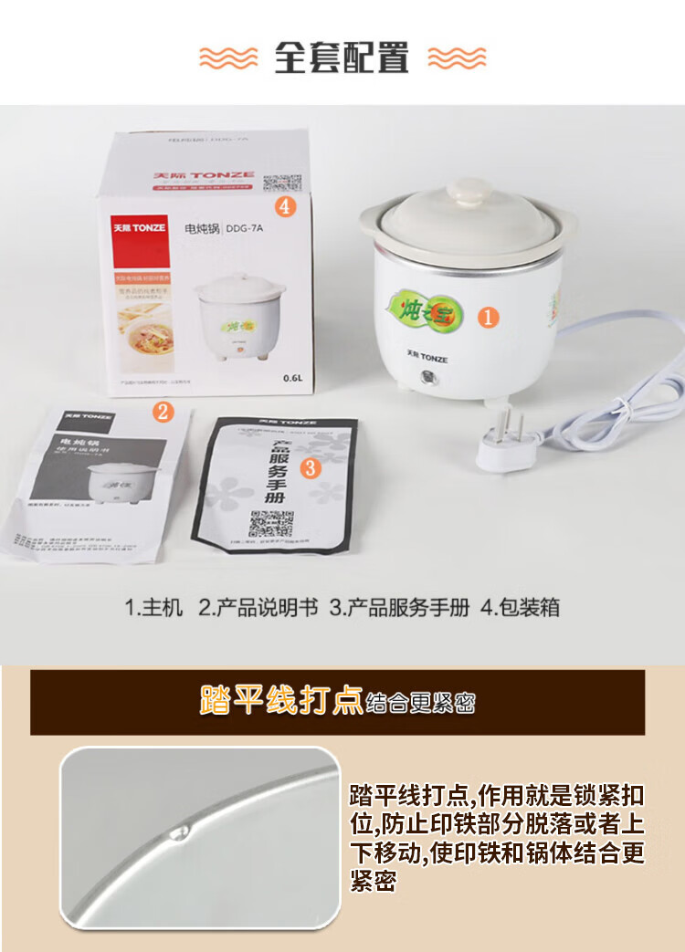 TONZE 1-person stew pot, mini electric stew pot, ceramic small porridge artifact, soup, dessert, white fungus stew pot, multi-functional one-person electric stew pot 7A, small stew pot 0.6L