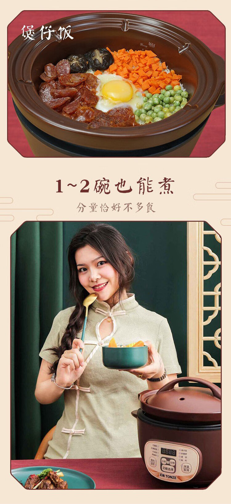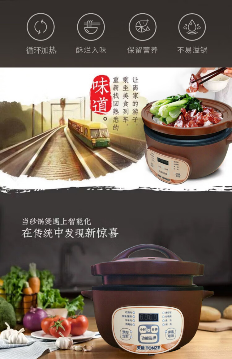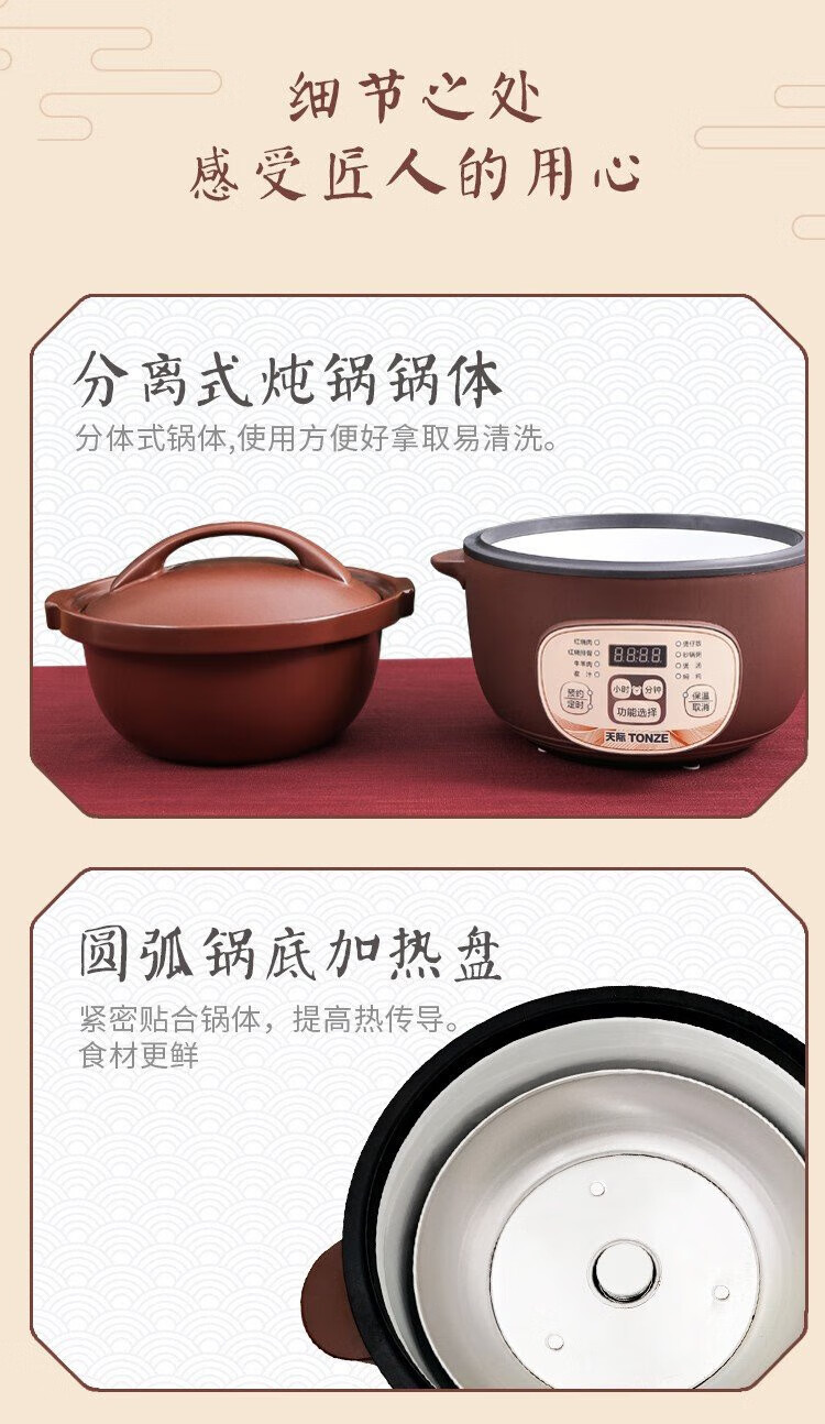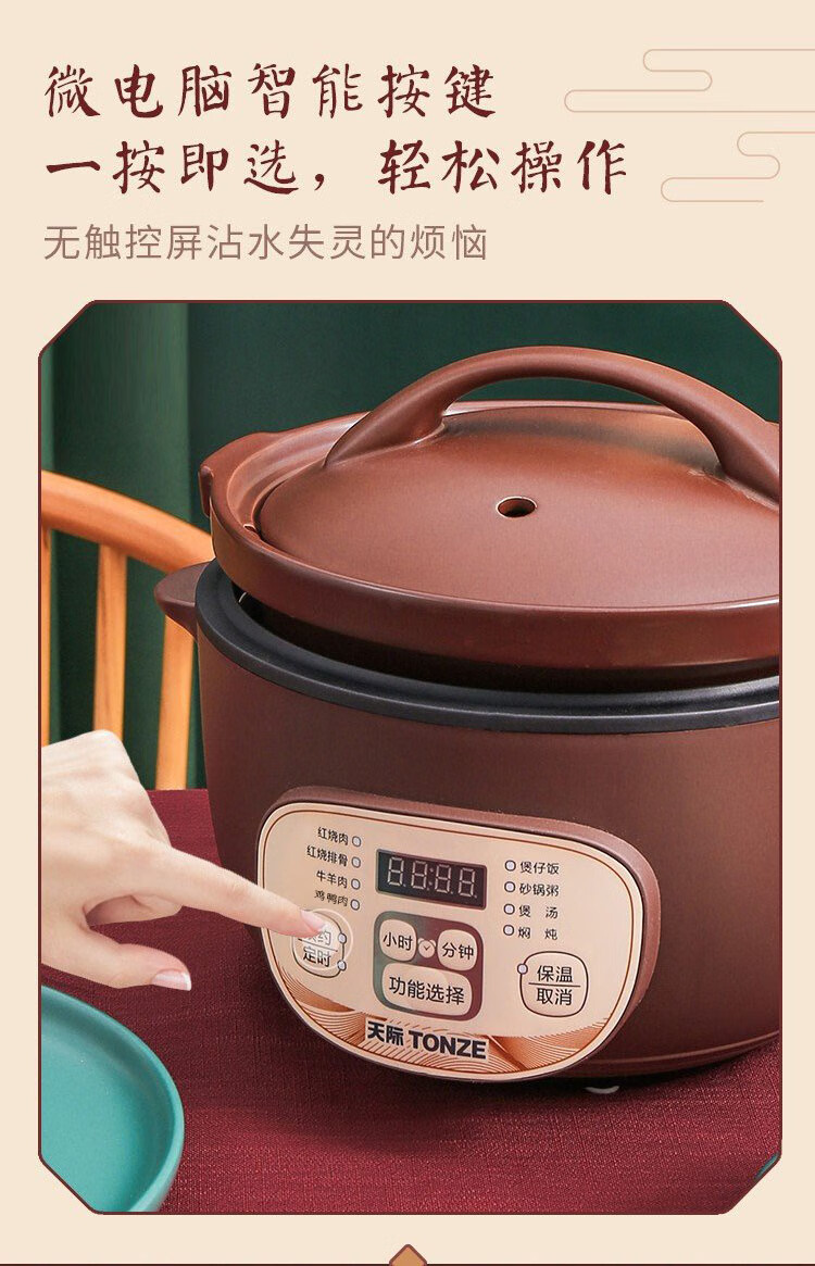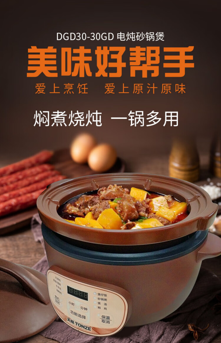 Tianji (TONZE) electric casserole, electric stew pot, porridge pot, plug-in household soup pot, fully automatic porridge pot, multi-functional ribs stew, braised chicken, clay pot rice, braised pork special pot 30GD 8 major functions 3L