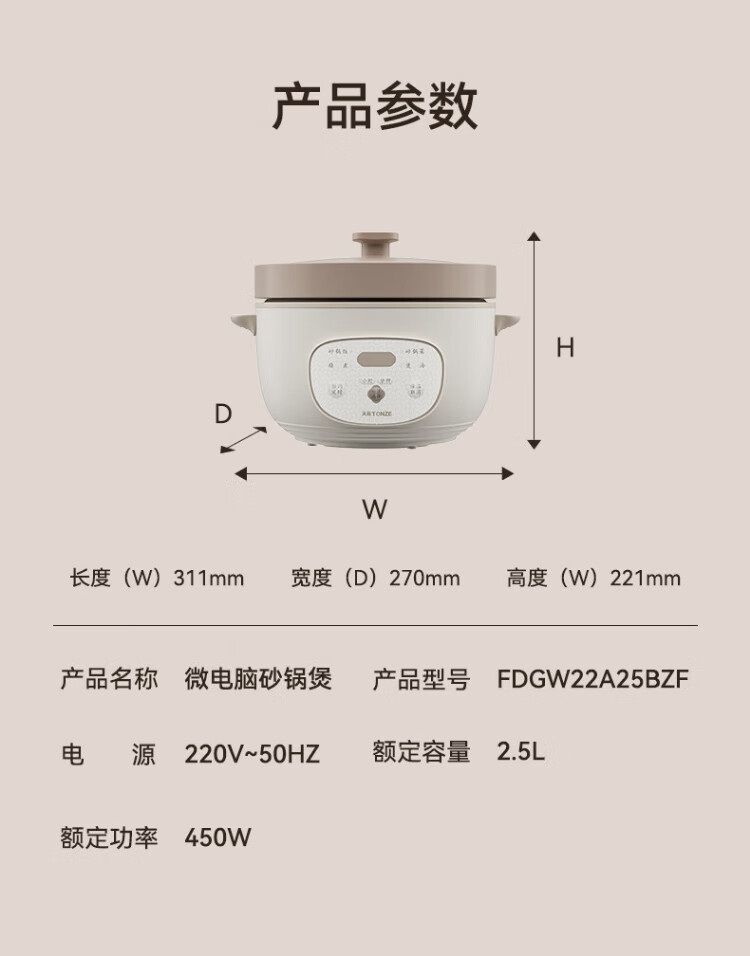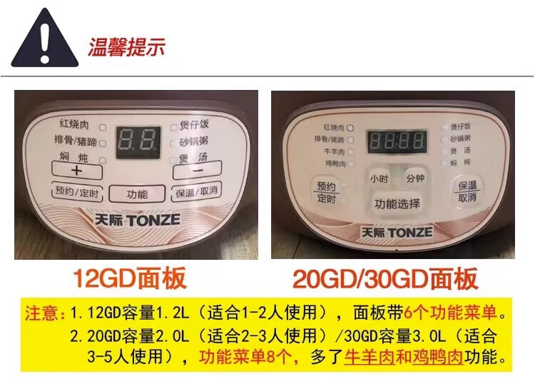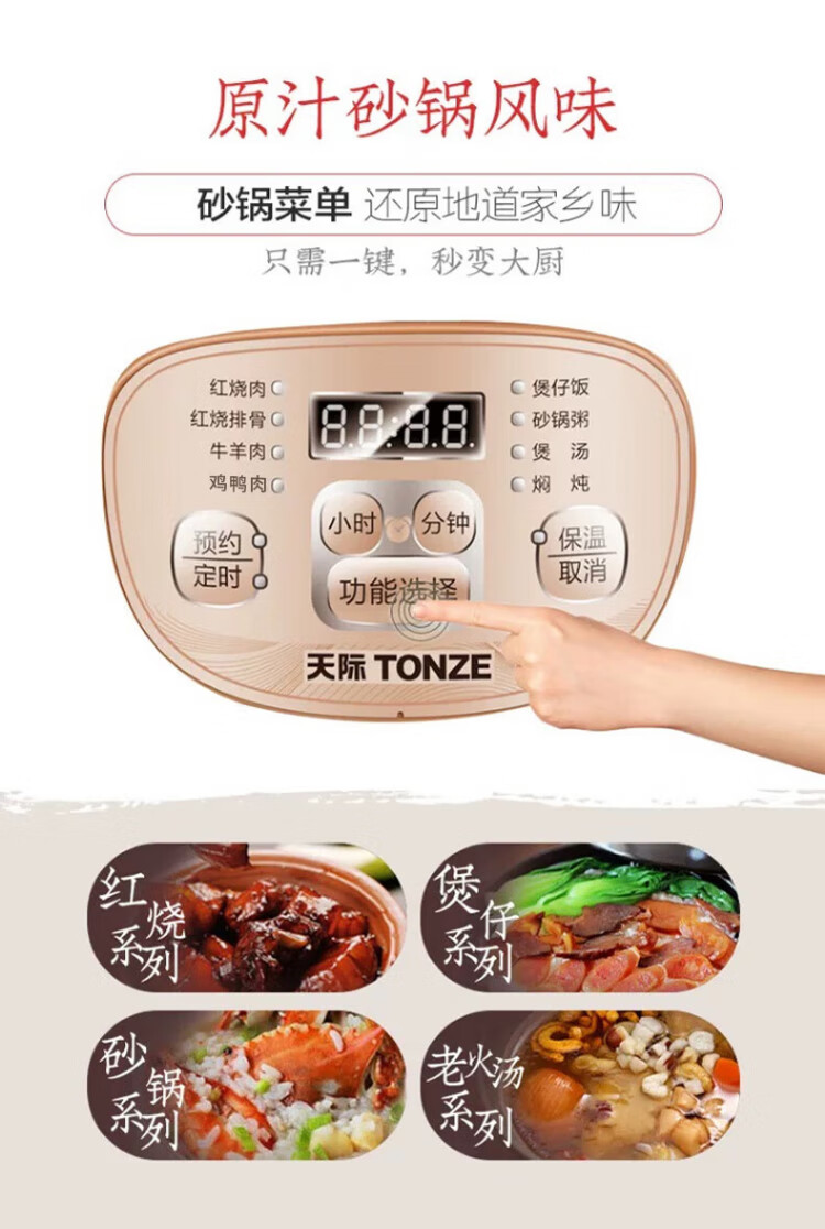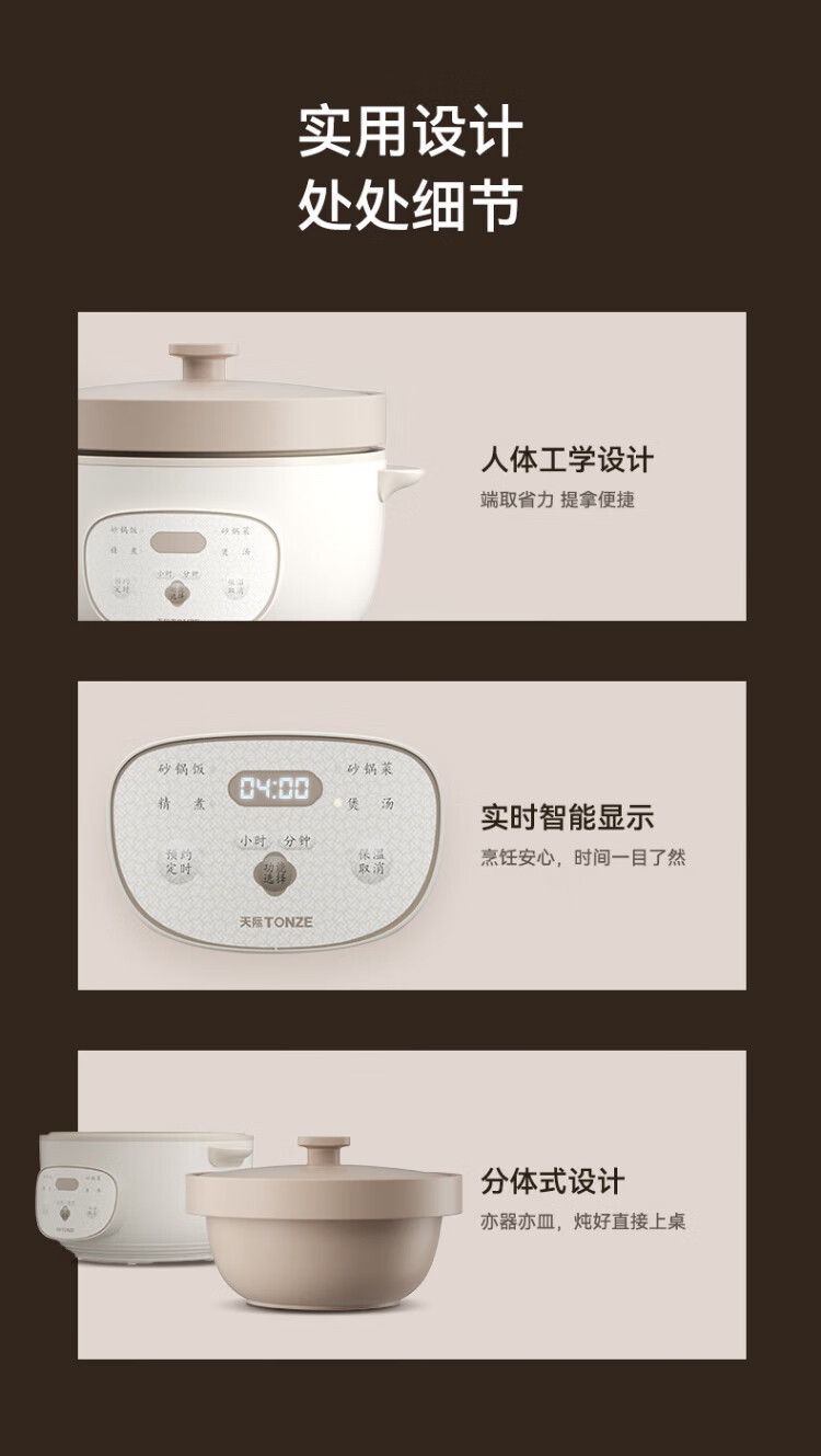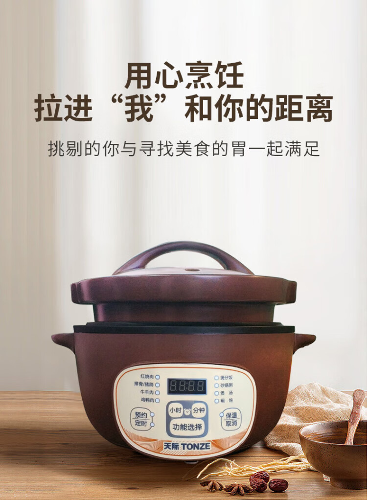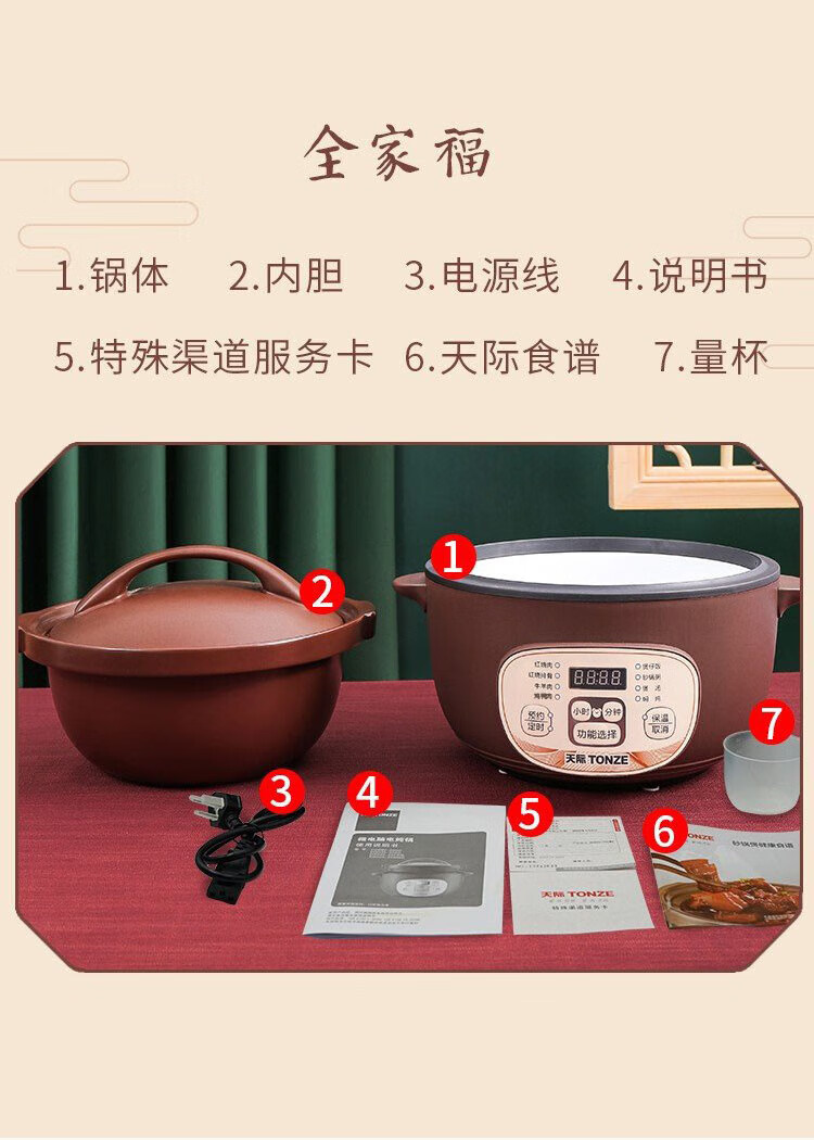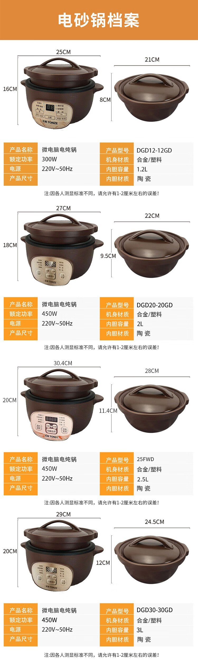 Tianji (TONZE) electric casserole, electric stew pot, porridge pot, plug-in household soup pot, fully automatic porridge pot, multi-functional ribs stew, braised chicken, clay pot rice, braised pork special pot 30GD 8 major functions 3L