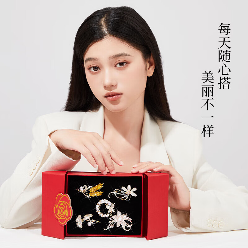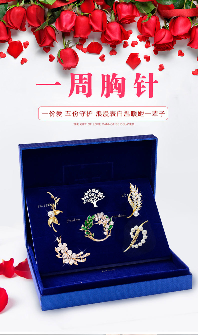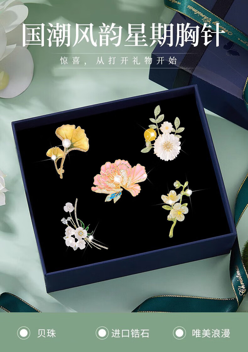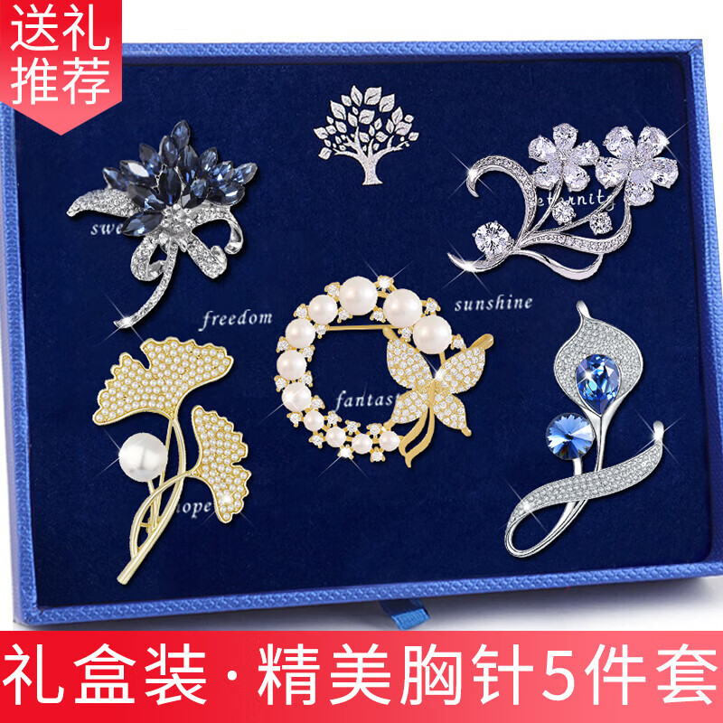 Ancient brooch, high-end women's exquisite niche corsage gift box, light luxury and elegant pin, silk scarf buckle, birthday gift for women, practical, high-end fashion brooch, five-piece set, exquisite gift box