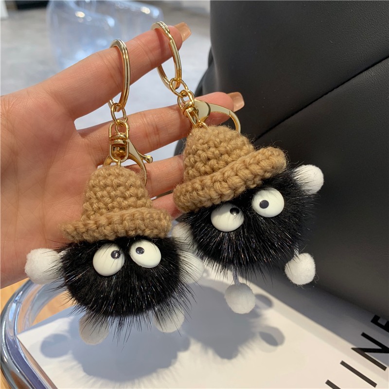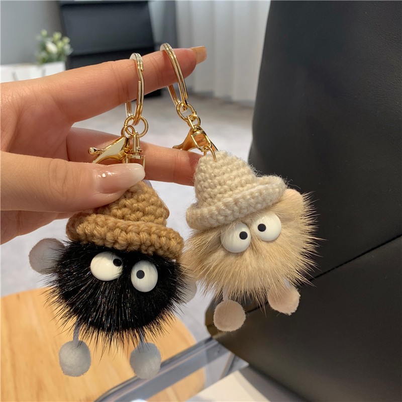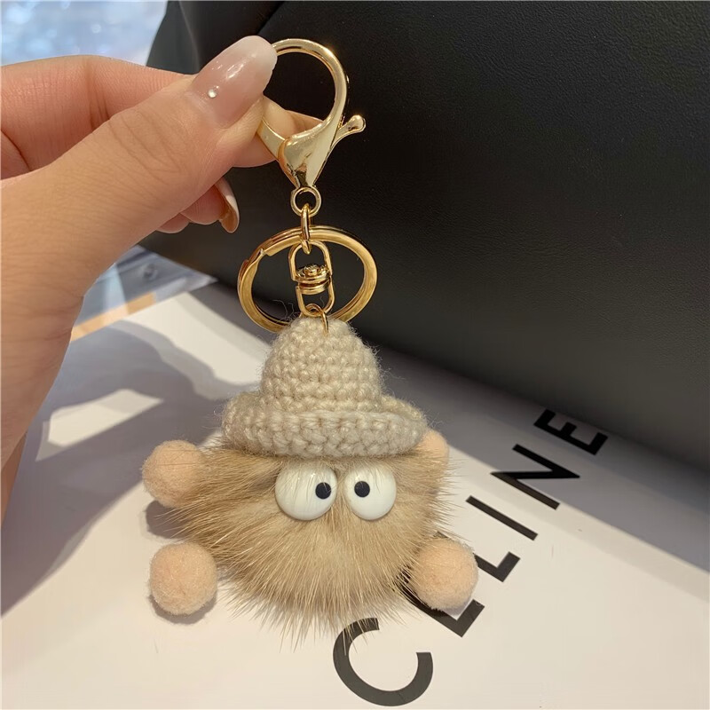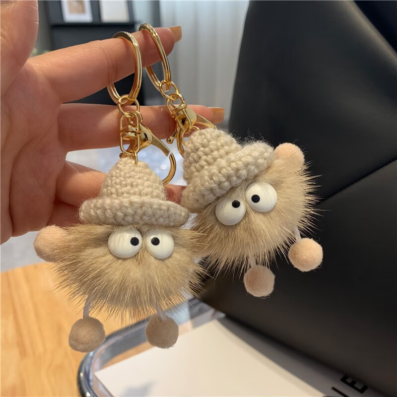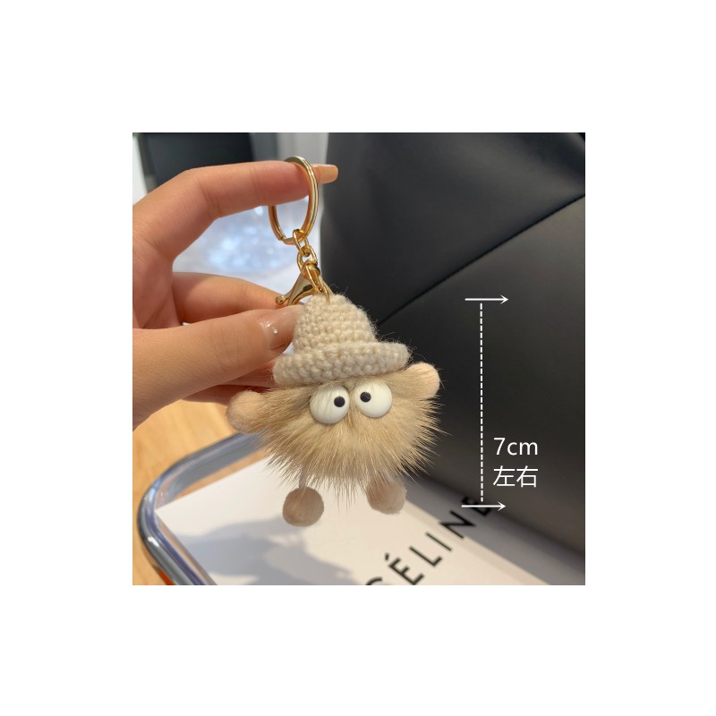 Douchi Selected Cute Plush Little Briquettes Keychain Mink Furball Doll Children's Keychain School Bag Pendant Bag Cartoon Khaki Color