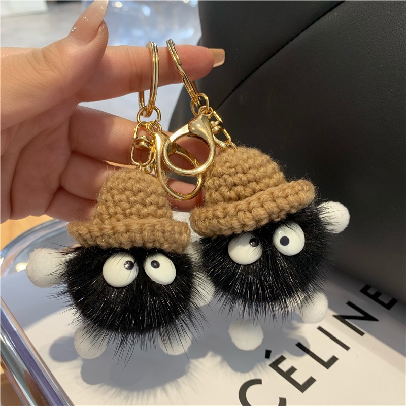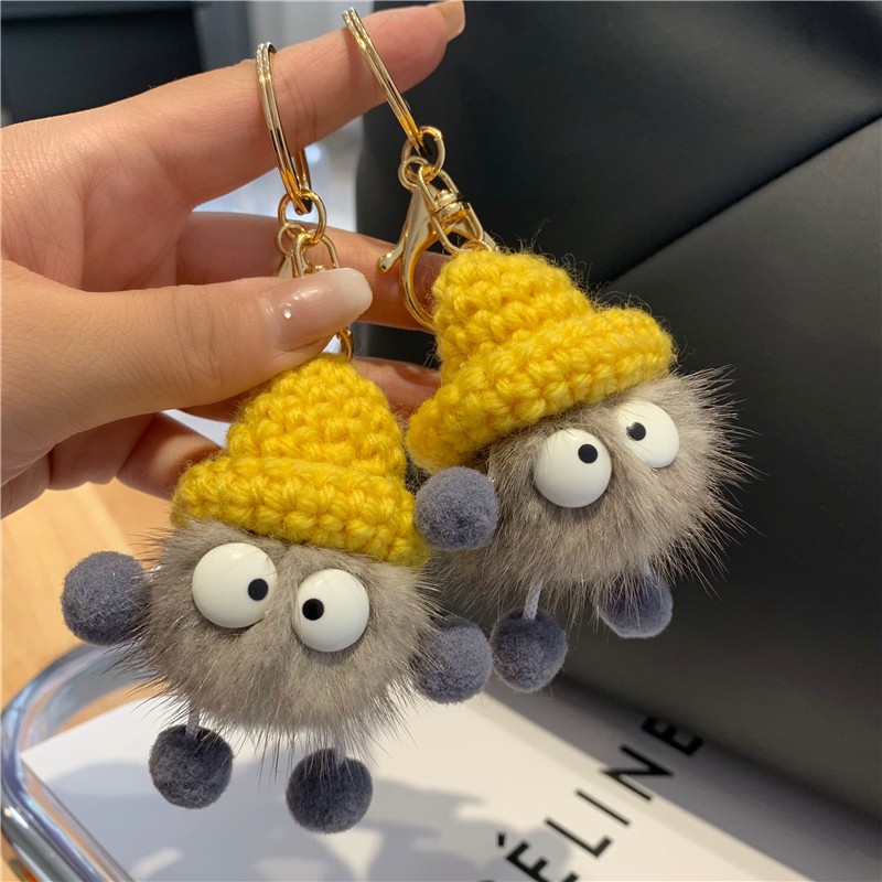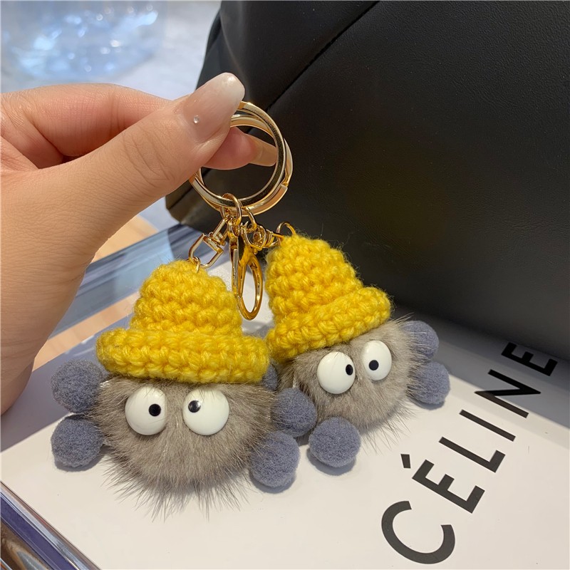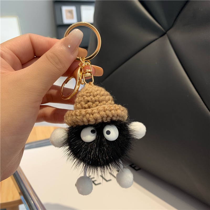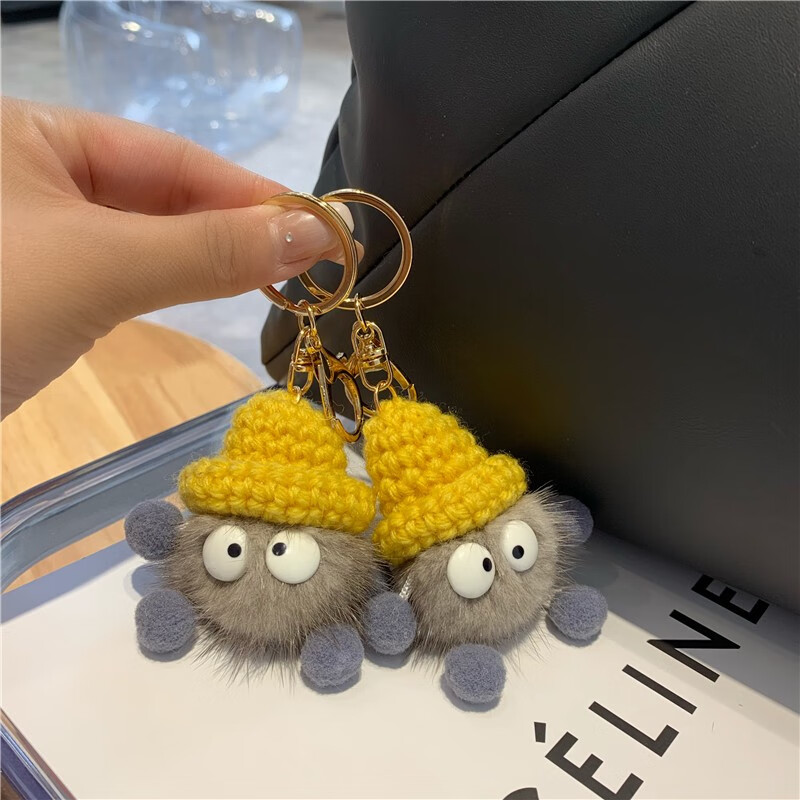 Douchi Selected Cute Plush Little Briquettes Keychain Mink Furball Doll Children's Keychain School Bag Pendant Bag Cartoon Khaki Color