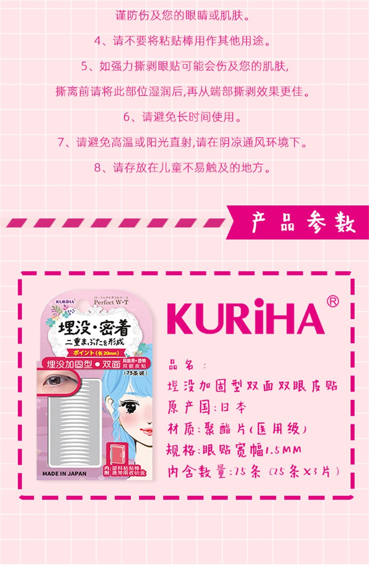 KURIHA double-sided double eyelid patch imported from Japan, double-sided transparent color, local use reinforced type (75 pieces) PWB-03