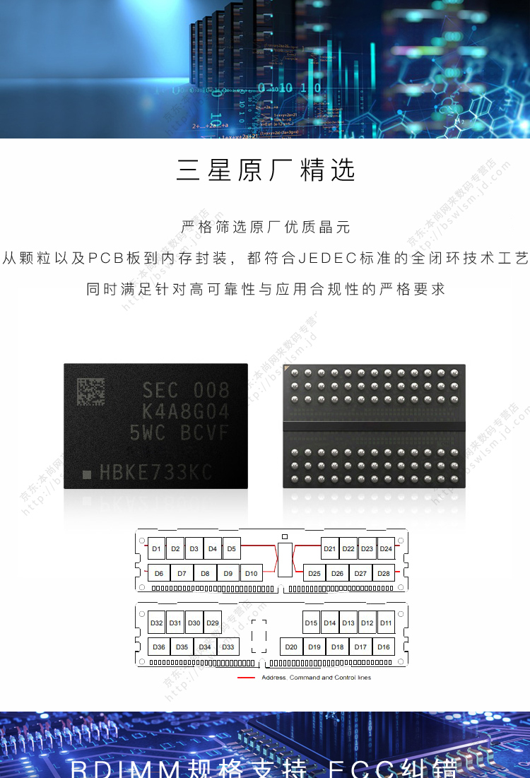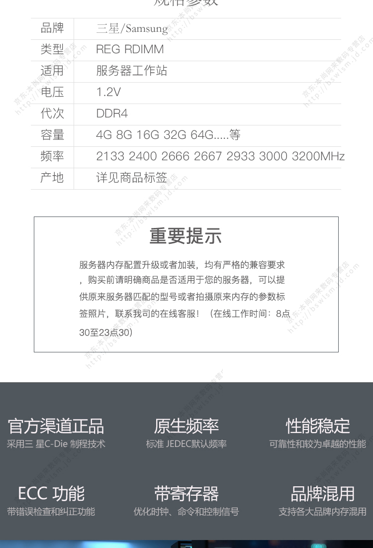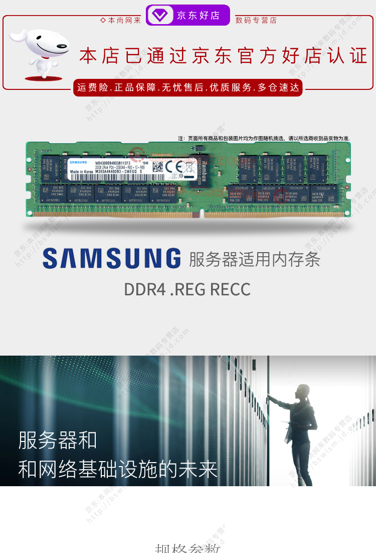 Samsung (SAMSUNG) original DDR4 PC4 fourth generation server workstation with register REG RDIMM RECC server memory bar, suitable for Lenovo Asus, Dell and other servers RECC DDR4 2666 2R 4 16GB 1 single bar