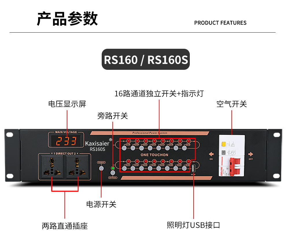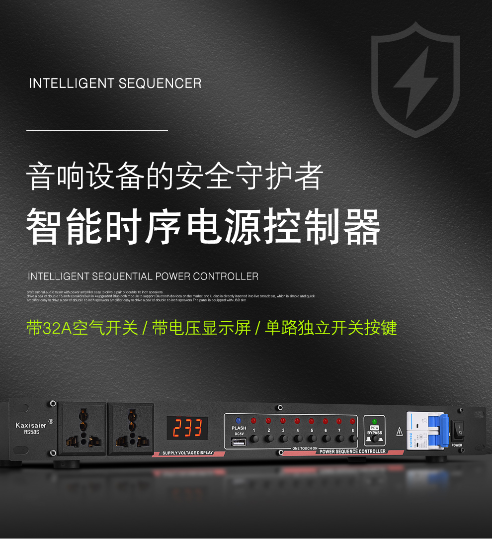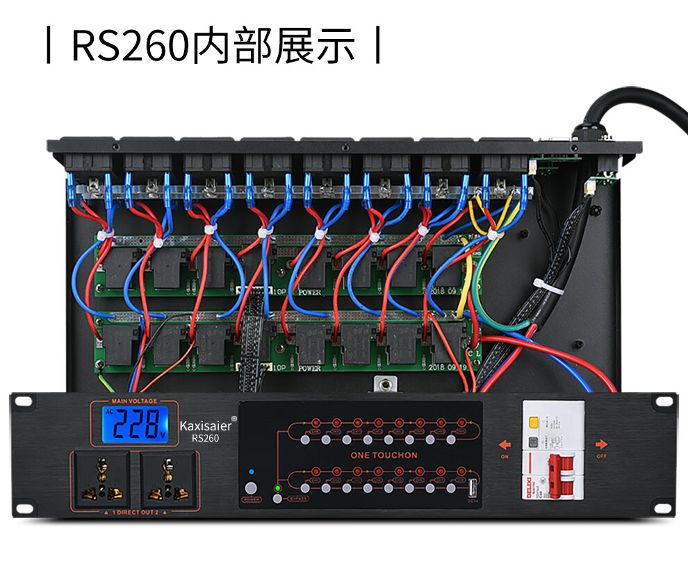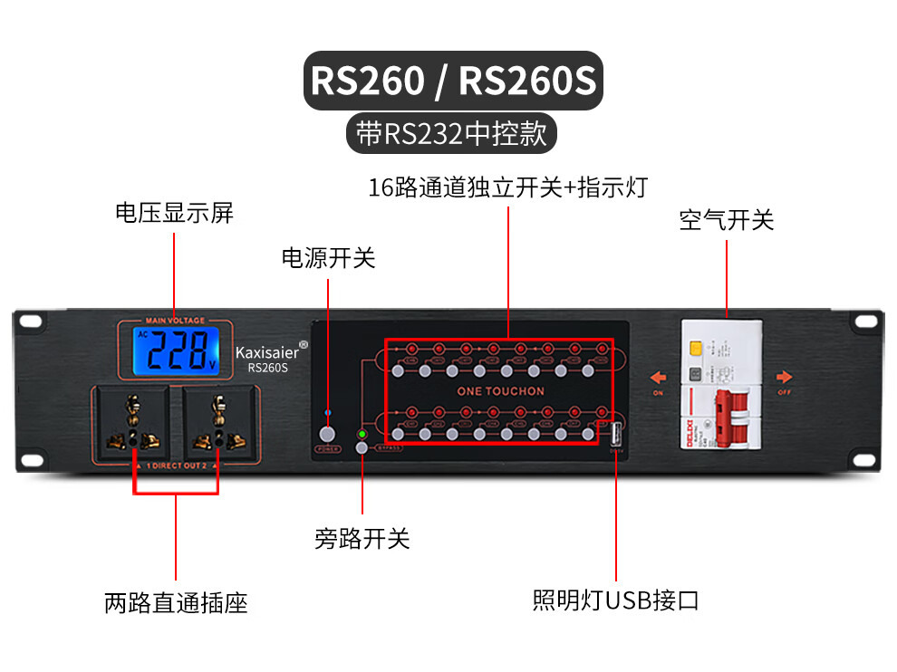 KAXISAIER RS series professional 8-channel 10-channel 16-channel power sequencer with voltage central control RS232 control display stage performance conference engineering power sequencer RS58S with filter 10 channels with independent control + circuit breaker