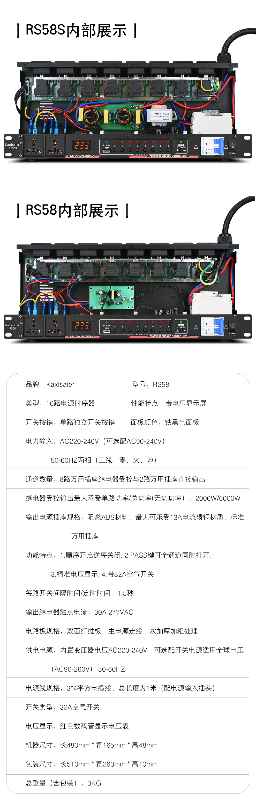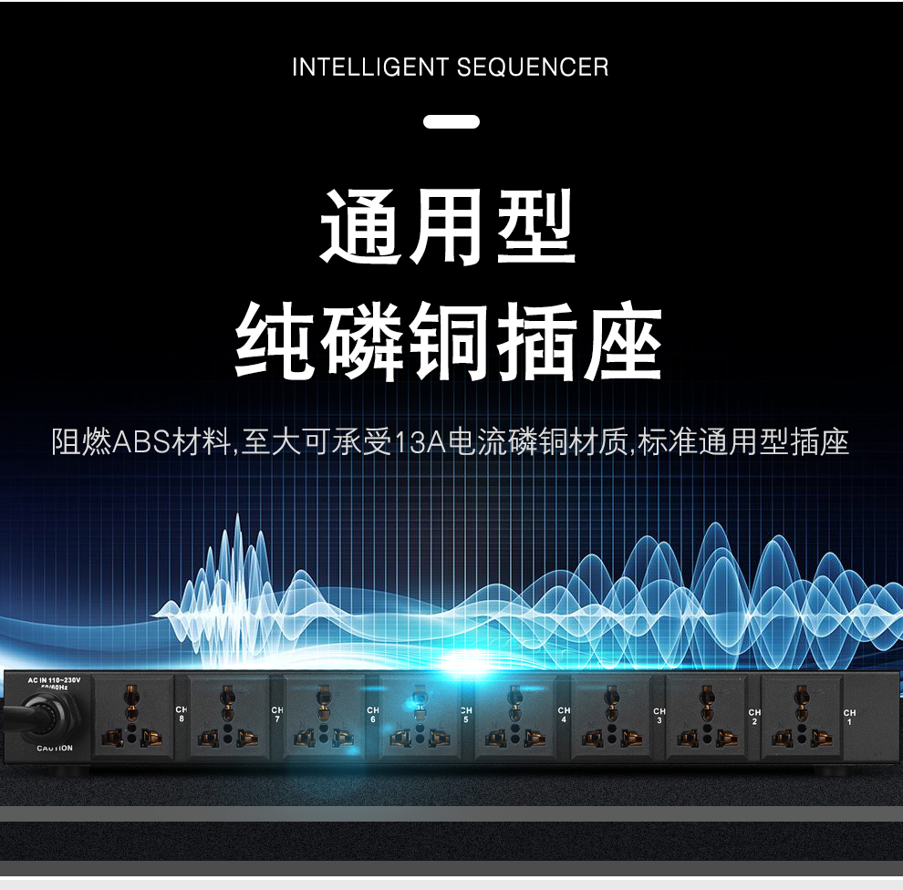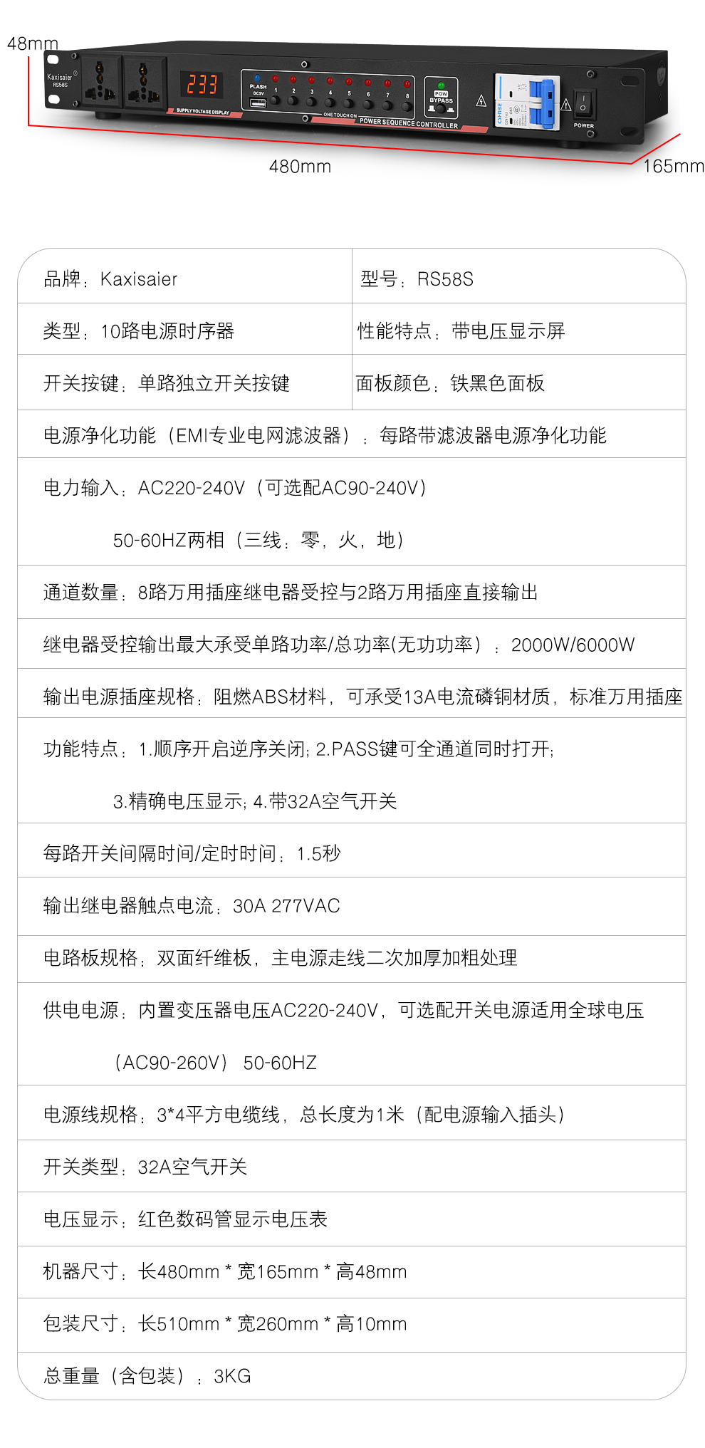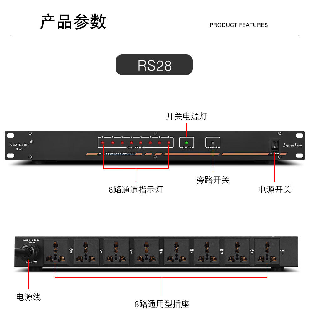 KAXISAIER RS series professional 8-channel 10-channel 16-channel power sequencer with voltage central control RS232 control display stage performance conference engineering power sequencer RS58S with filter 10 channels with independent control + circuit breaker