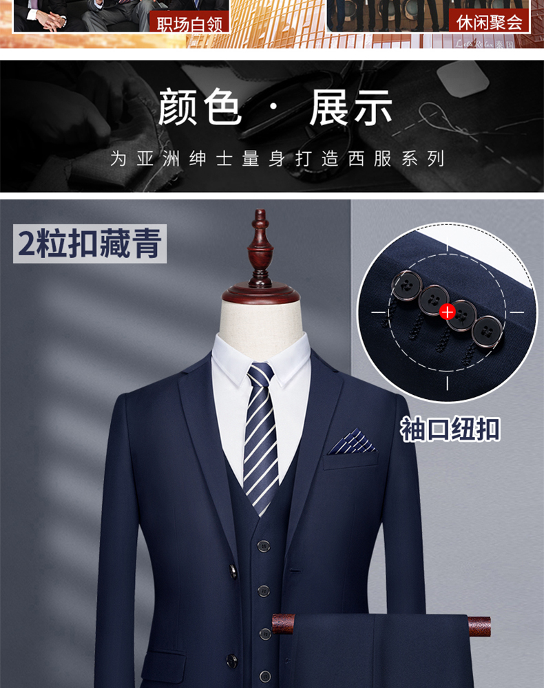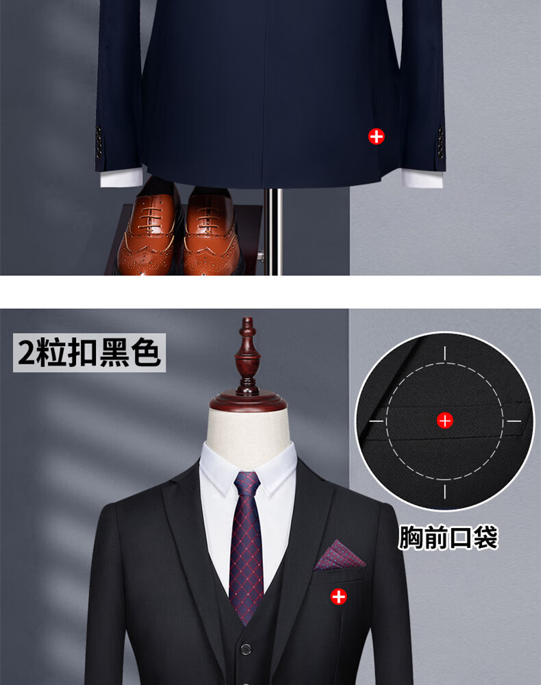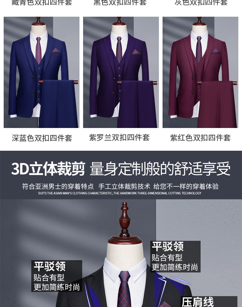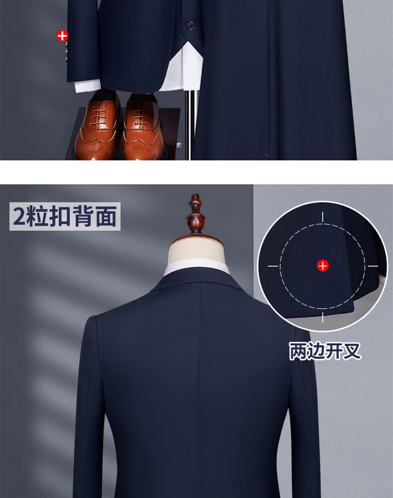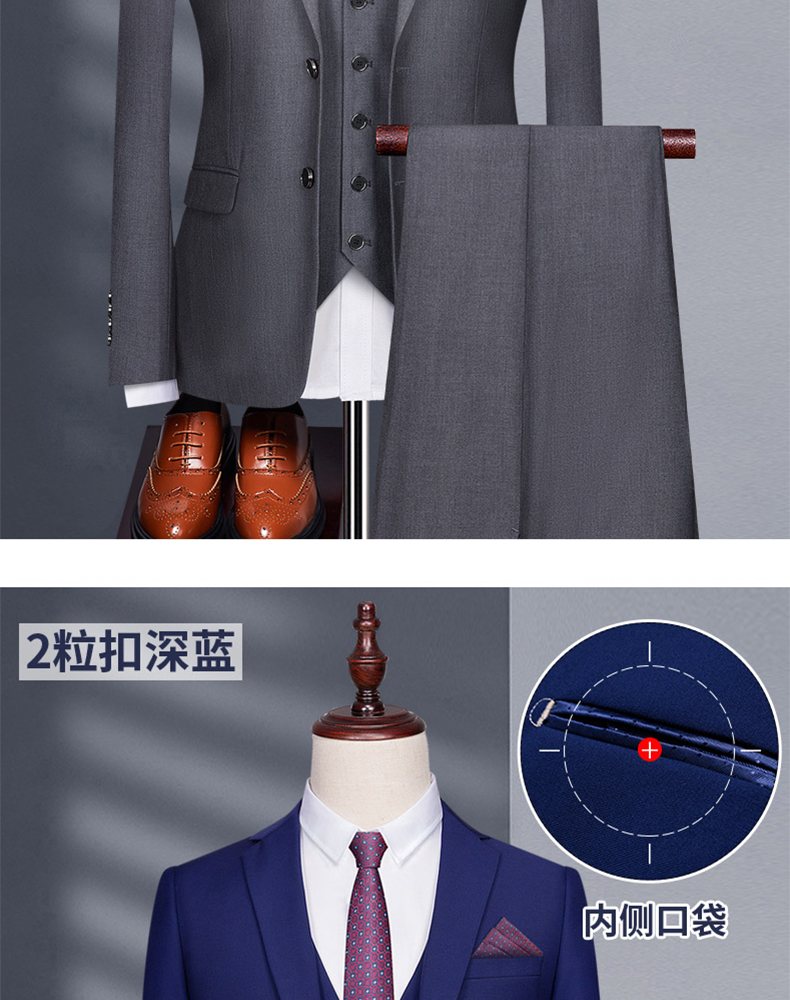 ROMON high-end customized suit suit, men's business suit, male professional formal suit, groom's wedding dress, groomsmen's three-piece suit, two-button navy suit + shirt + pants, 2XL size (plus 8 gifts)