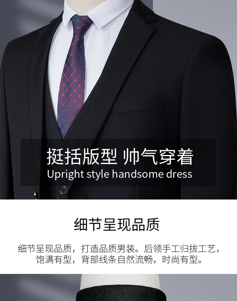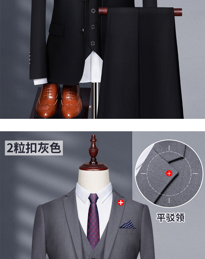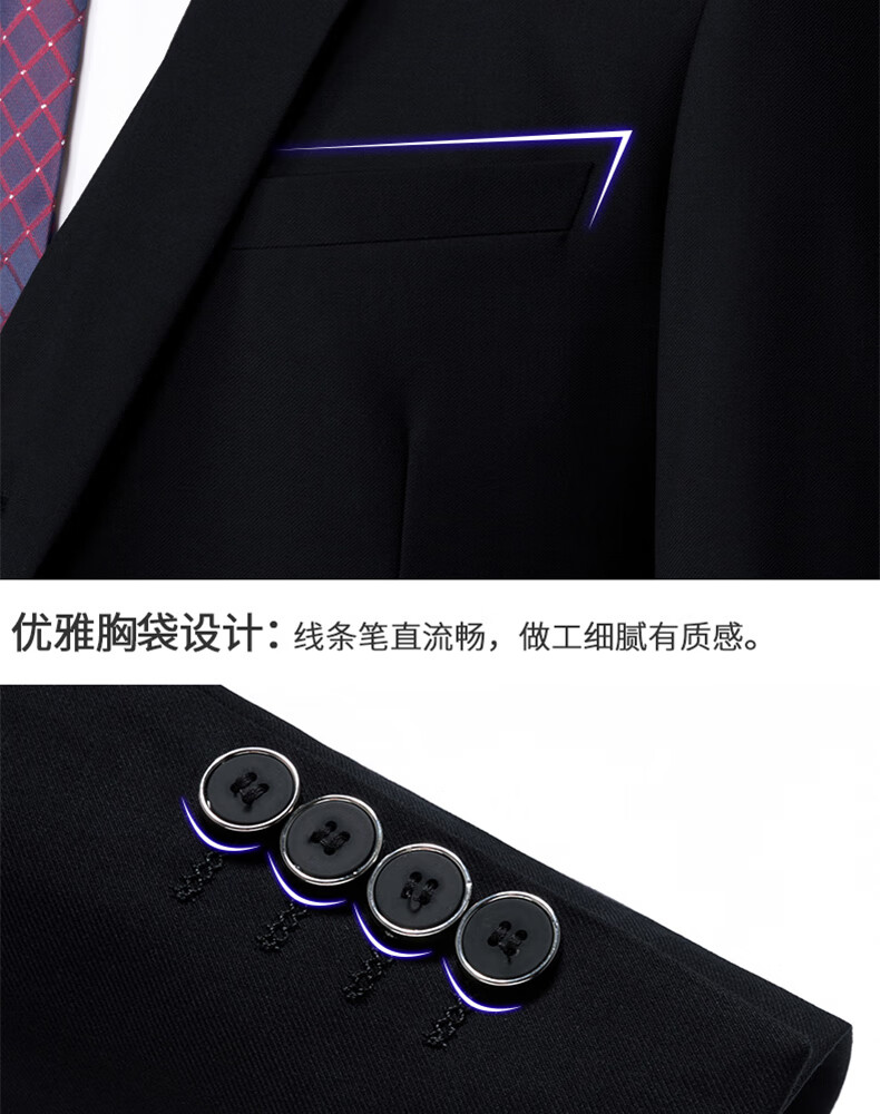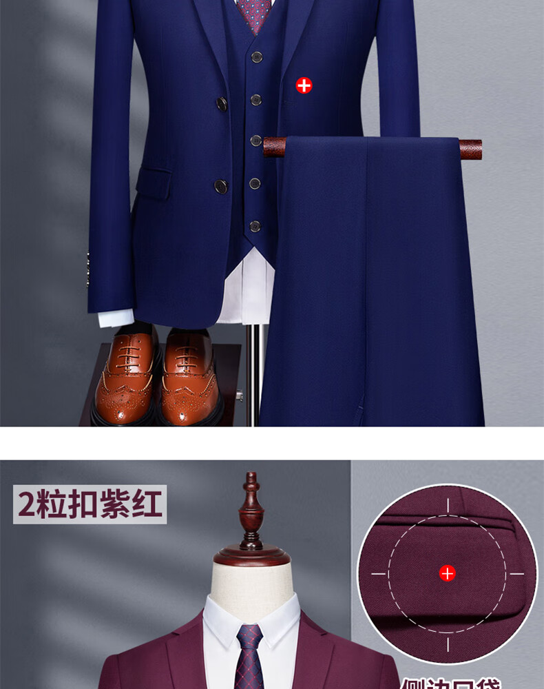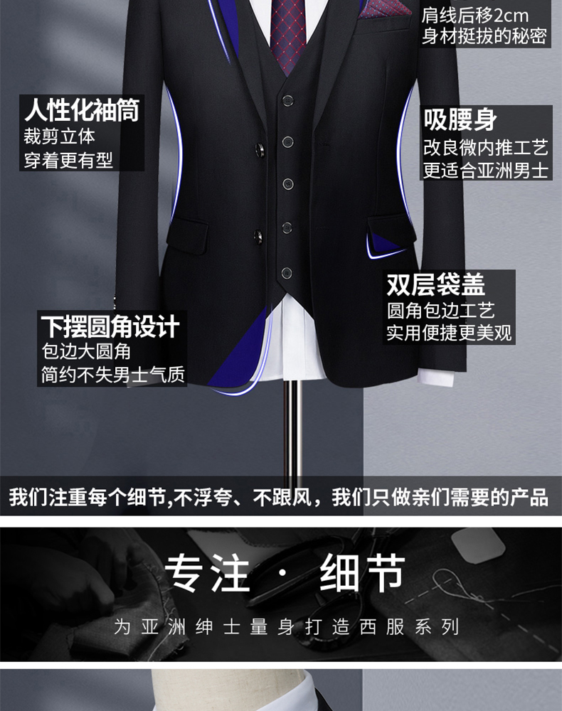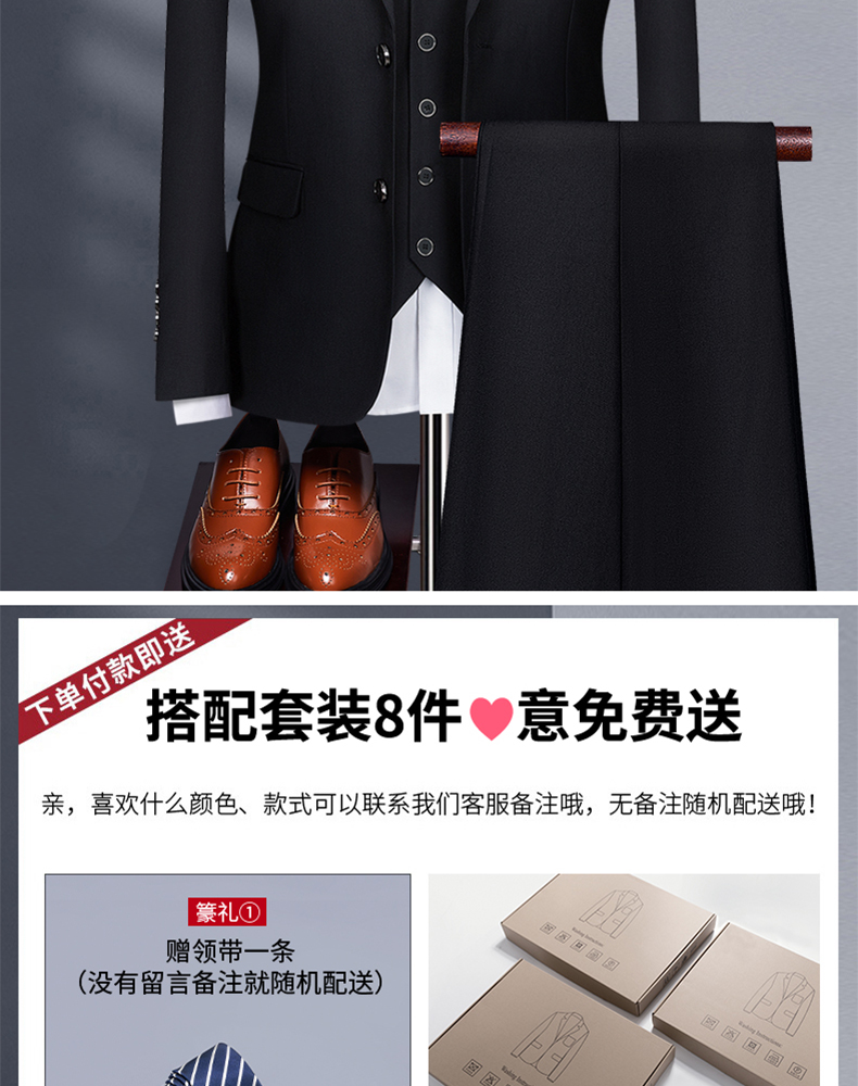ROMON high-end customized suit suit, men's business suit, male professional formal suit, groom's wedding dress, groomsmen's three-piece suit, two-button navy suit + shirt + pants, 2XL size (plus 8 gifts)