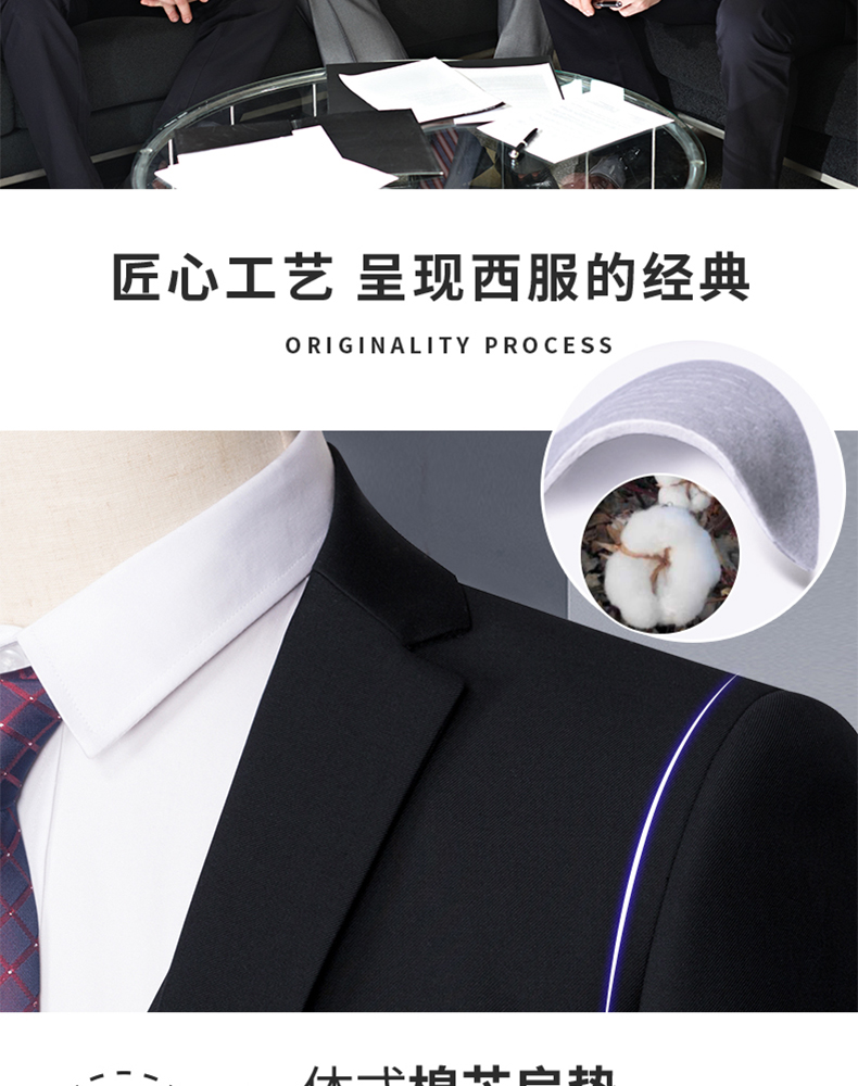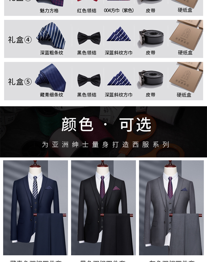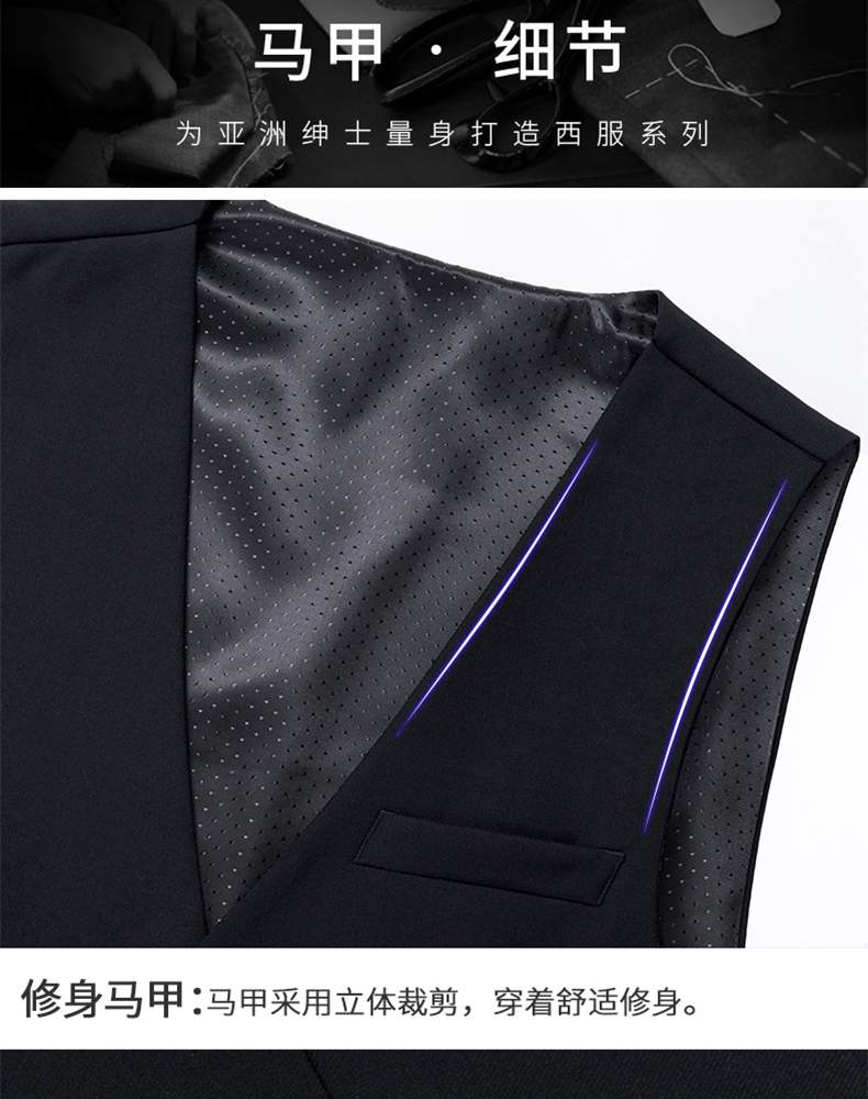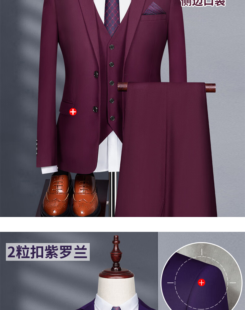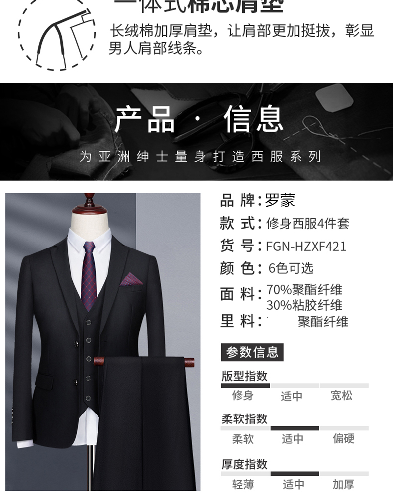 ROMON high-end customized suit suit, men's business suit, male professional formal suit, groom's wedding dress, groomsmen's three-piece suit, two-button navy suit + shirt + pants, 2XL size (plus 8 gifts)