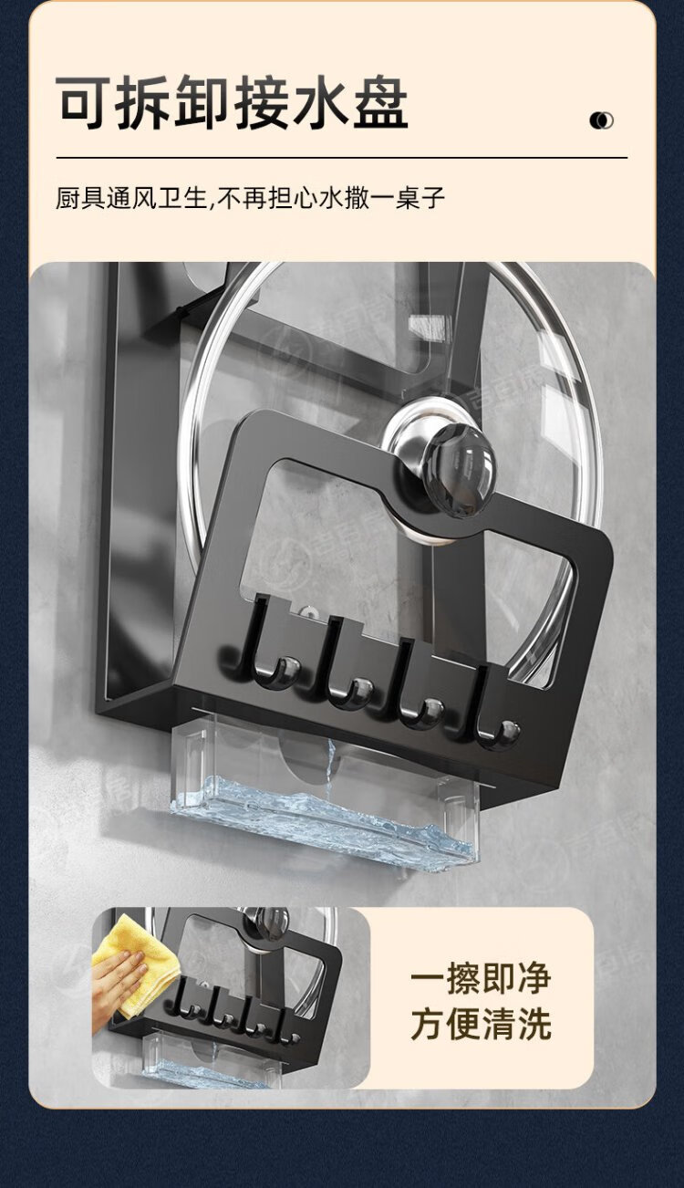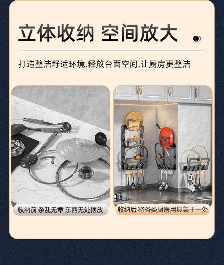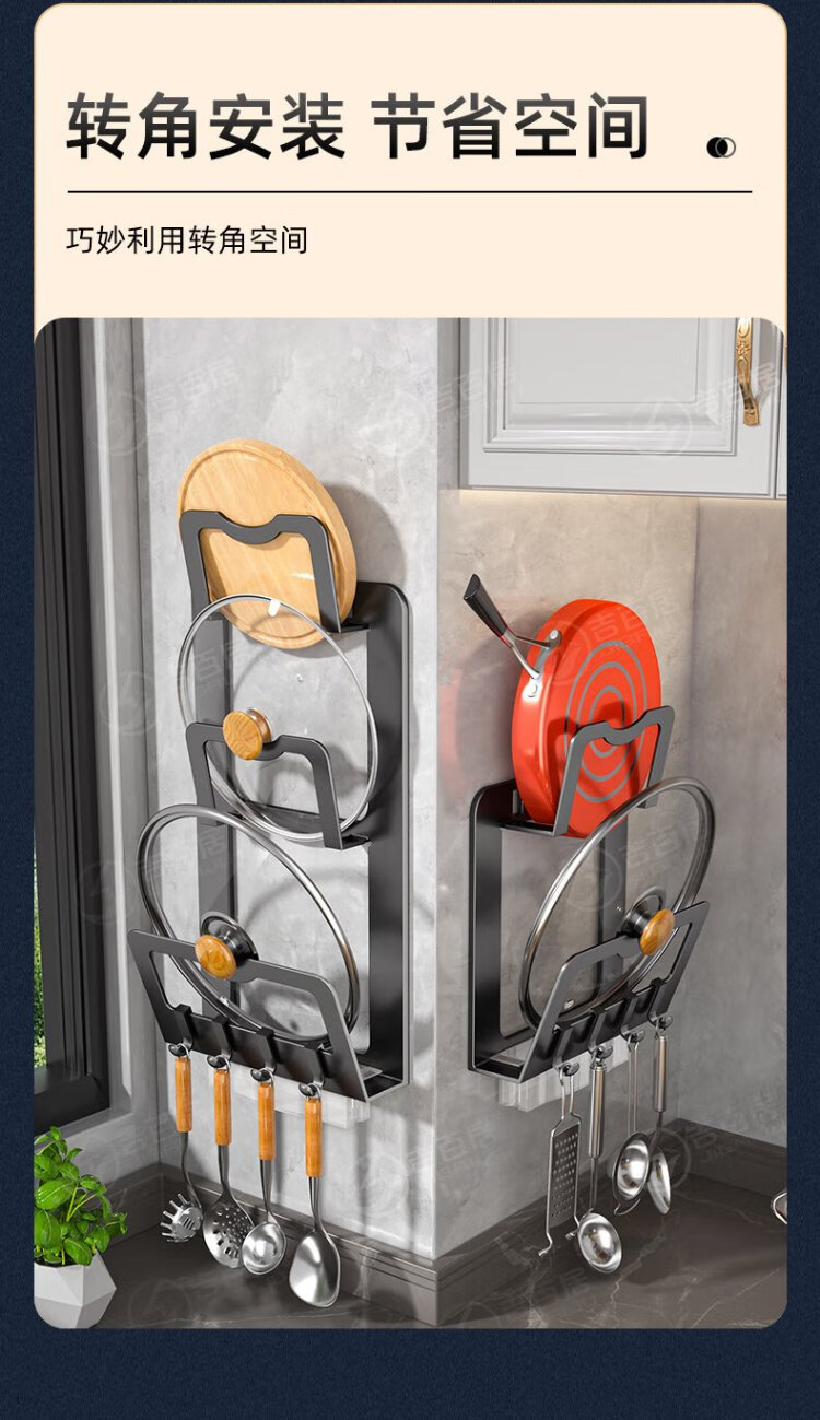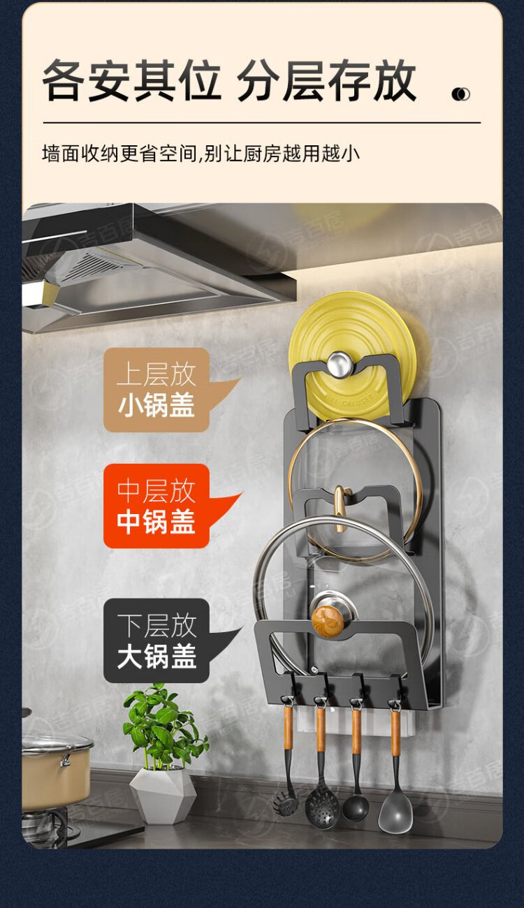 Jibaiju stainless steel pot lid rack wall hanging no punching household multi-layer chopping board rack pot lid storage rack storage kitchen storage rack standard elegant black double layer + with water tray with 4 hooks