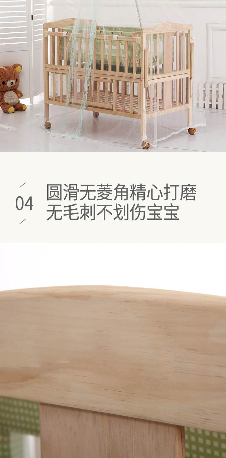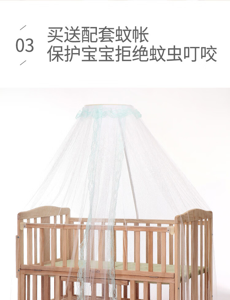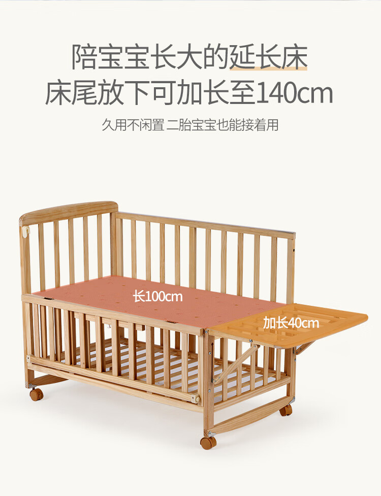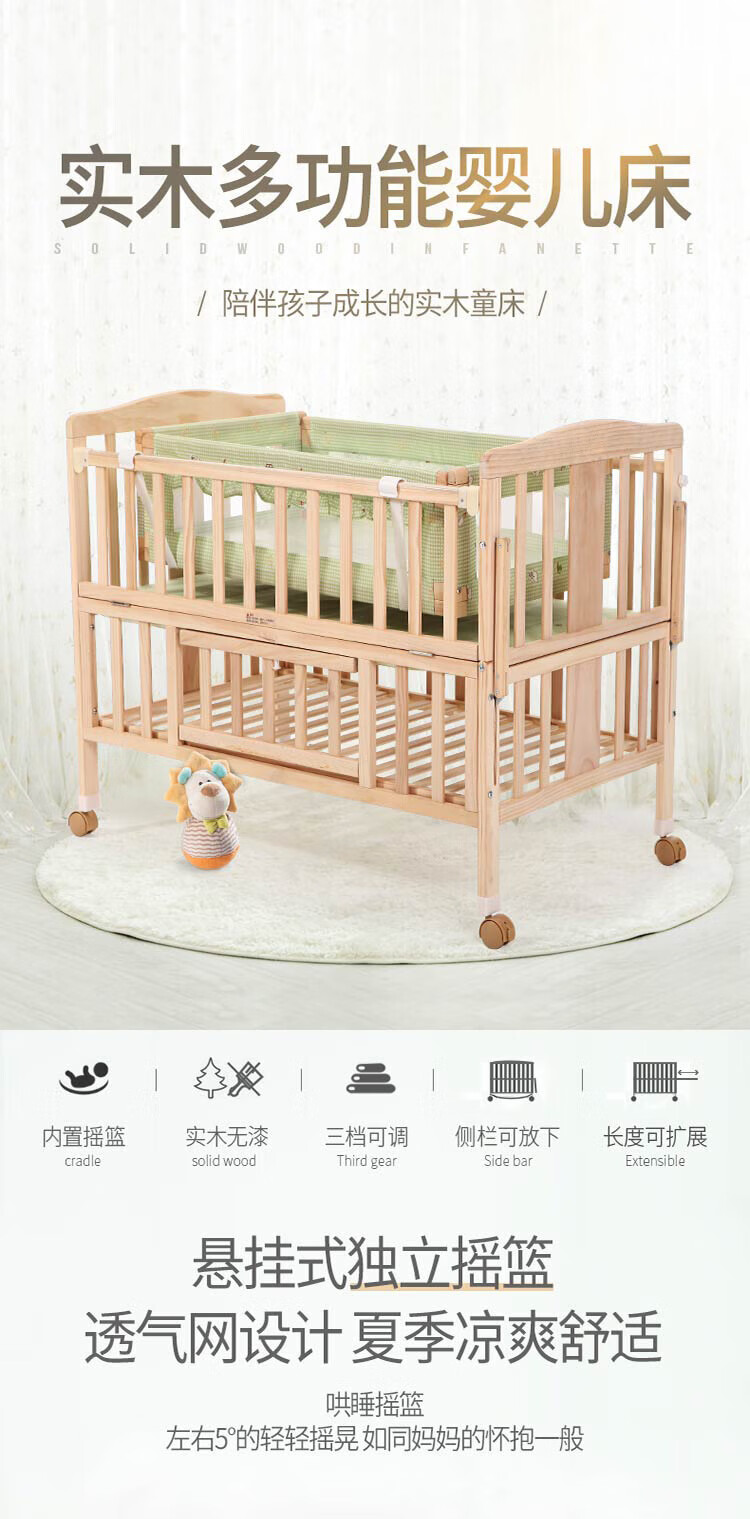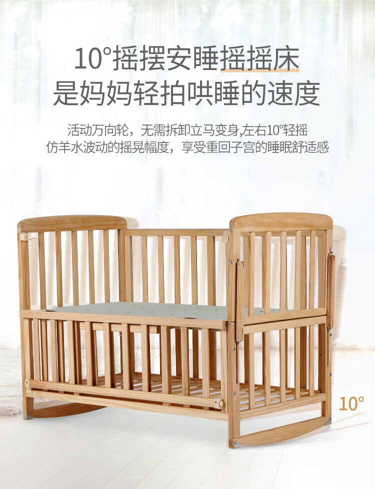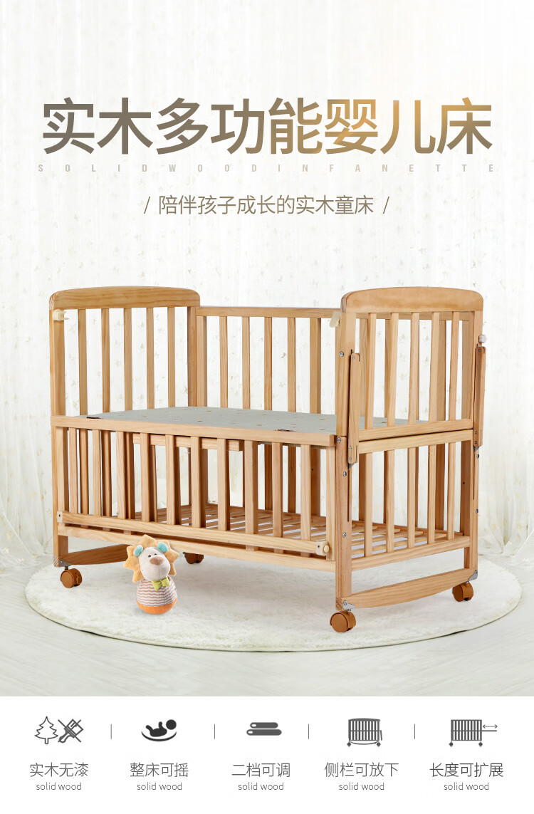 Baby Rabbit Log Crib Baby Bed Solid Wood Unpainted Children's Bed Baby Spliced Bed Multifunctional Newborn Movable 105 Solid Wood Bed (Variable Shaker) + Mosquito Net + Mattress