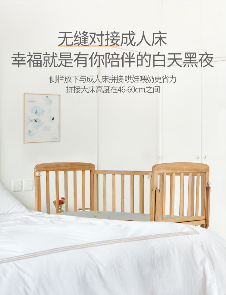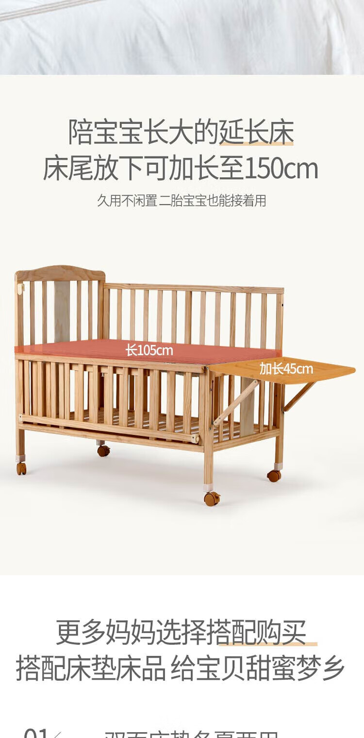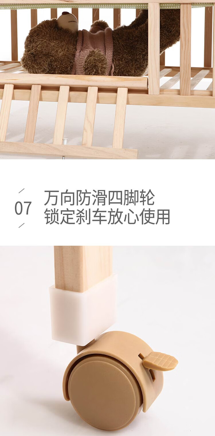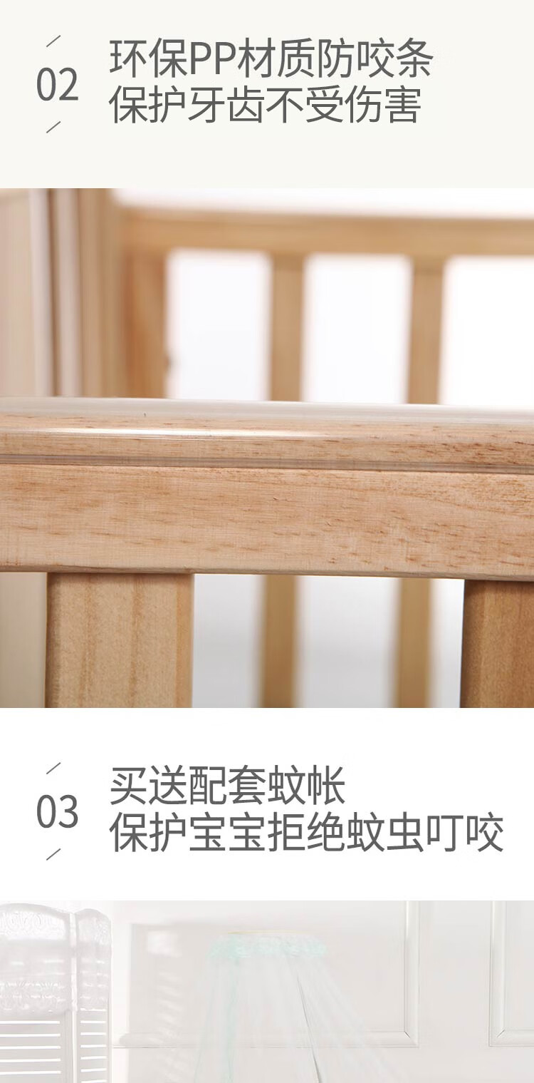 Baby Rabbit Log Crib Baby Bed Solid Wood Unpainted Children's Bed Baby Spliced Bed Multifunctional Newborn Movable 105 Solid Wood Bed (Variable Shaker) + Mosquito Net + Mattress