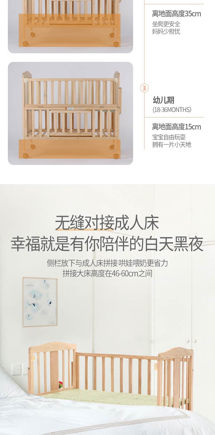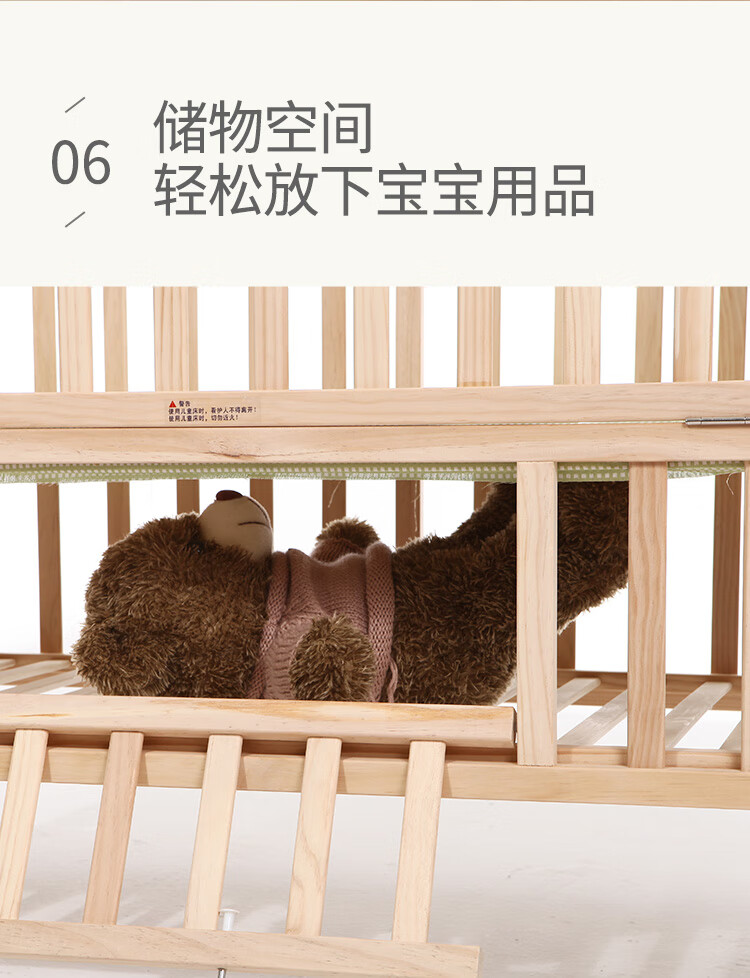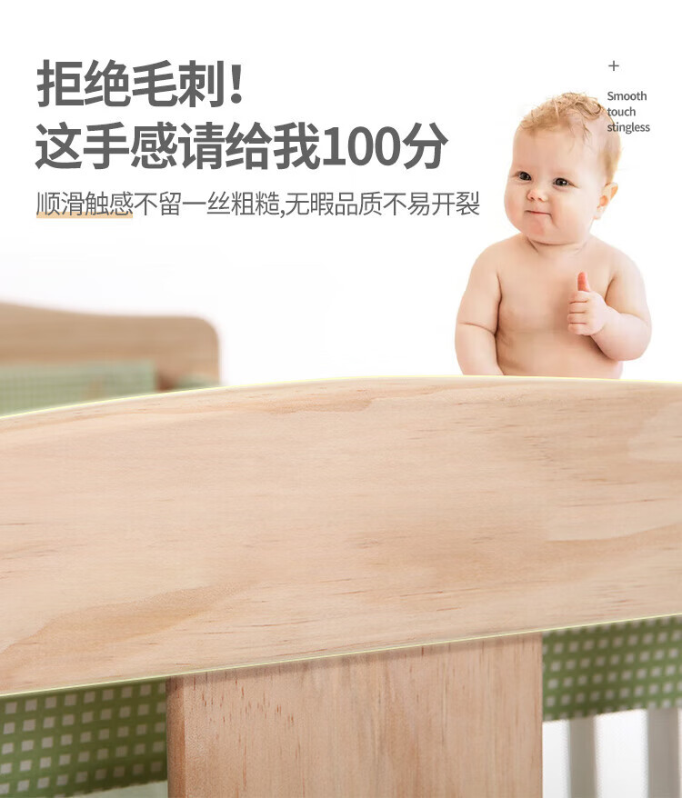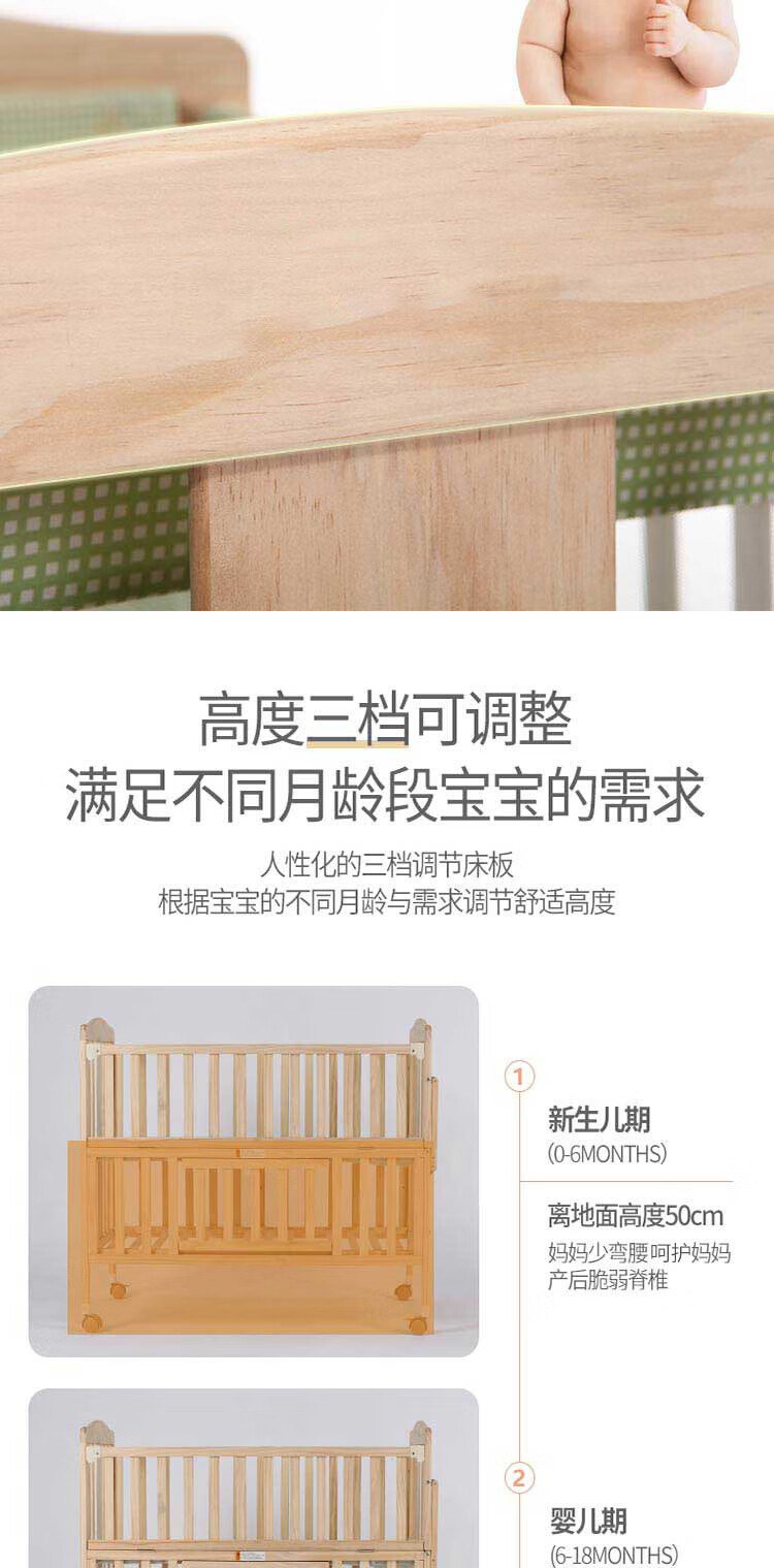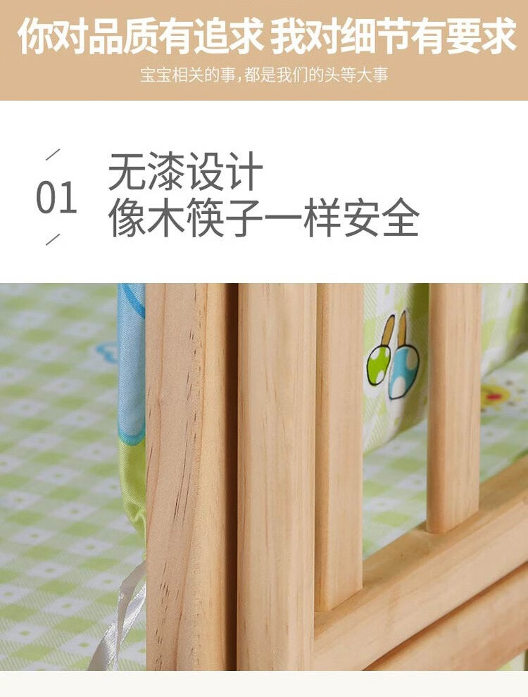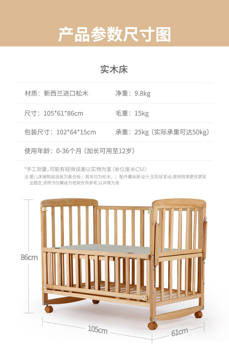 Baby Rabbit Log Crib Baby Bed Solid Wood Unpainted Children's Bed Baby Spliced Bed Multifunctional Newborn Movable 105 Solid Wood Bed (Variable Shaker) + Mosquito Net + Mattress