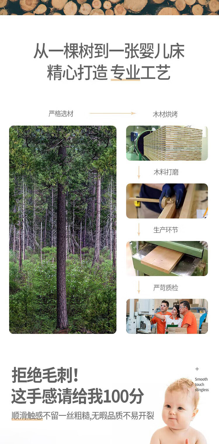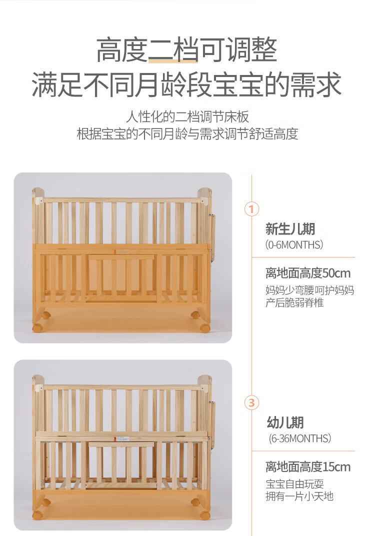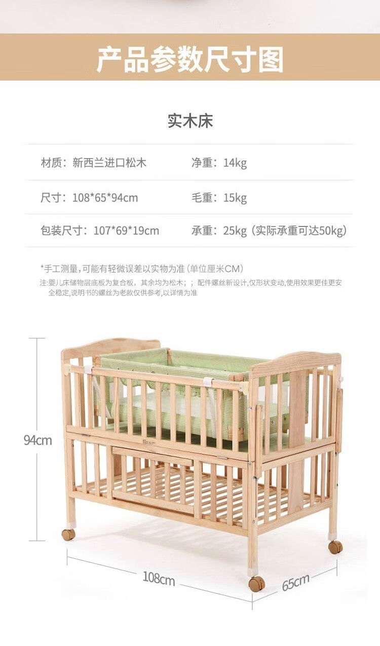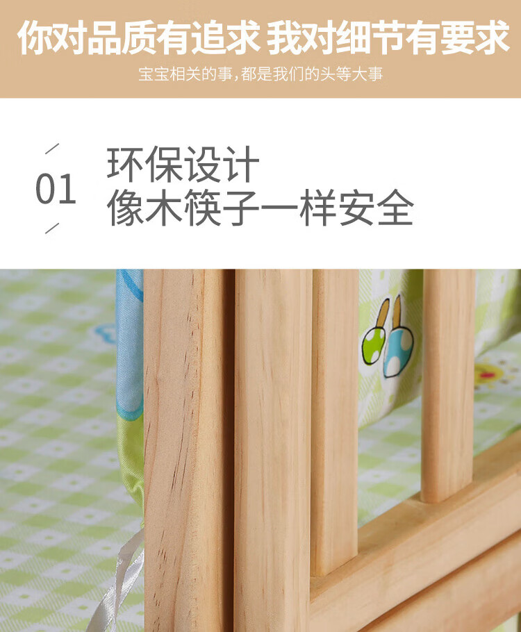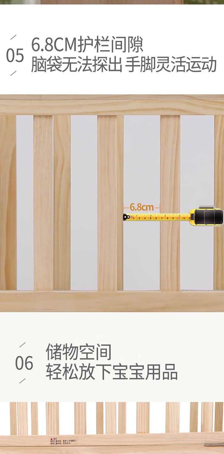 Baby Rabbit Log Crib Baby Bed Solid Wood Unpainted Children's Bed Baby Spliced Bed Multifunctional Newborn Movable 105 Solid Wood Bed (Variable Shaker) + Mosquito Net + Mattress