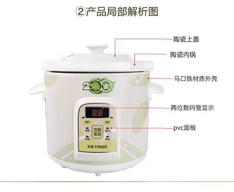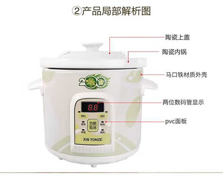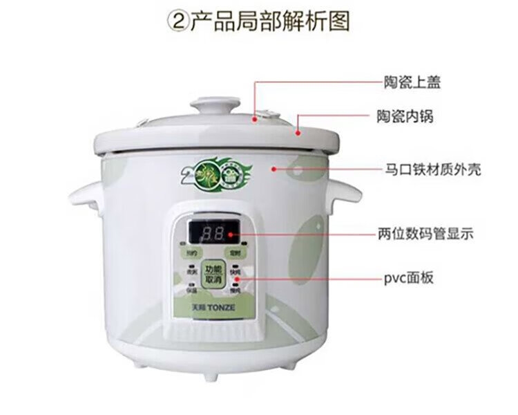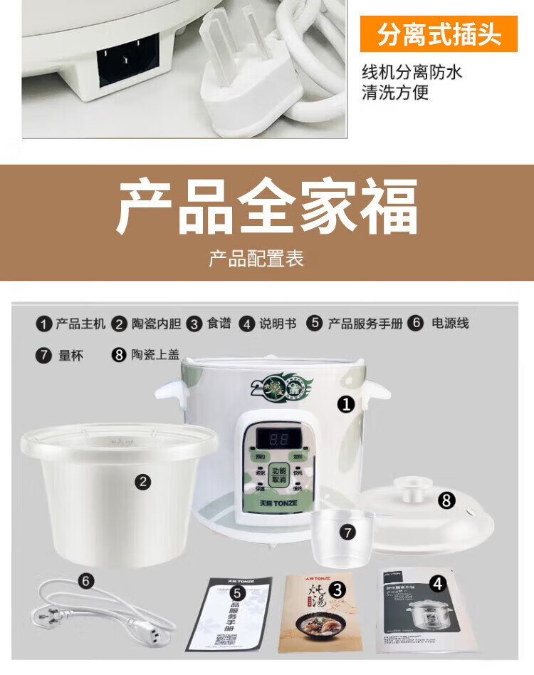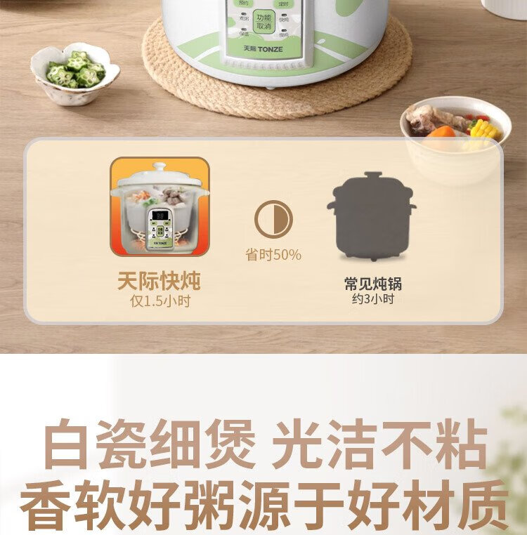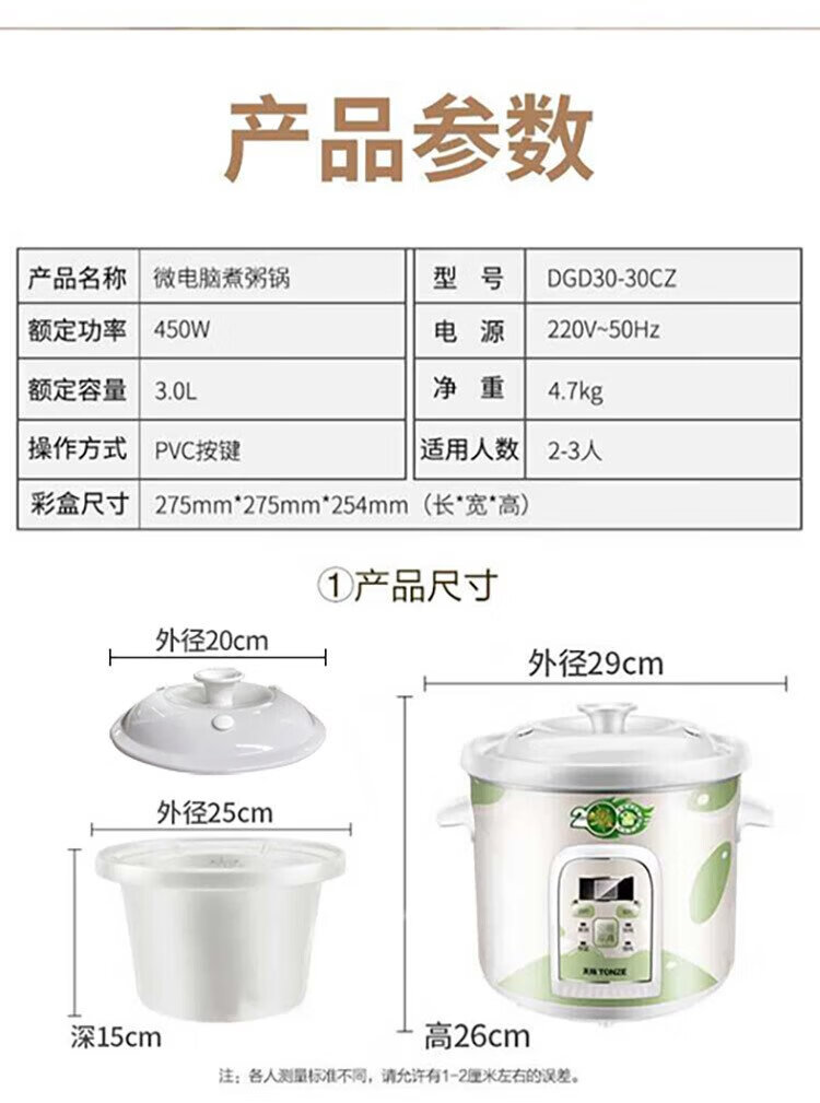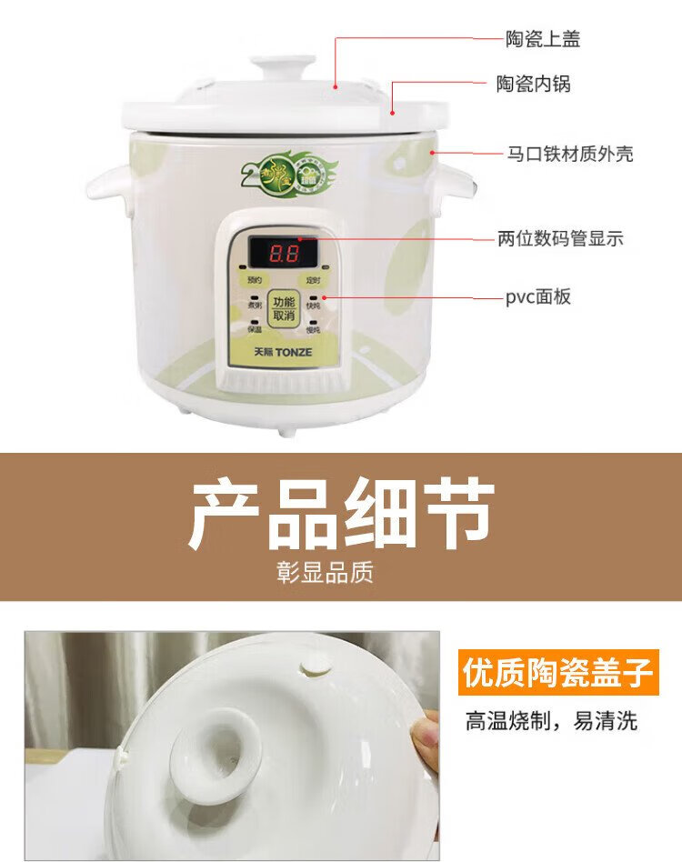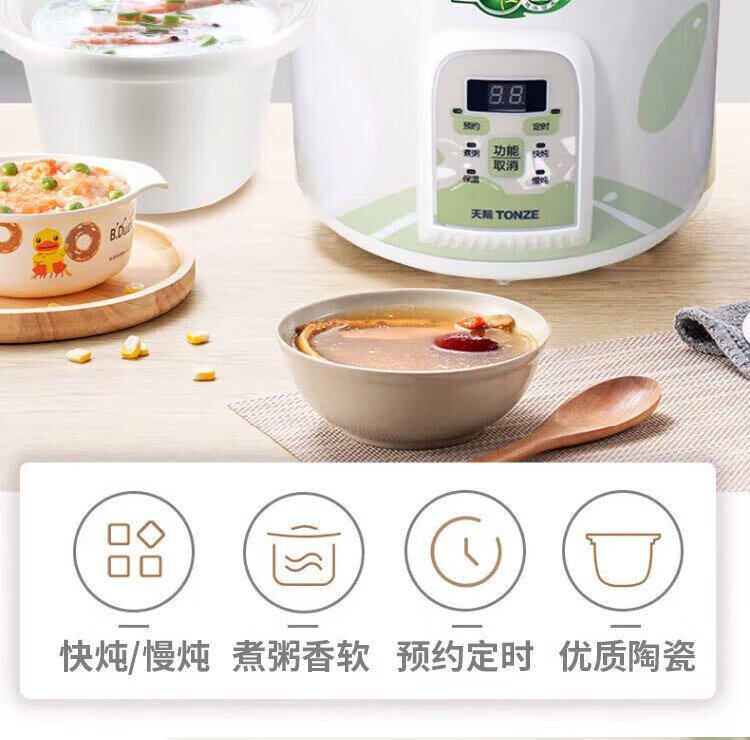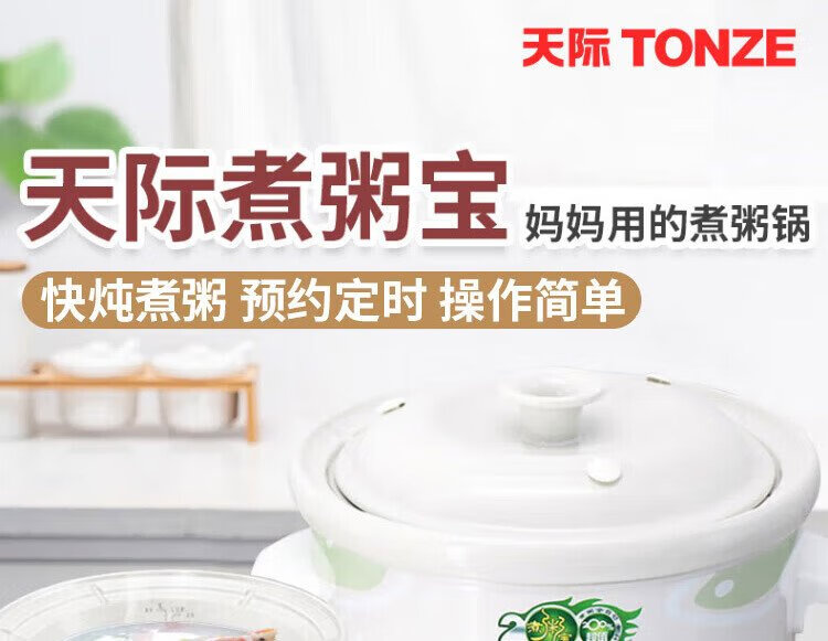 Tianji (TONZE) porridge cooker electric stew pot multi-functional special porridge pot fully automatic porridge pot household soup pot breakfast pot quick porridge artifact CZ suitable for 3~4 people 3L