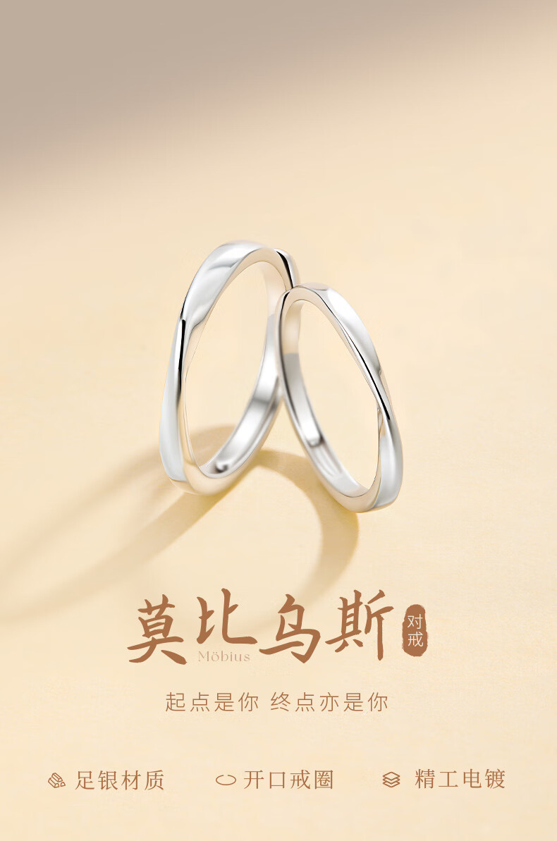 GLTEN Mobius Couple Rings Pure Silver Rings Girls Birthday Christmas Gifts Wedding Anniversary Gifts for Girlfriends and Wife Mobius Couple Rings-999 Pure Silver