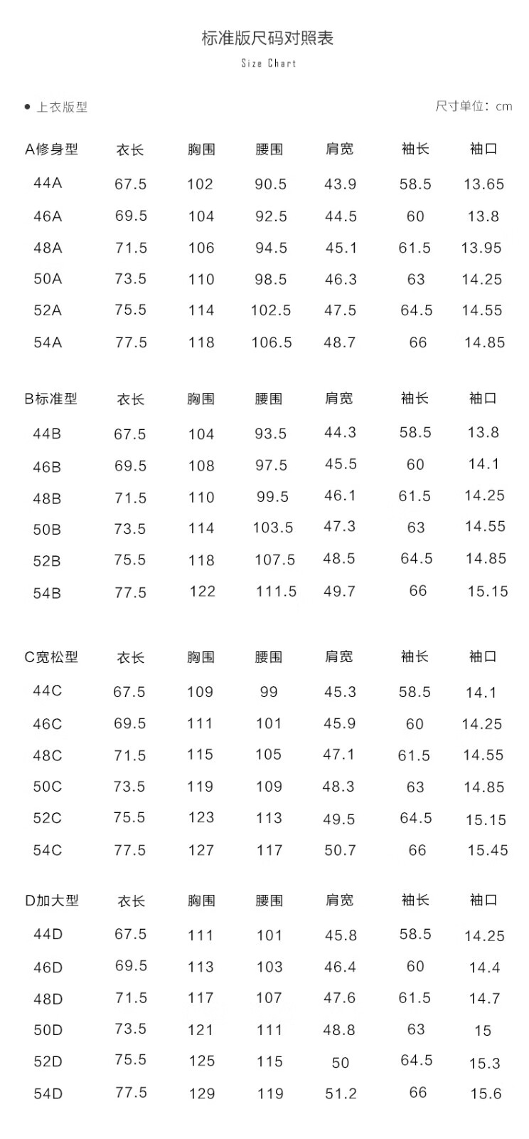 China (cm) 160-165/84-86 165-170 / 88-90 167-172 / 92-96 168-173 / 98-102 170-176 / 106-110
