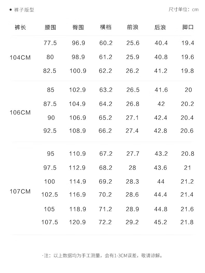 Outseam (cm) 99 cm 101.5 cm 104 cm 106.5 cm 109 cm
