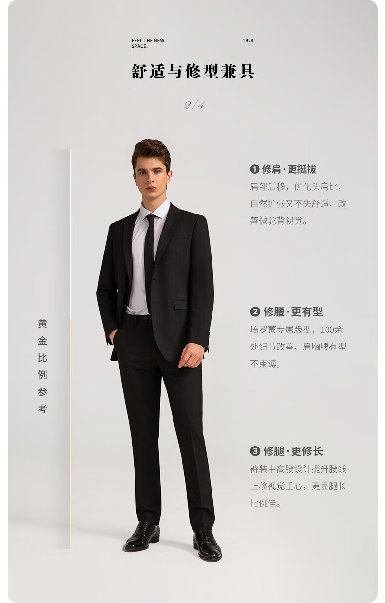 Peromont anti-wrinkle and iron-free suit suit for men, slim-fitting professional suit suit for men, complete business suit for men, easy to care for, 18B9AS091 black, 180C - Remarks or message for trousers size