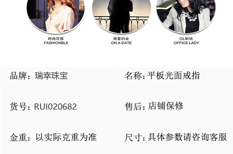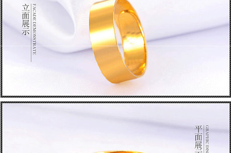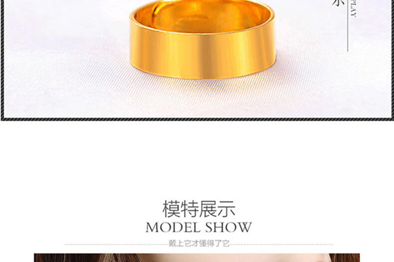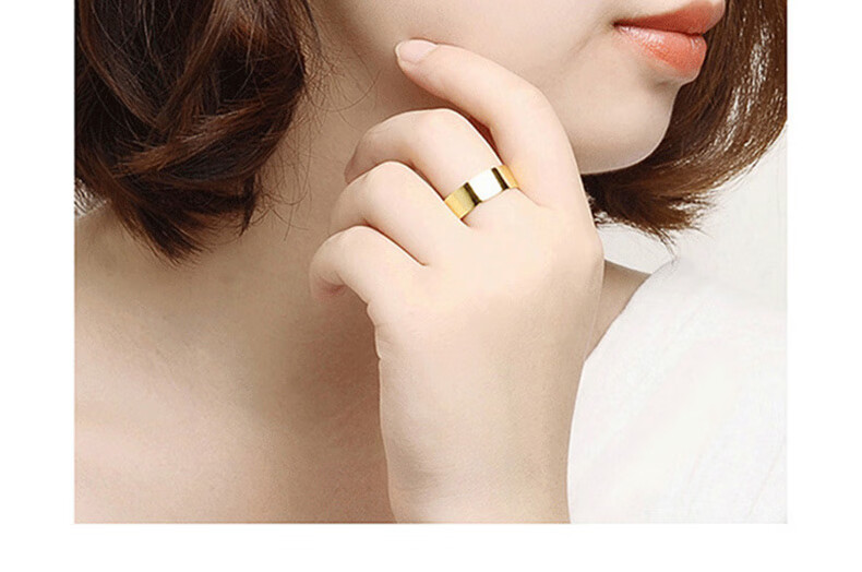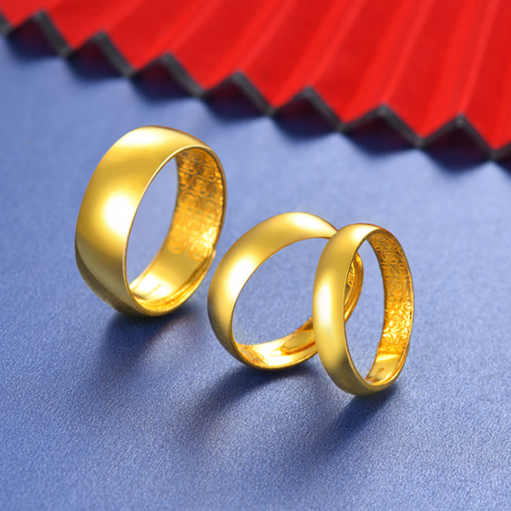 Luckin Gold Glossy Ring Pure Gold 999 Solid Flat Ring Gold Ring Live Mouth Men and Women Gold Weight 9.56g