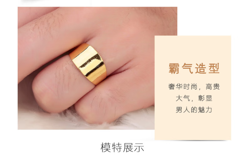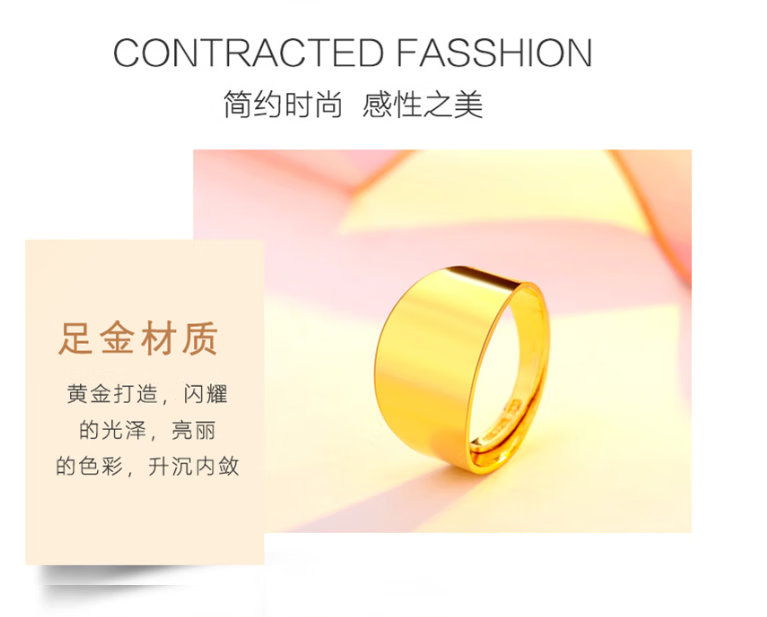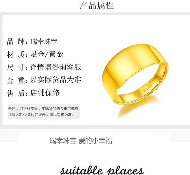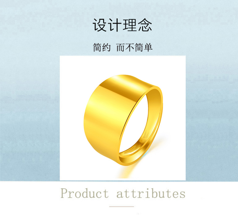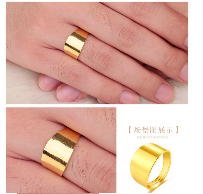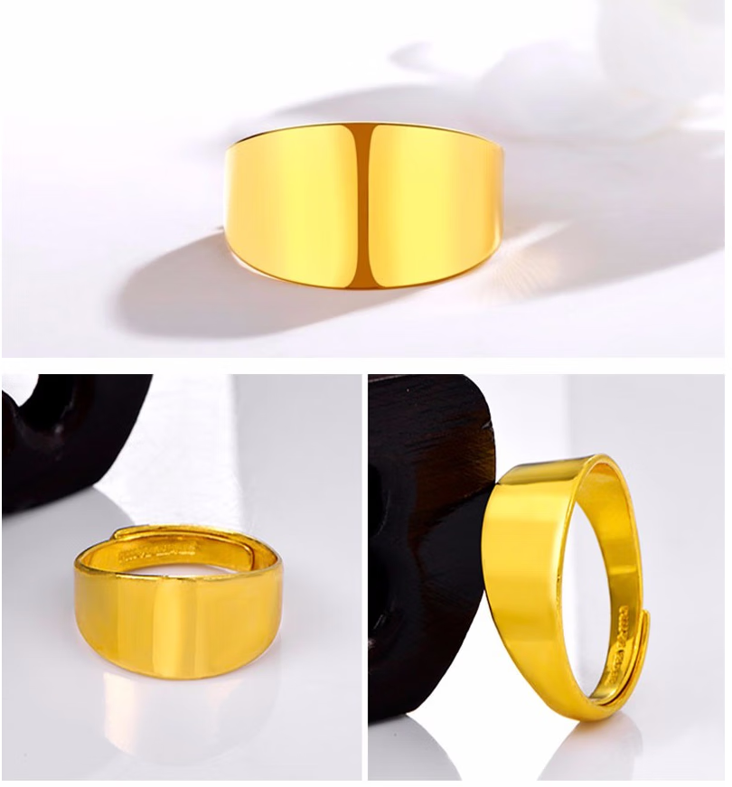 Luckin Gold Glossy Ring Fine Pure Gold 999 Simple Solid Flat Snake Belly Gold Ring for Men and Women Gold Weight 13.70g