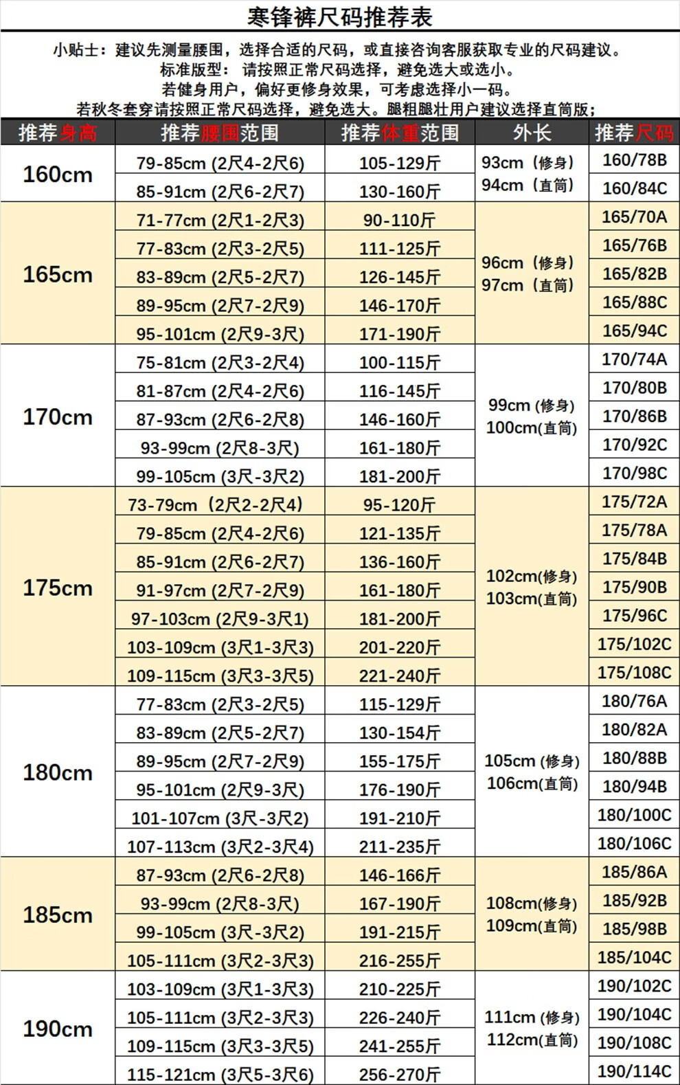 China (cm) 160-165/84-86 165-170 / 88-90 167-172 / 92-96 168-173 / 98-102 170-176 / 106-110